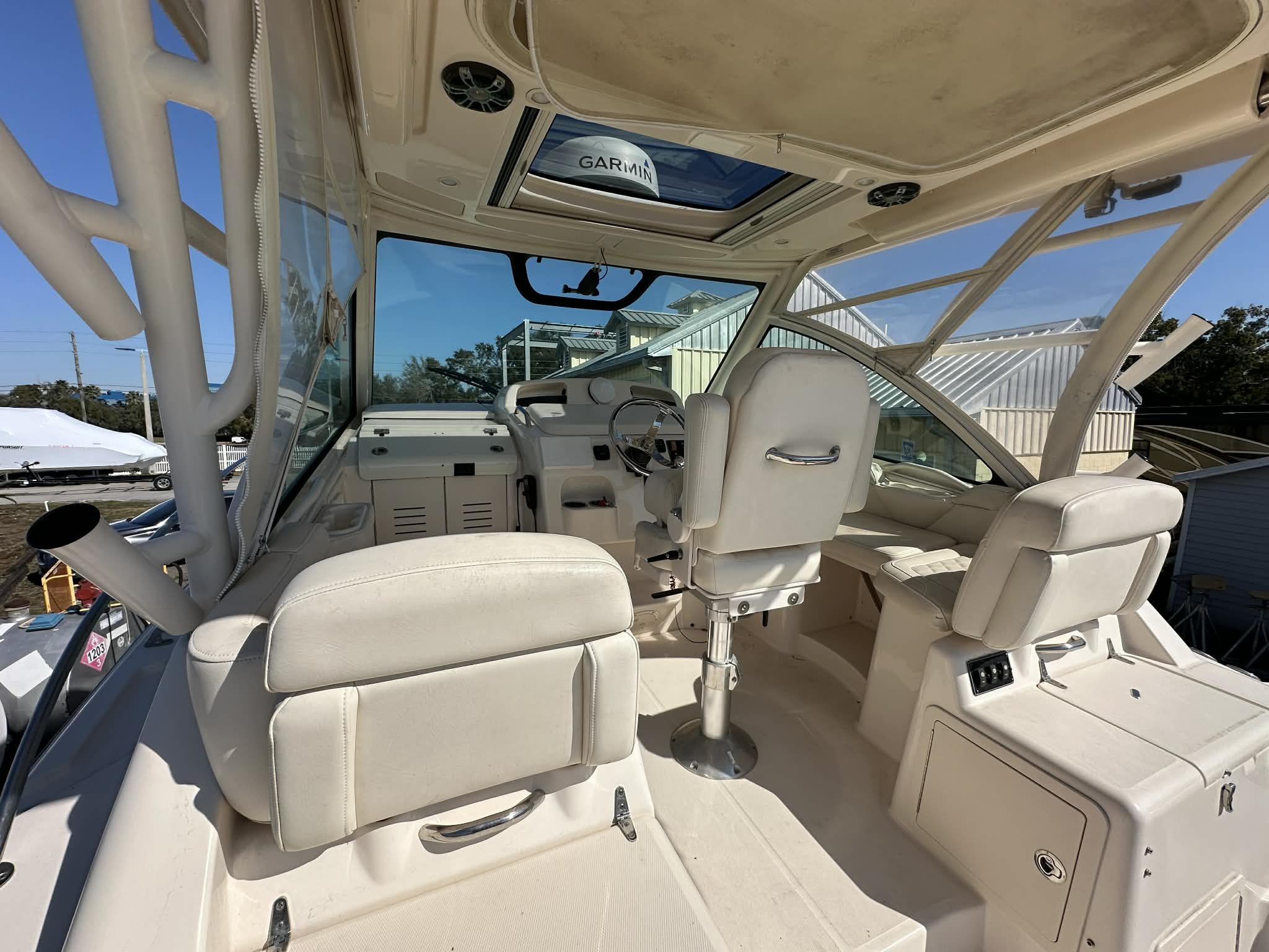 The Grady-White Express 330 is as practical as it is luxurious. Its intelligent design makes docking and maneuvering straightforward, even in busy marinas or tight spaces. The ample storage throughout the boat ensures that all your gear, supplies, and personal items are organized and easily accessible. This attention to detail enhances the overall boating experience, making every outing more enjoyable and stress-free.Fuel efficiency is another key advantage of this cruiser. The twin-engine setup is engineered for optimal performance, allowing you to cover more distance with less fuel. This means more time on the water and fewer stops at the fuel dock, maximizing your enjoyment and minimizing your operating costs. The Express 330’s durability and low-maintenance design further contribute to its appeal, offering peace of mind and long-term value.