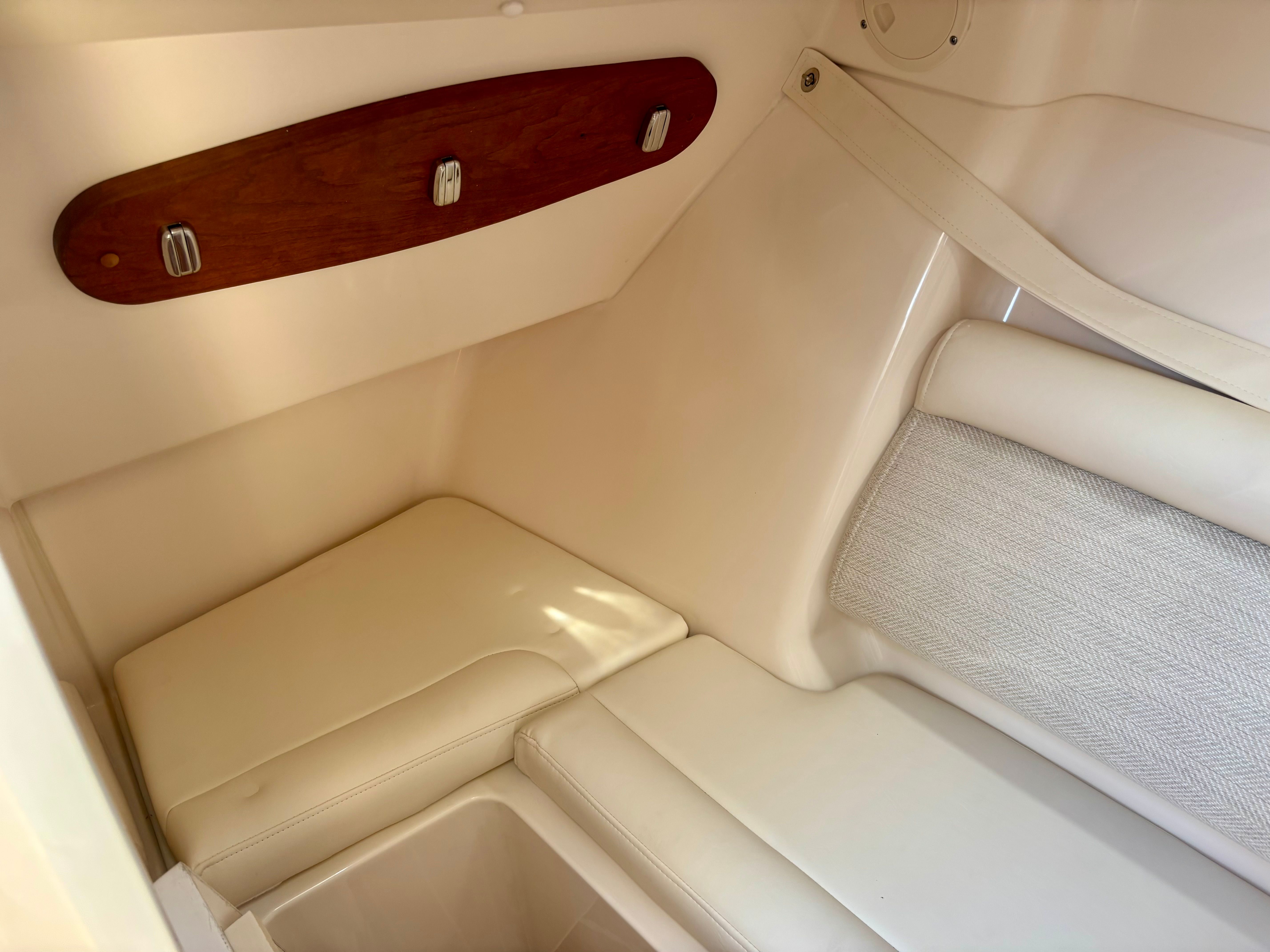 Powering the Grady-White Freedom 325 are two robust engines, delivering a combined 600 horsepower. This impressive setup ensures exhilarating acceleration, smooth cruising, and reliable handling in a variety of conditions. Whether you’re navigating coastal waters or venturing offshore, the twin engines provide the confidence and power needed for both leisurely outings and more spirited adventures. The Freedom 325’s hull design is engineered for stability and efficiency, offering a comfortable ride even when the waters get choppy. With this level of performance, you can reach your favorite destinations quickly and enjoy every moment on the water.