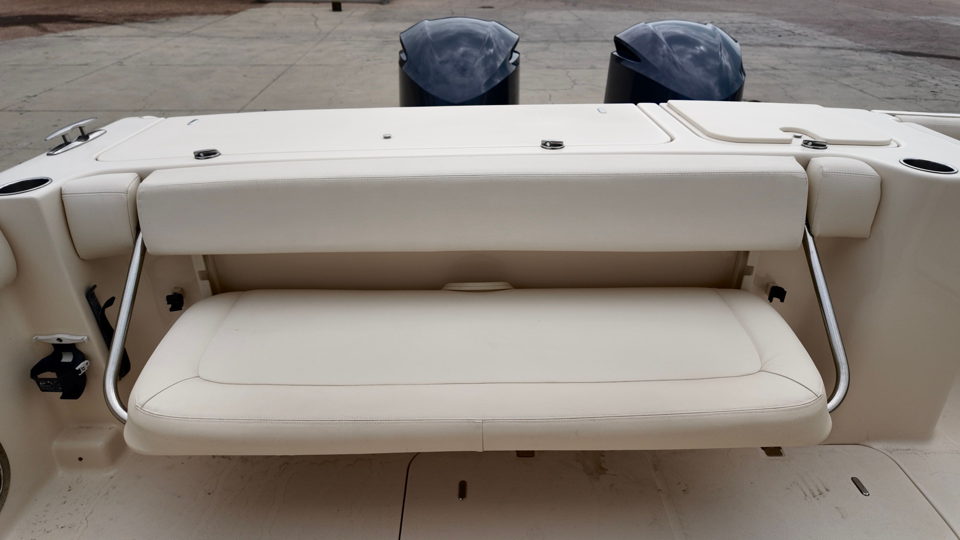 The Grady-White Freedom 335 is packed with features that enhance both functionality and comfort. Its Dual Console layout is ideal for families and groups, offering ample seating and easy access throughout the boat. The spacious deck provides plenty of room for lounging, entertaining, or preparing for a day of fishing. Grady-White’s attention to detail is evident in the high-quality materials and finishes used throughout the Freedom 335, ensuring durability and a luxurious feel.Special features of the Freedom 335 include its innovative dual console design, which allows for seamless transitions between activities. The boat’s generous length of 33.5 feet means you’ll have plenty of space for guests, gear, and recreational equipment. The twin-engine configuration not only boosts performance but also adds a layer of safety, making it an excellent choice for those who value reliability on the water.