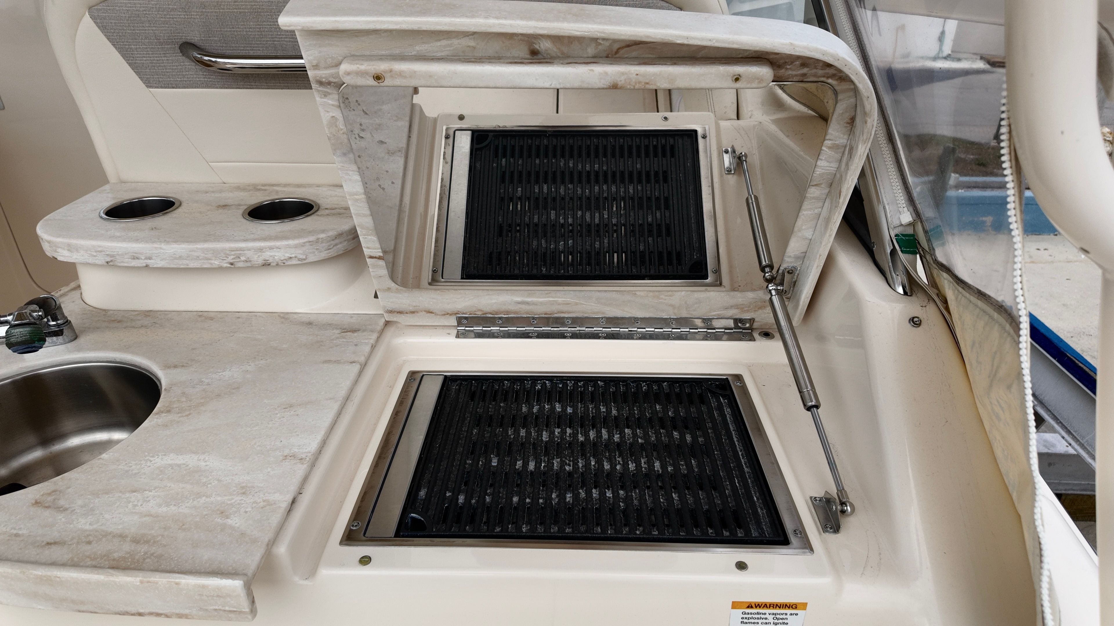 The Grady-White Freedom 335 is designed with practicality in mind, making it an excellent choice for a wide range of boating activities. Its ample storage options allow you to bring along all the gear you need, whether you’re planning a fishing trip, a family outing, or a weekend getaway. The dual engines make docking and maneuvering a breeze, even in crowded marinas or tight spaces.Fuel efficiency is another key benefit, thanks to the modern engine technology and streamlined hull design. This means you can spend more time on the water and less time worrying about refueling. The Freedom 335’s layout also makes it easy to clean and maintain, ensuring that your boat stays in top condition for years to come.