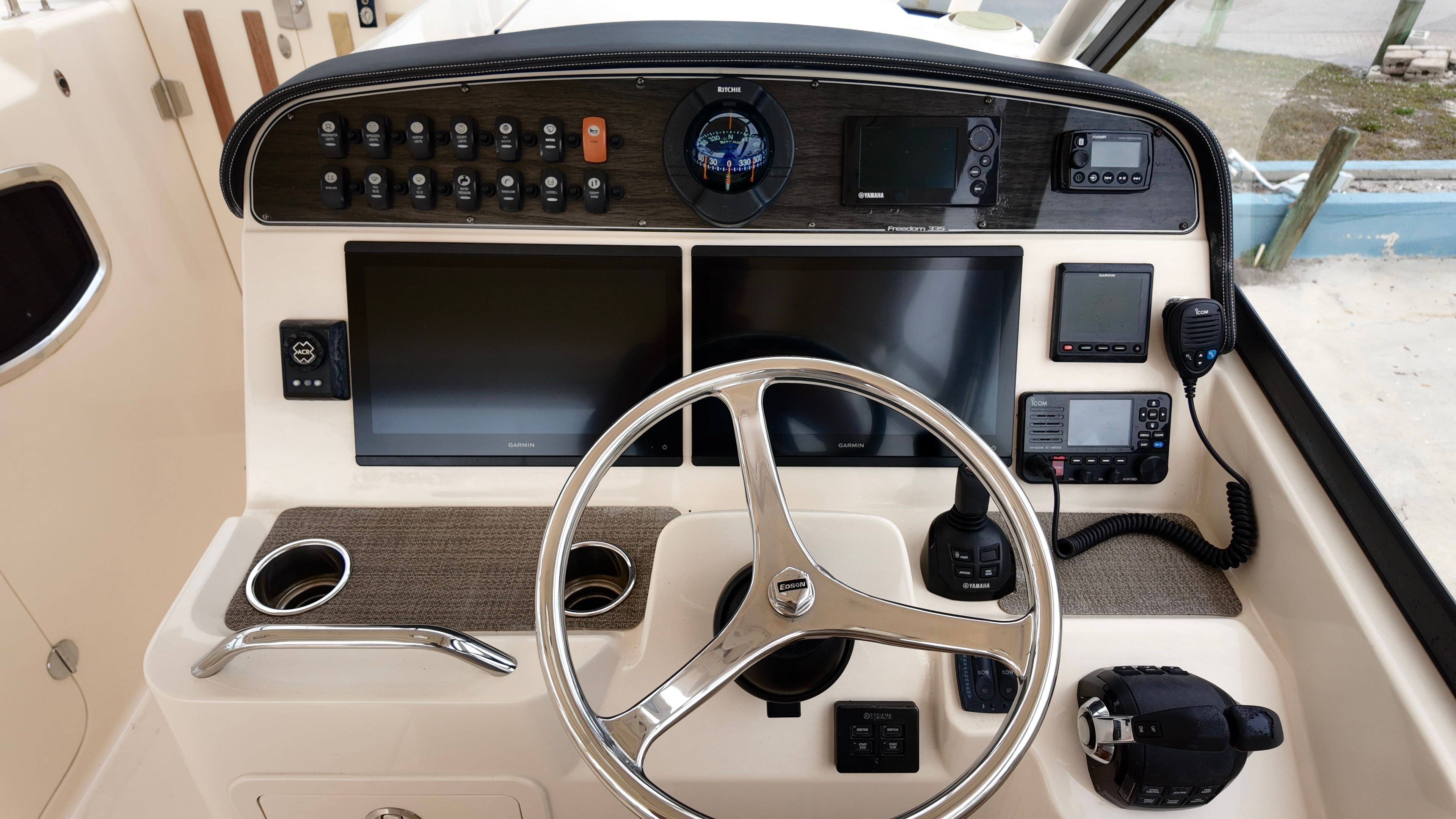 The 2016 Grady-White Freedom 335 is a Dual Console boat that measures an impressive 33.5 feet in length, making it one of the most spacious and accommodating models in its class. Grady-White is renowned for its commitment to quality, and the Freedom 335 exemplifies this with its sturdy construction and thoughtful layout. As a used boat, it offers tremendous value, allowing you to enjoy premium features and craftsmanship without the price tag of a brand-new vessel. The Freedom 335’s design is tailored for both relaxation and adventure, making it a versatile option for a variety of boating activities.