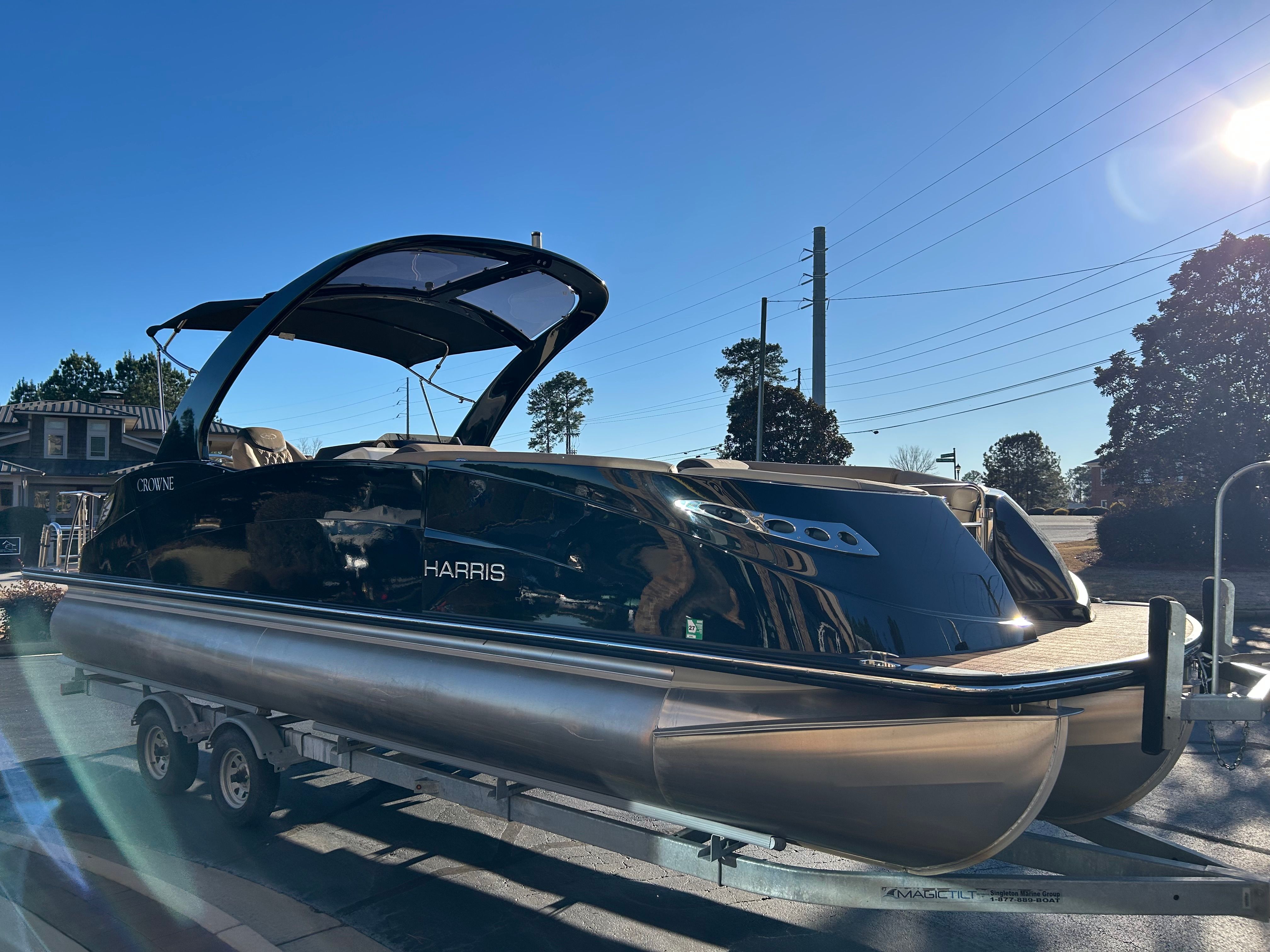 The 2022 Harris Crowne 250 is a standout pontoon boat for sale that blends luxury, performance, and versatility. With its powerful 350-horsepower engine, spacious 27.92-foot layout, and premium craftsmanship, this used Harris boat for sale is ready to elevate your boating lifestyle. Enjoy the benefits of ample space, smooth handling, and elegant design, all at a competitive price point. Don’t miss the opportunity to own a top-tier pontoon that promises years of fun, relaxation, and adventure. Contact the dealer today to learn more about the Harris Crowne 250 and make your dream of owning a luxury pontoon boat a reality.