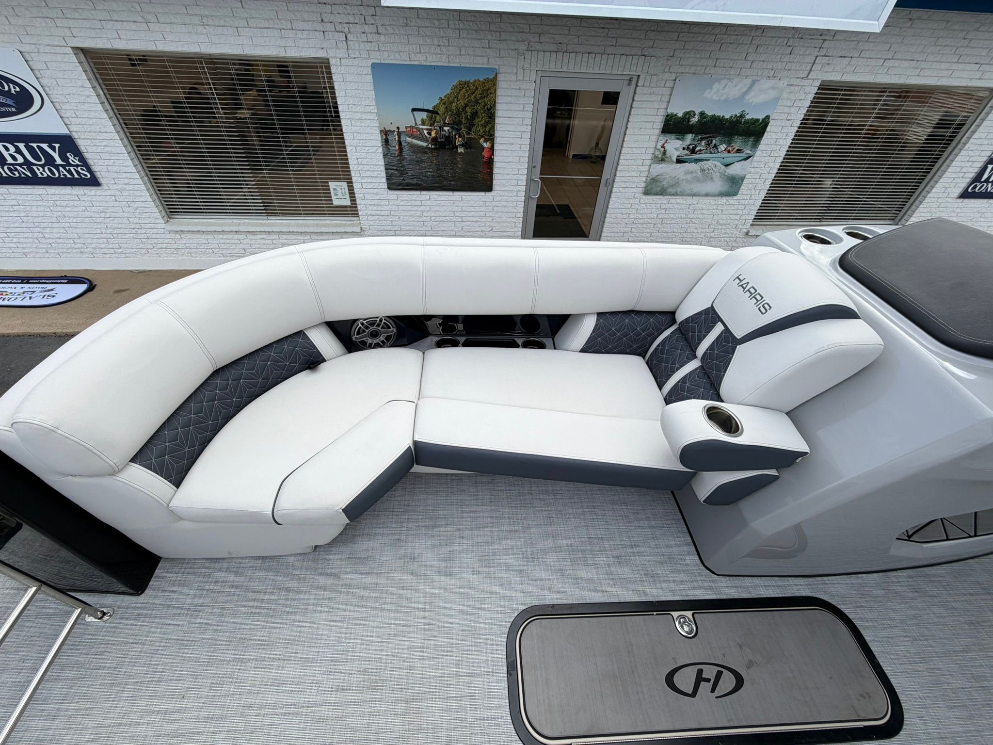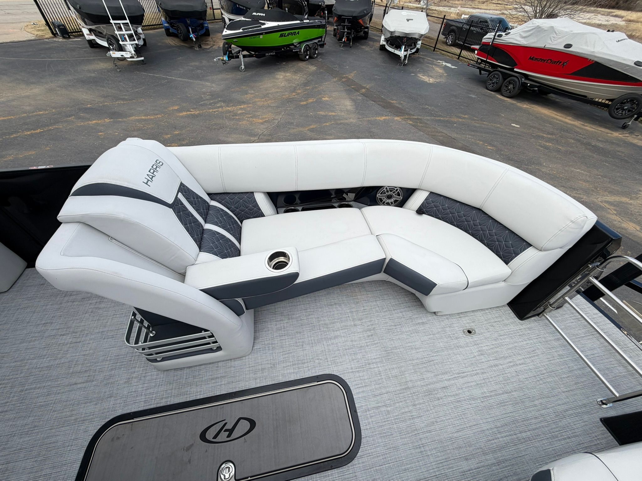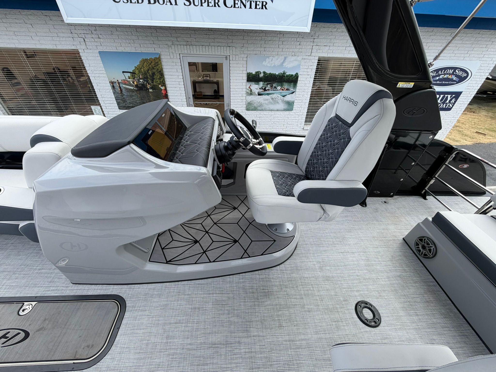 Now available for sale at our Used Boat Super Center in Lewisville, this exceptionally clean 2023 Harris Grand Mariner 230 features a sleek black and grey exterior paired with a light gray and dark graphite accent interior. Powered by a Mercury fuel-injected V8 300 HP engine, this boat has just 96 freshwater hours and delivers impressive performance, smooth handling, and premium comfort throughout.