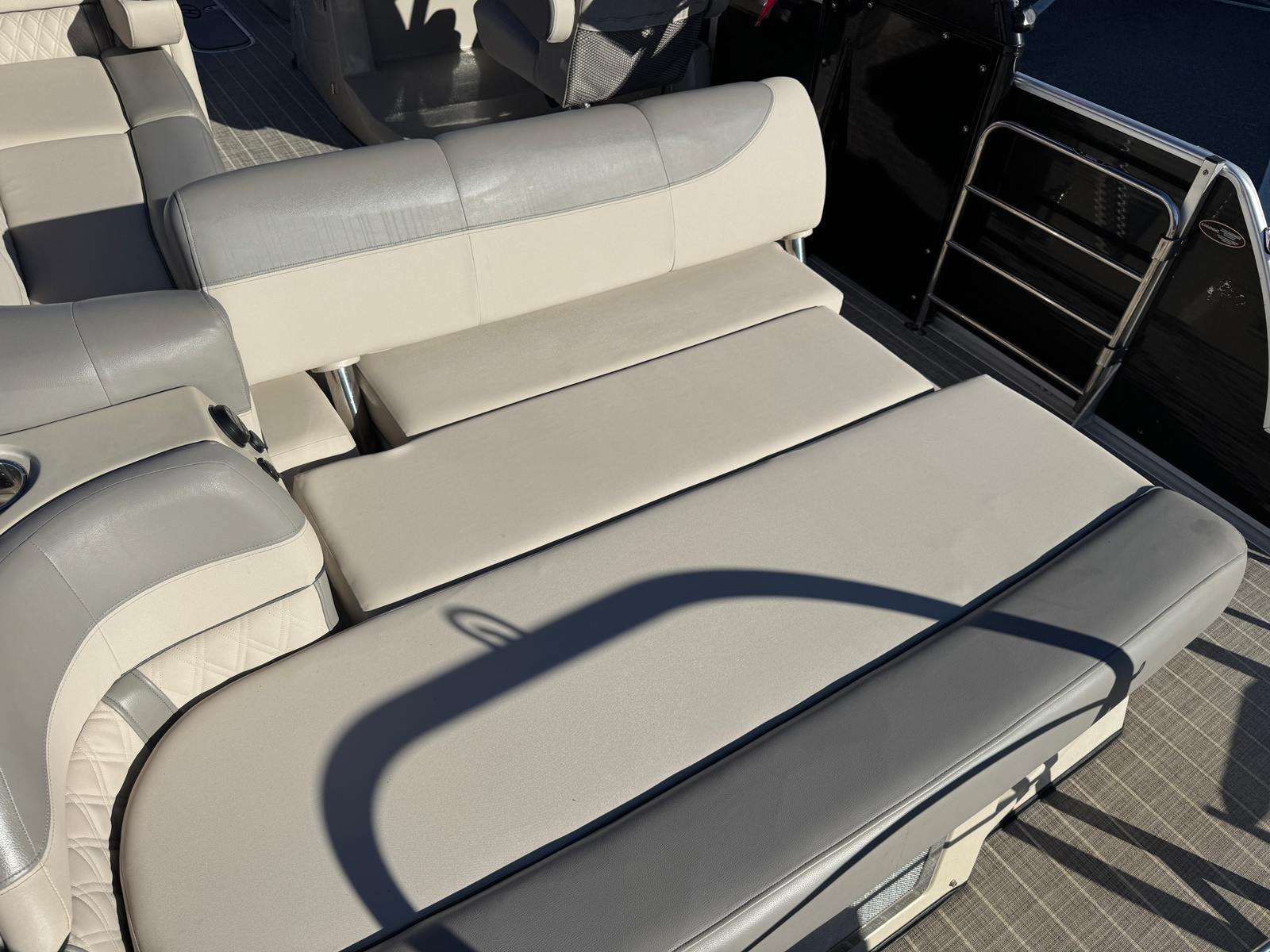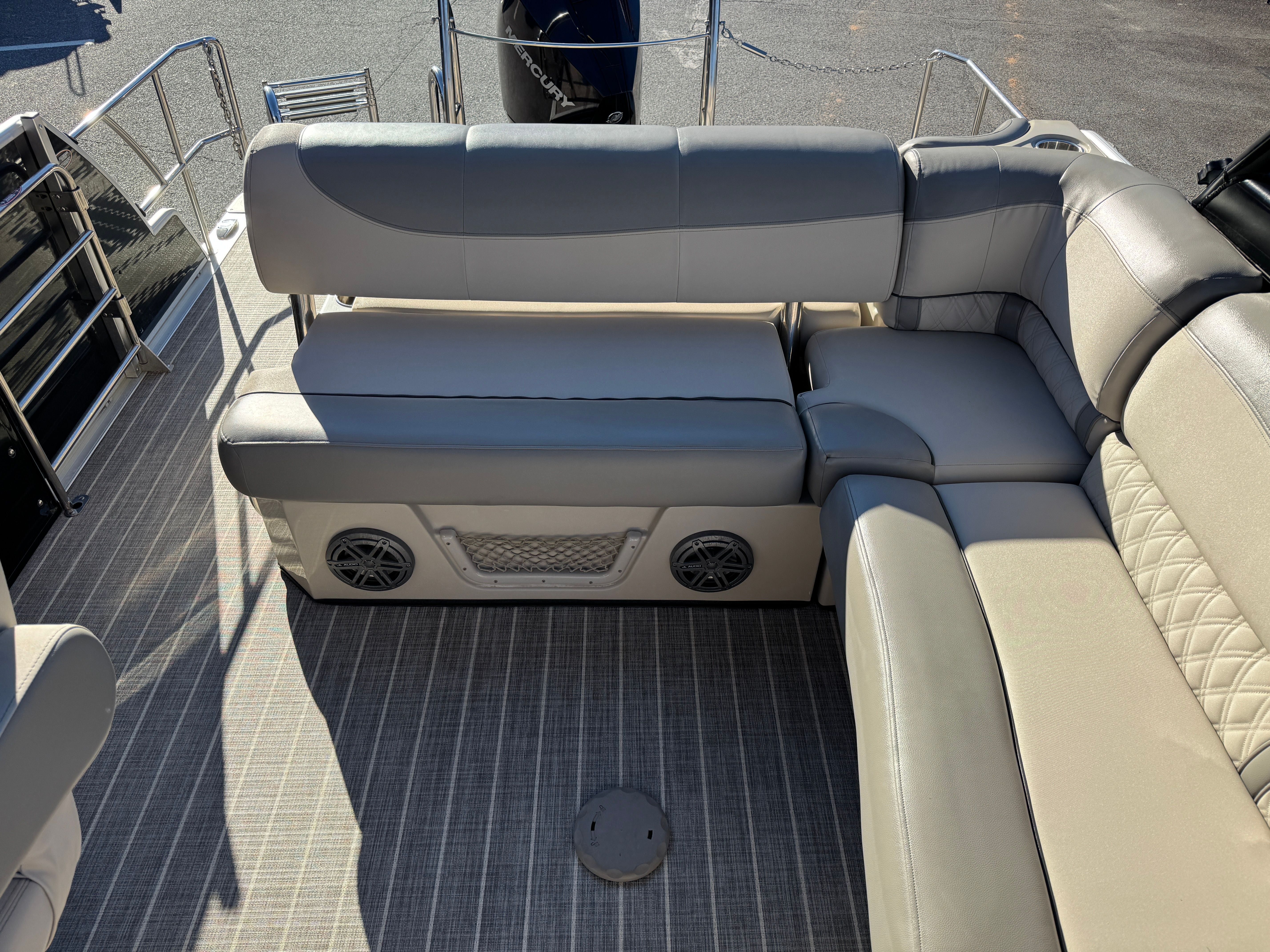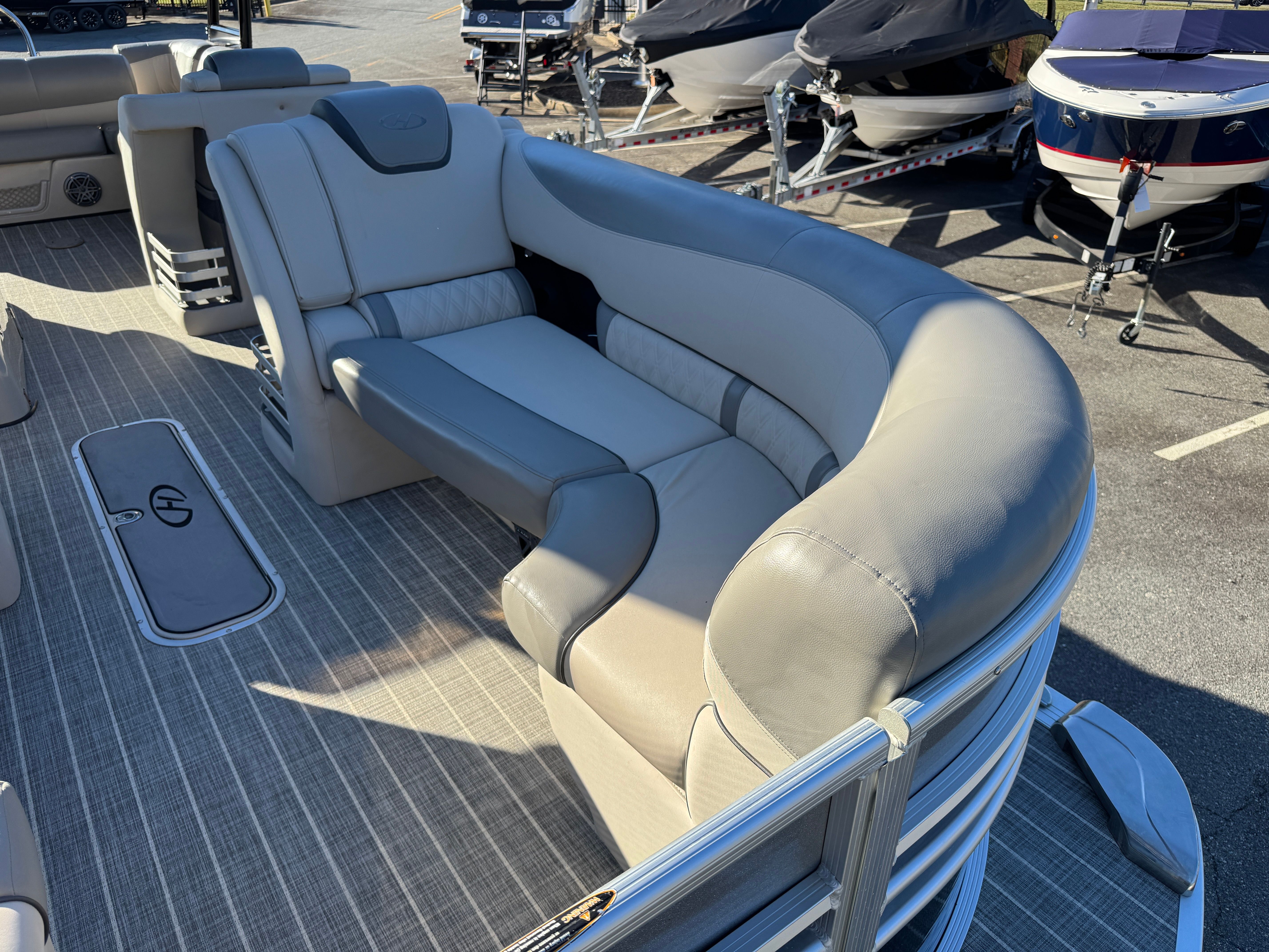 The Harris Grand Mariner 250 is designed with both luxury and practicality in mind. Its 25-foot length offers generous deck space, perfect for entertaining guests or relaxing with family. The pontoon layout ensures stability and safety, making it ideal for passengers of all ages. Special features of this model include its powerful 300-horsepower engine, which not only enhances performance but also expands the range of activities you can enjoy on the water. With 498 engine hours, this used pontoon boat has been well maintained and is ready for many more adventures.