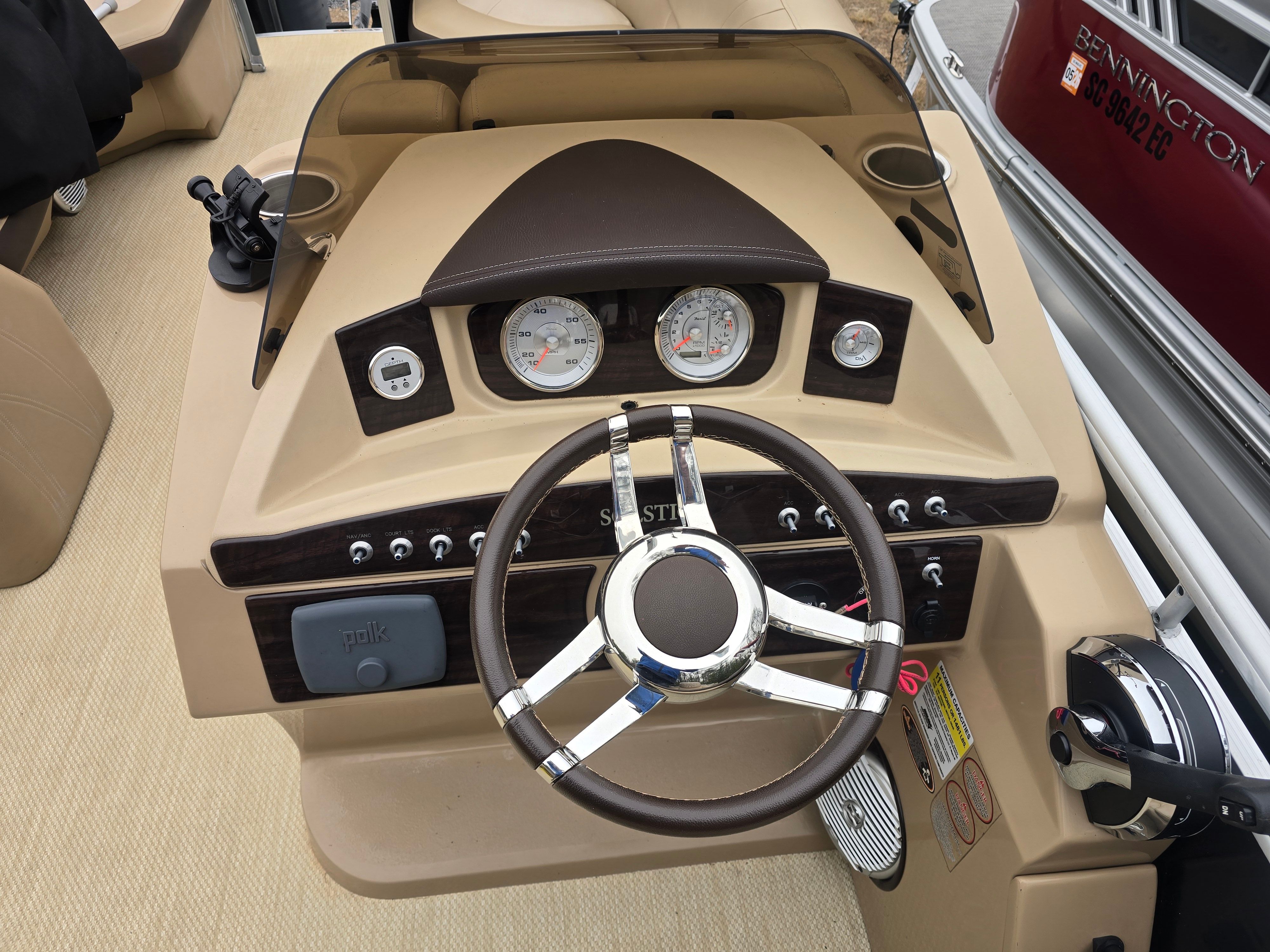 Powered by a single engine with 150 horsepower, the Harris Solstice 220 delivers a perfect balance of power and efficiency. The 150 HP engine ensures responsive handling and smooth acceleration, allowing you to cruise comfortably or pick up the pace for water sports and towing. With only 200 engine hours, this pontoon boat for sale promises reliable performance for years to come. Whether you’re navigating calm lakes or exploring winding rivers, the Solstice 220 offers a confident and enjoyable ride.
