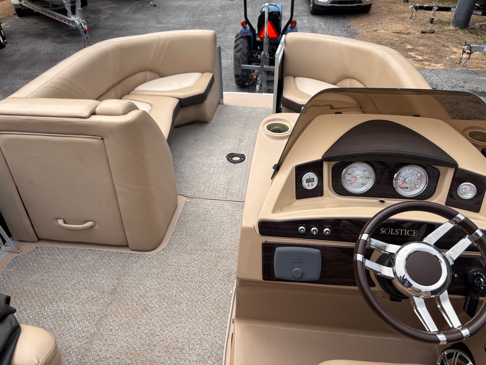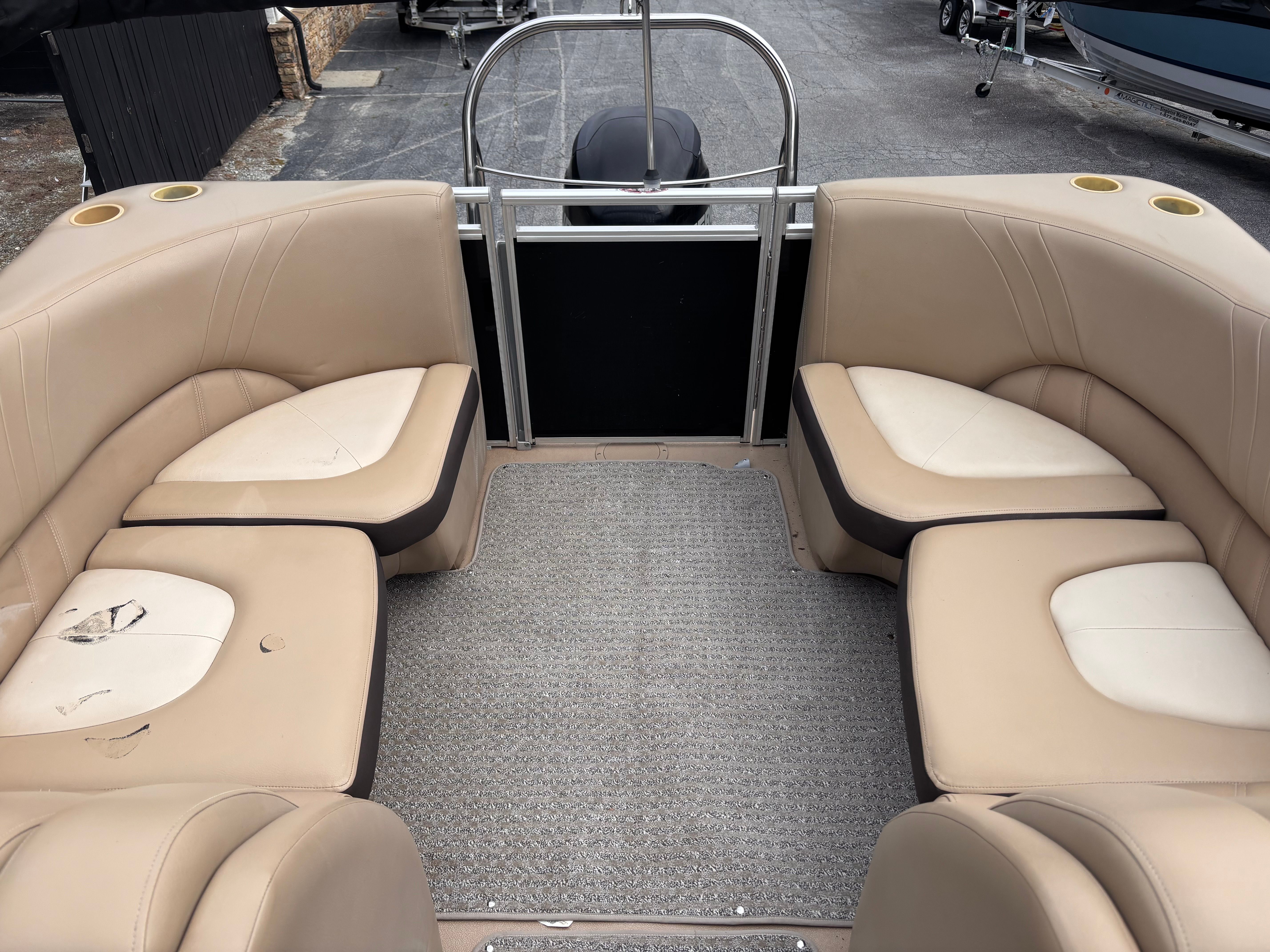 Powered by a single engine with an impressive 175 horsepower, the Harris Solstice 220 offers a smooth and responsive ride. With 551 engine hours, this pontoon boat demonstrates reliability and enduring performance, making it a smart choice for those seeking both power and efficiency. The robust engine ensures you can glide effortlessly across the water, whether you’re towing water toys, heading out for a day of fishing, or simply enjoying a leisurely cruise. The Solstice 220’s performance capabilities make it a standout among pontoon boats for sale, offering the perfect blend of speed and stability.
