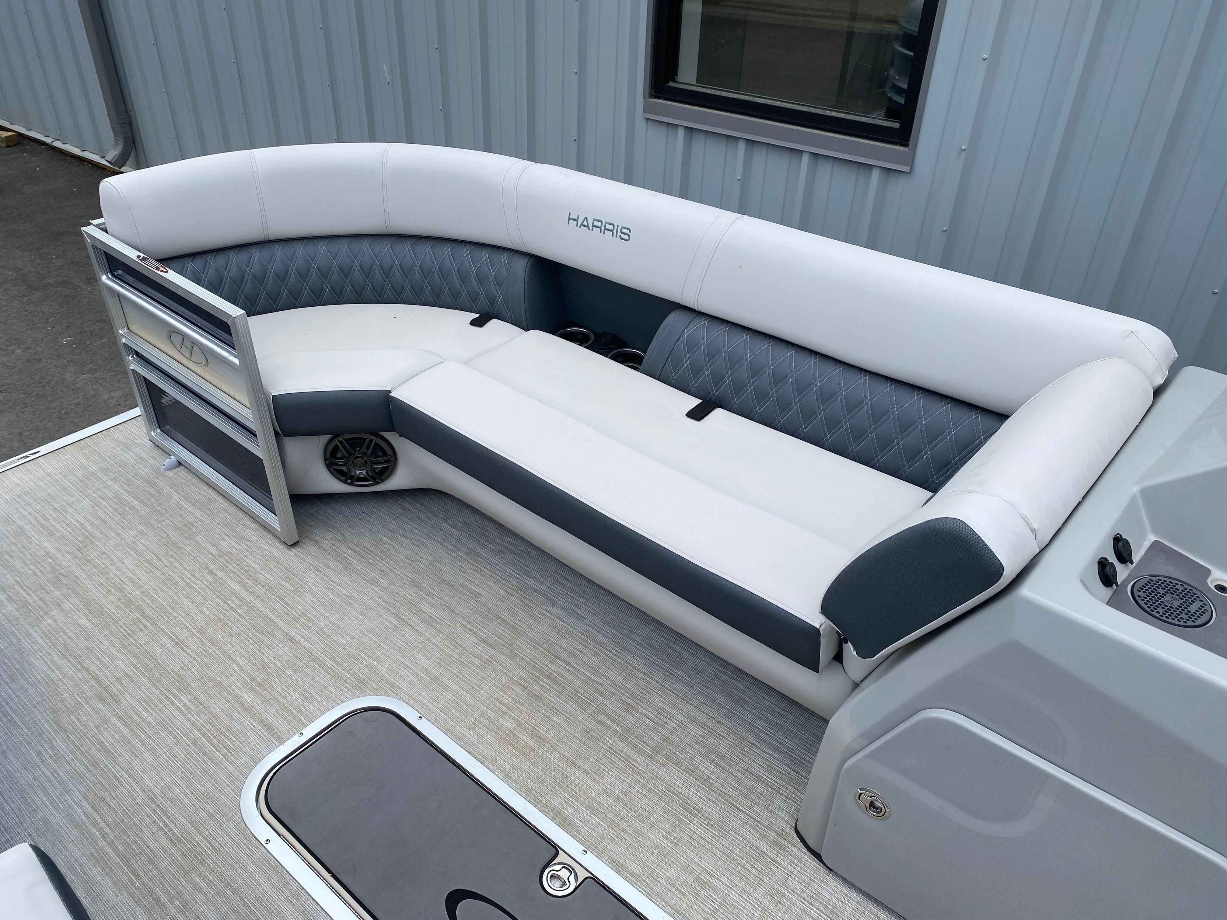The Harris Sunliner 230 is designed with both functionality and luxury in mind. Its spacious deck layout offers ample room for passengers to relax, socialize, and soak up the sun. The plush seating provides exceptional comfort, while the thoughtfully arranged floor plan allows for easy movement throughout the boat. High-quality materials and finishes are evident in every detail, reflecting Harris’s commitment to durability and style.This pontoon boat also features a versatile layout that can be customized to suit your needs, whether you prefer lounging, dining, or entertaining. The sturdy construction and reliable engineering ensure that the Sunliner 230 is built to withstand the rigors of regular use, making it a smart investment for anyone seeking a Harris boat for sale that will provide years of enjoyment.