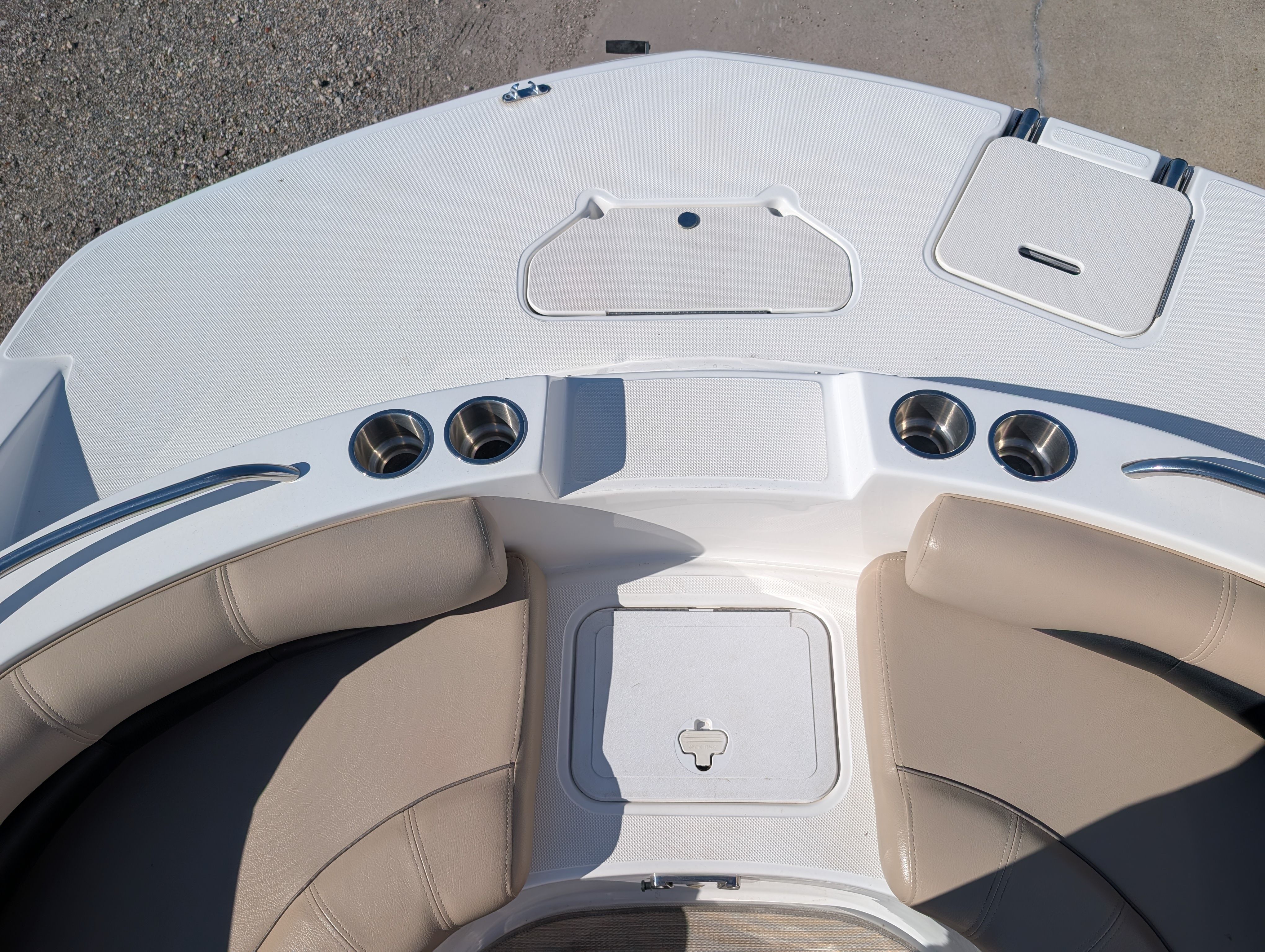 This Hurricane boat for sale is loaded with special features that enhance both its recreational and practical appeal. The wake tower is a standout addition, perfect for wakeboarding, waterskiing, or tubing. It provides a sturdy and elevated tow point, ensuring smooth rides and big air for thrill-seekers. The bimini top offers essential shade and protection from the sun, allowing you to stay cool and comfortable during long summer outings. For anglers, the fish finder is a valuable tool, helping you locate the best fishing spots with ease and precision. These features make the Hurricane 188 SS a true multi-purpose vessel, ready for whatever adventure you have in mind.