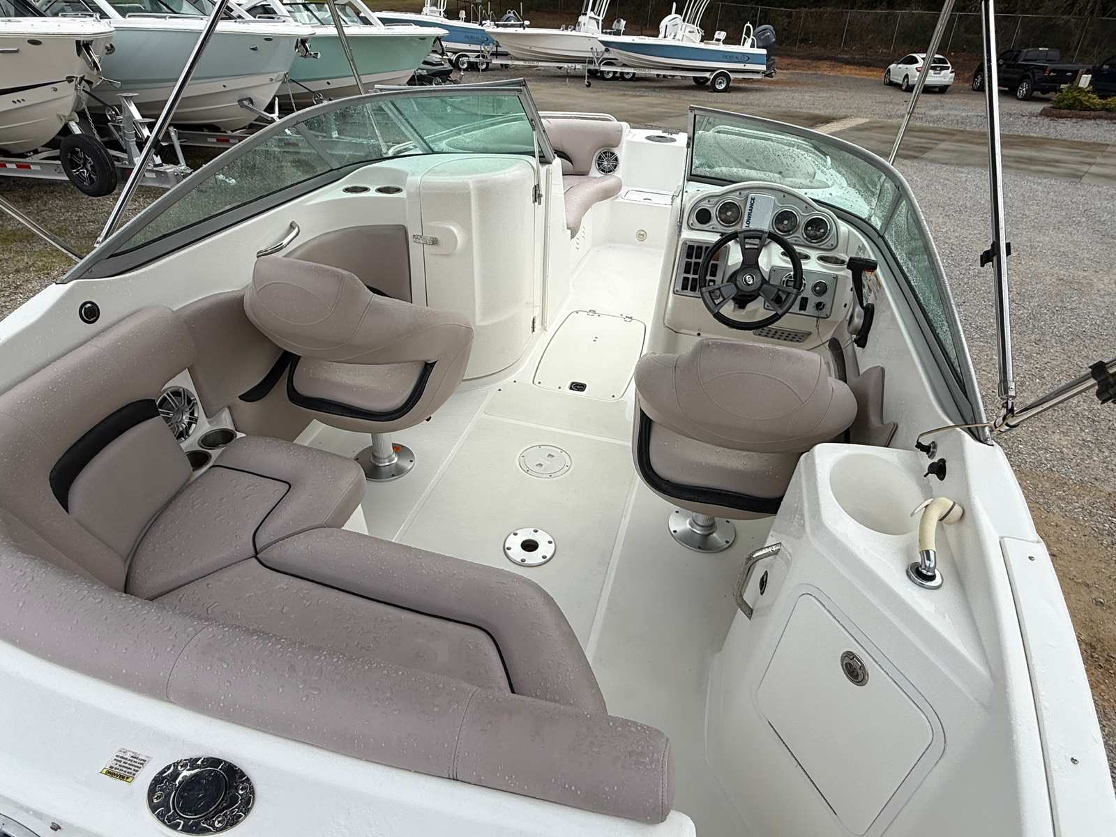 The Hurricane Sundeck 2200 DC OB is packed with features that enhance both functionality and comfort. As a dual console model, it offers a spacious and well-thought-out layout, providing plenty of seating and storage options for you and your guests. The center console design allows for easy movement around the deck, making it convenient for fishing, socializing, or simply enjoying the view. The boat’s durable construction and quality materials ensure long-lasting performance and a stylish appearance that stands out on the water.With a length of 22 feet, this Hurricane boat for sale offers generous deck space, allowing everyone on board to relax and enjoy the ride. The thoughtful design includes multiple seating areas, making it perfect for entertaining family and friends. The ample storage compartments help keep your gear organized and out of the way, ensuring a clutter-free environment for all your activities.