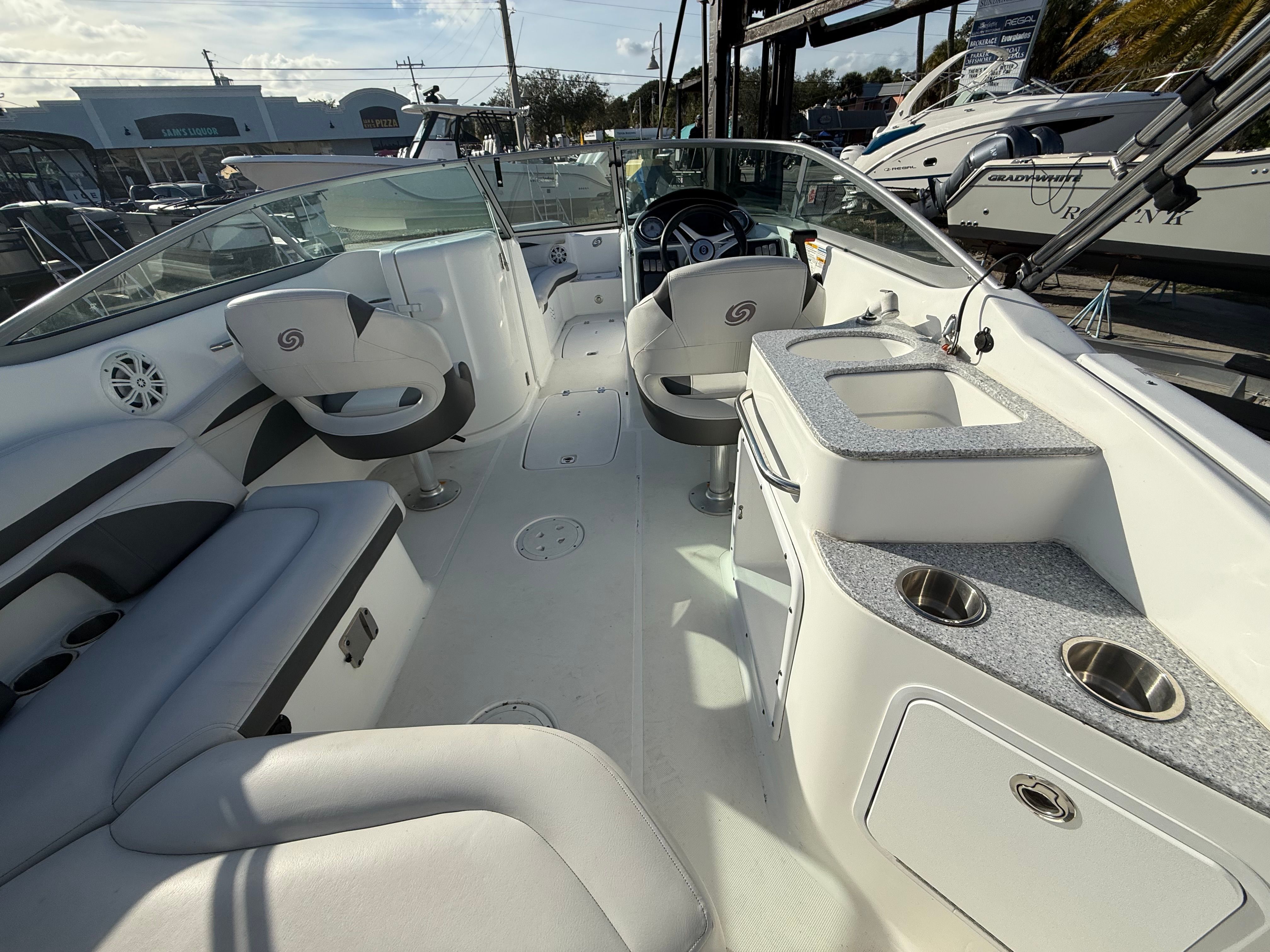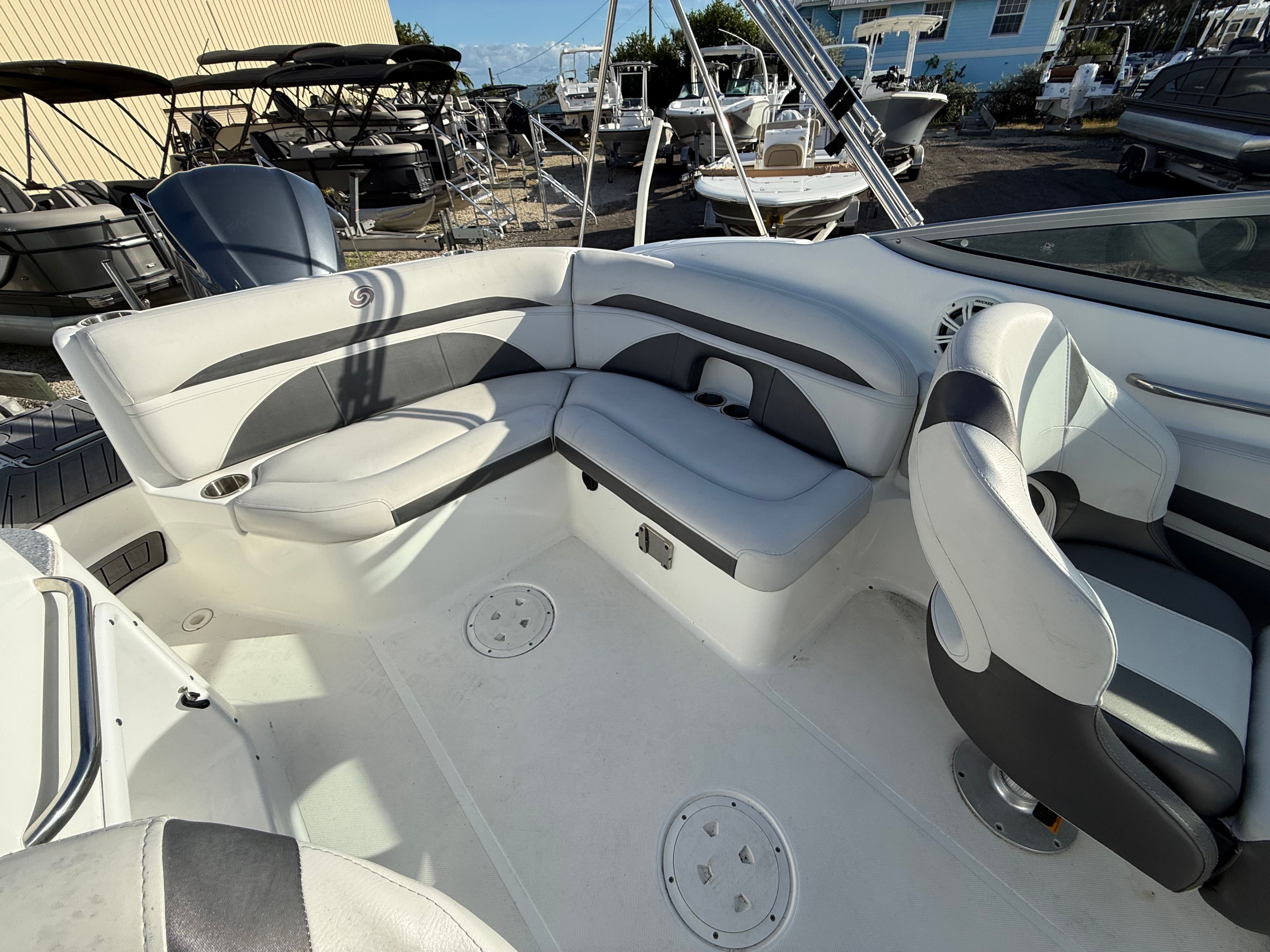 Powering this Hurricane Sundeck 2400 is a robust single engine delivering 250 horsepower, providing the perfect blend of power and efficiency. Whether you’re cruising along the coastline, heading out for a day of fishing, or towing water toys, the 250-horsepower engine ensures responsive acceleration and smooth handling. The center console design enhances visibility and maneuverability, making navigation effortless even in crowded marinas or busy waterways. This Hurricane boat for sale is engineered for reliability and performance, giving you the confidence to explore new destinations and enjoy every moment on the water.