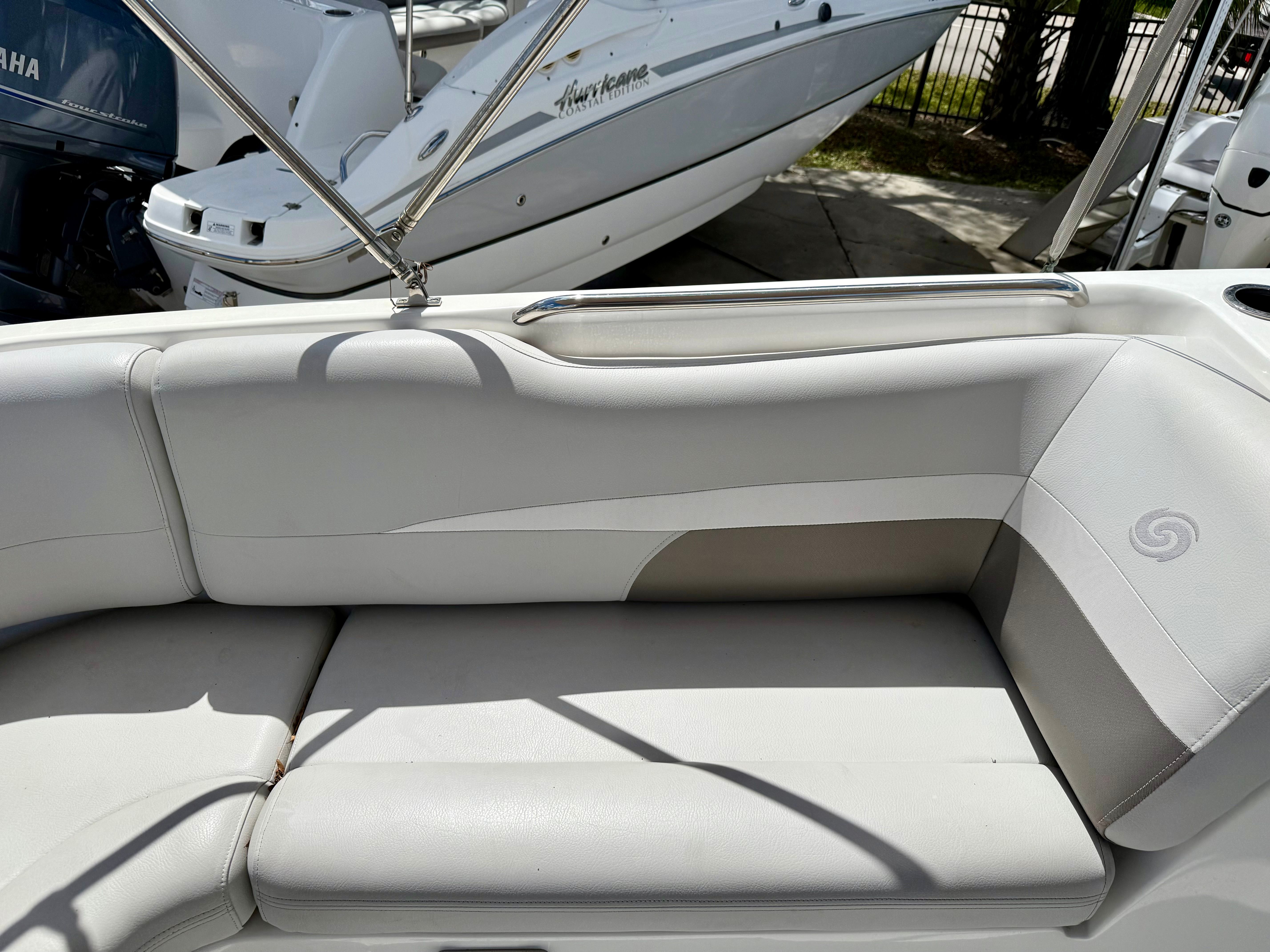 Beyond its recreational appeal, the Hurricane SS188 deckboat is designed with practicality in mind. The efficient engine offers excellent fuel economy, allowing you to spend more time on the water and less time at the pump. The manageable size and responsive handling make docking and trailering straightforward, even for those new to boating. Ample storage compartments provide space for life jackets, water toys, and other essentials, keeping the deck clutter-free and organized. The durable hull and quality construction ensure low maintenance and long-lasting performance, so you can focus on enjoying your time on the water.