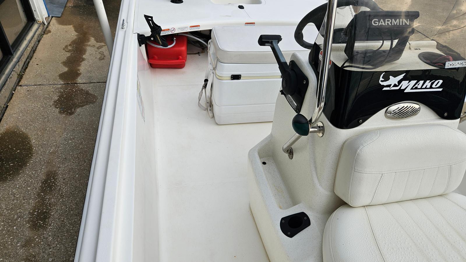 The Mako 17 Pro Skiff is designed with the needs of boaters in mind, offering a range of features that enhance both functionality and comfort. The spacious deck layout provides plenty of room for casting lines, setting up gear, or simply relaxing with friends and family. The hull design is optimized for stability, ensuring a steady platform even in choppy conditions. With its 17.33-foot length, this bay boat offers generous space without sacrificing maneuverability, making it easy to handle for boaters of all experience levels.As a used Bay Boat boat for sale, this Mako model is built to last, with durable construction and quality materials that withstand the rigors of saltwater and freshwater environments. The thoughtful design includes ample storage compartments for tackle, gear, and personal items, keeping the deck clutter-free and organized. The open layout makes it easy to move around the boat, whether you are reeling in a big catch or enjoying a picnic on the water.