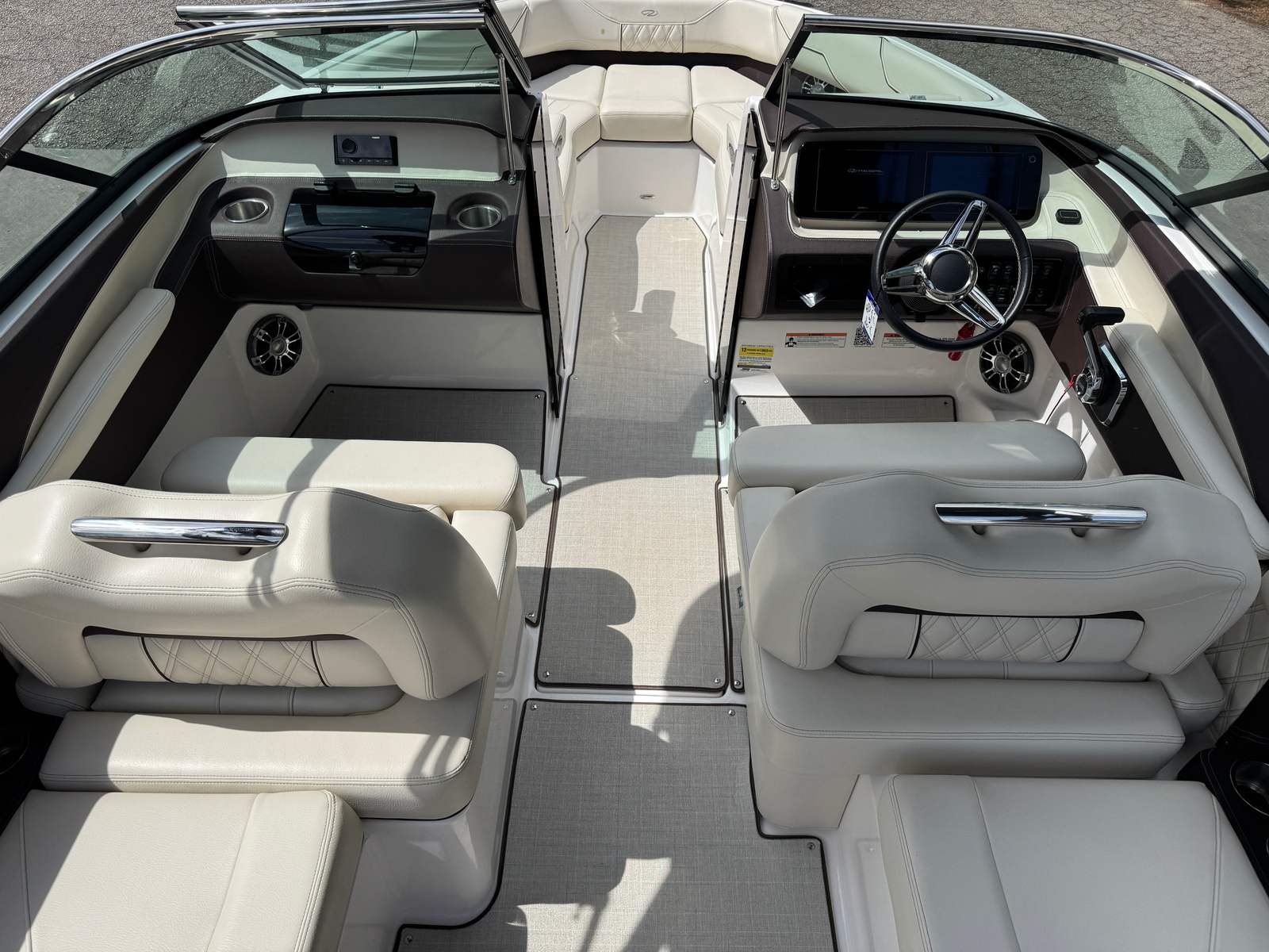 Under the hood, the Malibu Wakesetter 25 LSV is powered by a single, impressive 460-horsepower engine. This powerhouse ensures exhilarating acceleration, smooth cruising, and the ability to create massive wakes for wakeboarding and wakesurfing. With only 50 engine hours, the engine is barely broken in, promising many seasons of reliable performance ahead. The advanced engineering behind this Ski & Wakeboard boat for sale guarantees responsive handling, precise control, and the kind of power that serious water sports enthusiasts crave. Whether you’re towing riders or simply enjoying a high-speed cruise, the Wakesetter 25 LSV delivers an unmatched on-water experience.