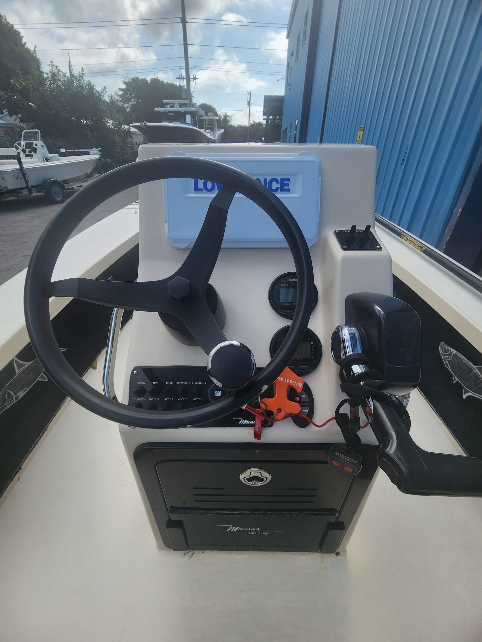 The 2014 Maverick 18 Hpx-V is an 18.33-foot flats boat that exemplifies the perfect blend of agility, stability, and comfort. Renowned for its innovative hull design and superior build quality, Maverick has established itself as a leader in the flats boat market. This particular model is in used condition, meticulously maintained, and features only 300 engine hours, making it a fantastic opportunity for anyone seeking a reliable and high-performing vessel. With its sleek lines and purposeful design, the Maverick 18 Hpx-V is engineered to excel in shallow water environments, providing anglers with the confidence to explore even the most challenging flats.