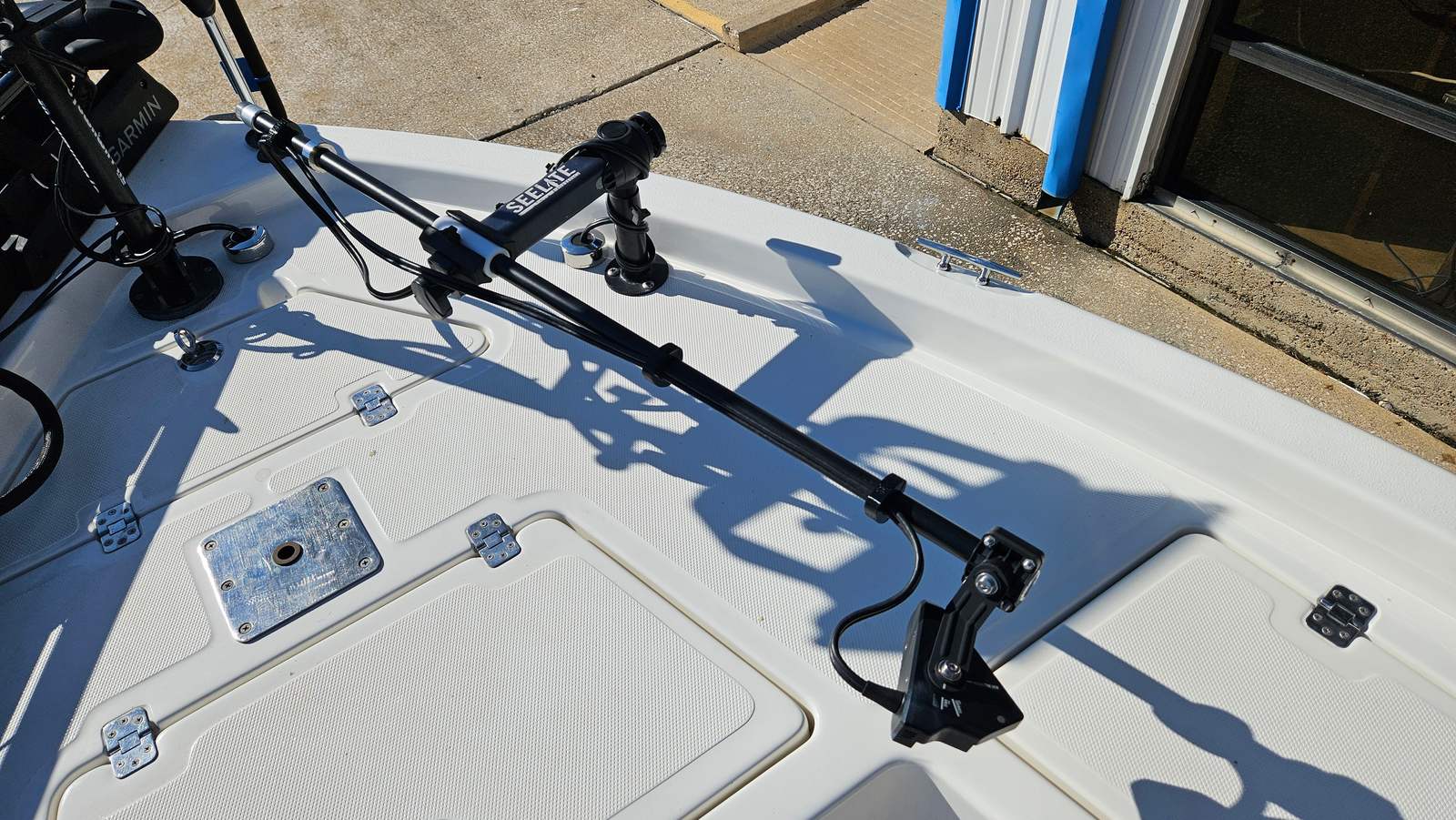 The Nauticstar 215 XTS Shallow BAY is packed with special features that set it apart from other Bay Boats on the market. Included with this boat is a tandem axle trailer, making transport and storage convenient and hassle-free. The Garmin Ghost Trolling Motor offers quiet, efficient propulsion for stealthy approaches to fishing hotspots, while the Livescope system provides real-time underwater imaging to help you locate fish with pinpoint accuracy. Navigation and electronics are top-notch, thanks to the Simrad Go9 and Garmin Ultra 126SV units at both the helm and bow, ensuring you have all the data you need for safe and successful outings. The Power Pole adds an extra layer of convenience for anchoring in shallow water, giving you stability and control when you need it most.