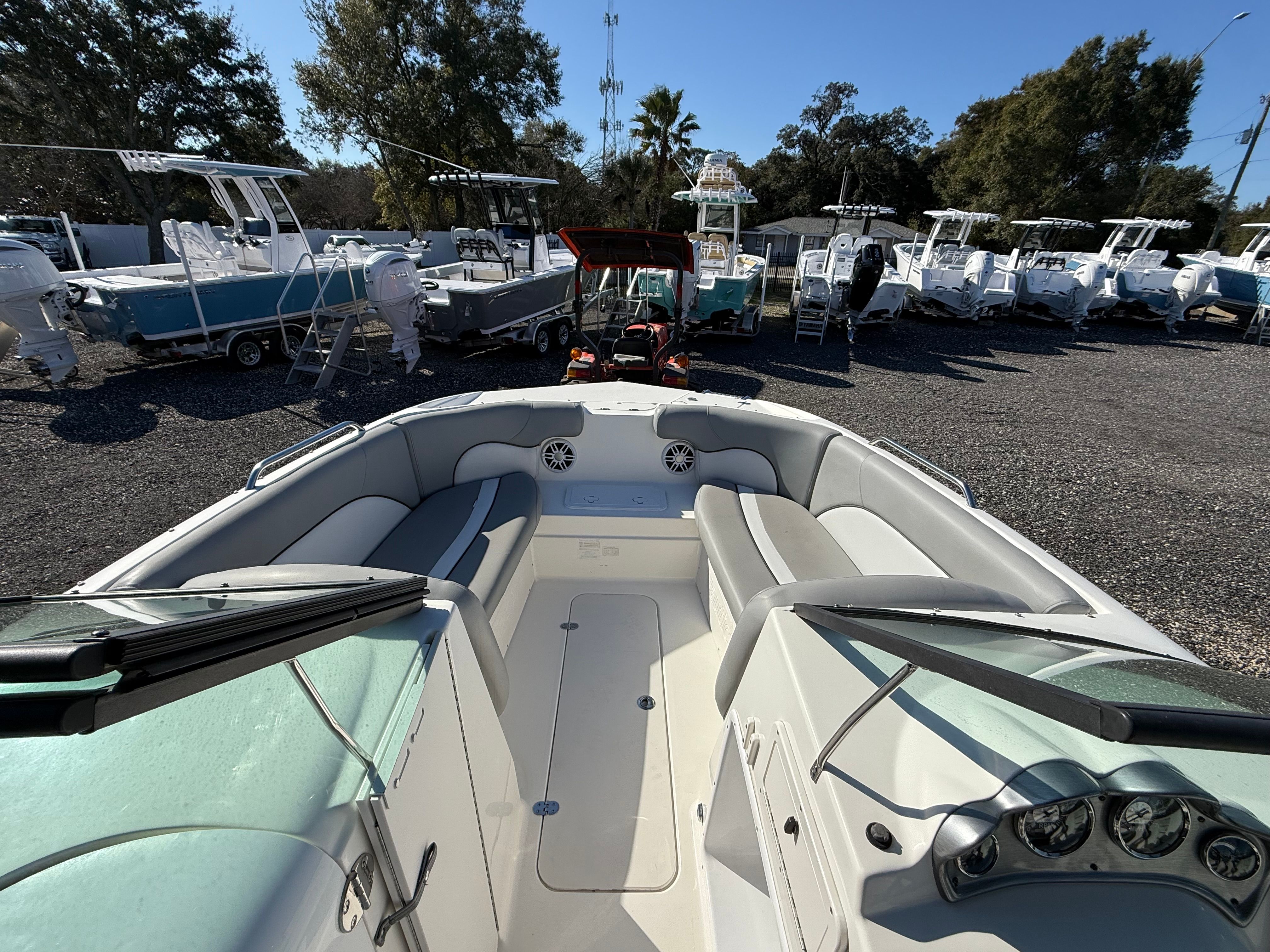 The Nauticstar 223 DC is thoughtfully equipped to maximize comfort and enjoyment on the water. Its dual console layout offers ample seating and protection from the elements, making it ideal for all-day outings. The spacious cockpit and bow seating areas provide plenty of room for guests to relax, socialize, or soak up the sun. The ergonomic helm station is designed for ease of use, giving the captain clear visibility and intuitive access to controls.This dual console boat for sale features high-quality upholstery, durable flooring, and smart storage solutions throughout, ensuring that every inch of space is utilized efficiently. The 22-foot length allows for a generous layout without sacrificing ease of handling, making docking and trailering straightforward. The Nauticstar 223 DC’s hull design is engineered for a smooth, dry ride, even in choppier conditions, so you can explore with confidence.