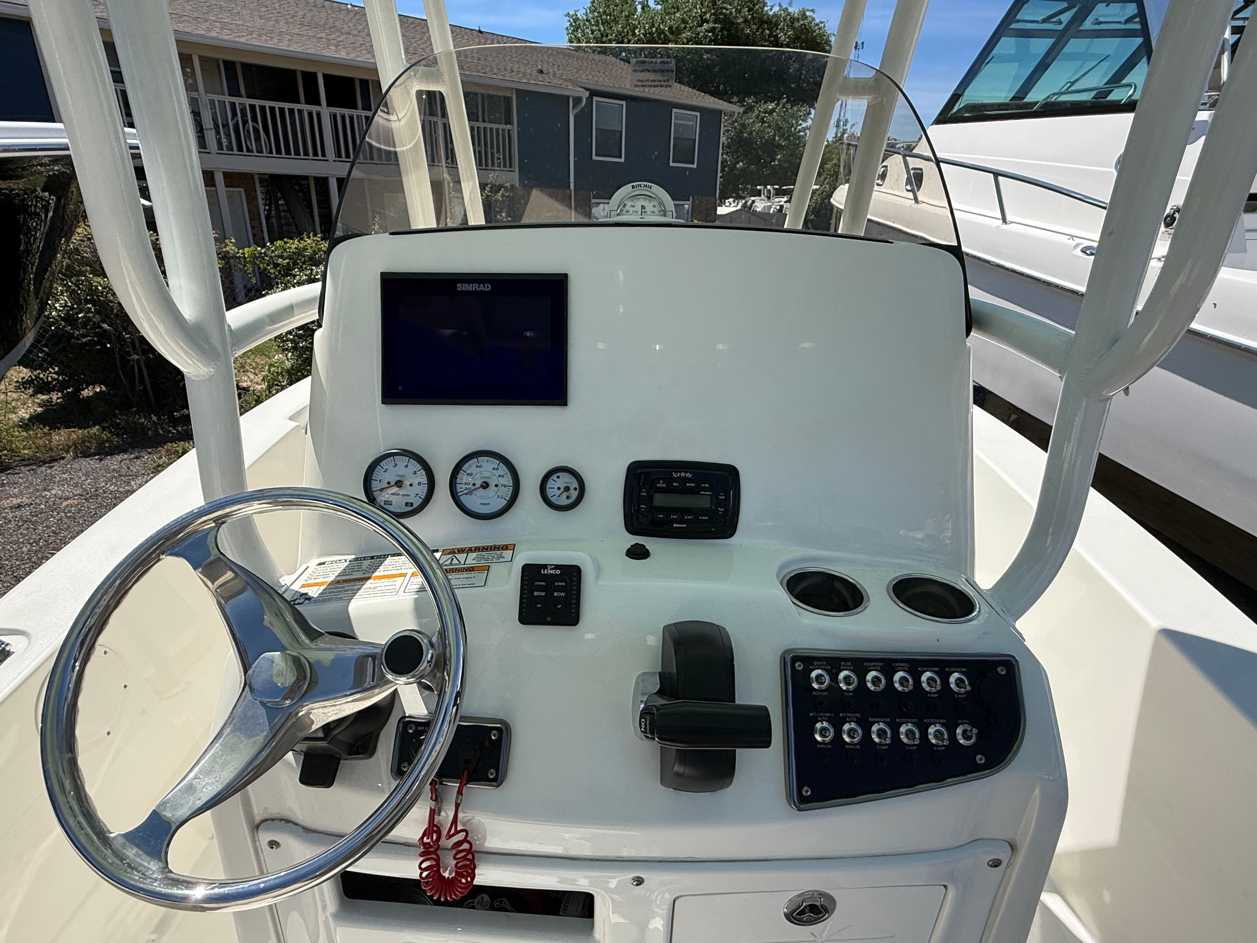 Powered by a single engine with an impressive 200 horsepower and only 80 engine hours, the 2018 Nauticstar 2302 Legacy delivers a smooth and responsive ride. The reliable outboard engine ensures quick acceleration and efficient cruising, making it easy to reach your favorite destinations or chase the next big catch. Whether you’re navigating coastal waters or exploring inland lakes, this center console boat for sale offers the power and agility you need for a thrilling boating experience.