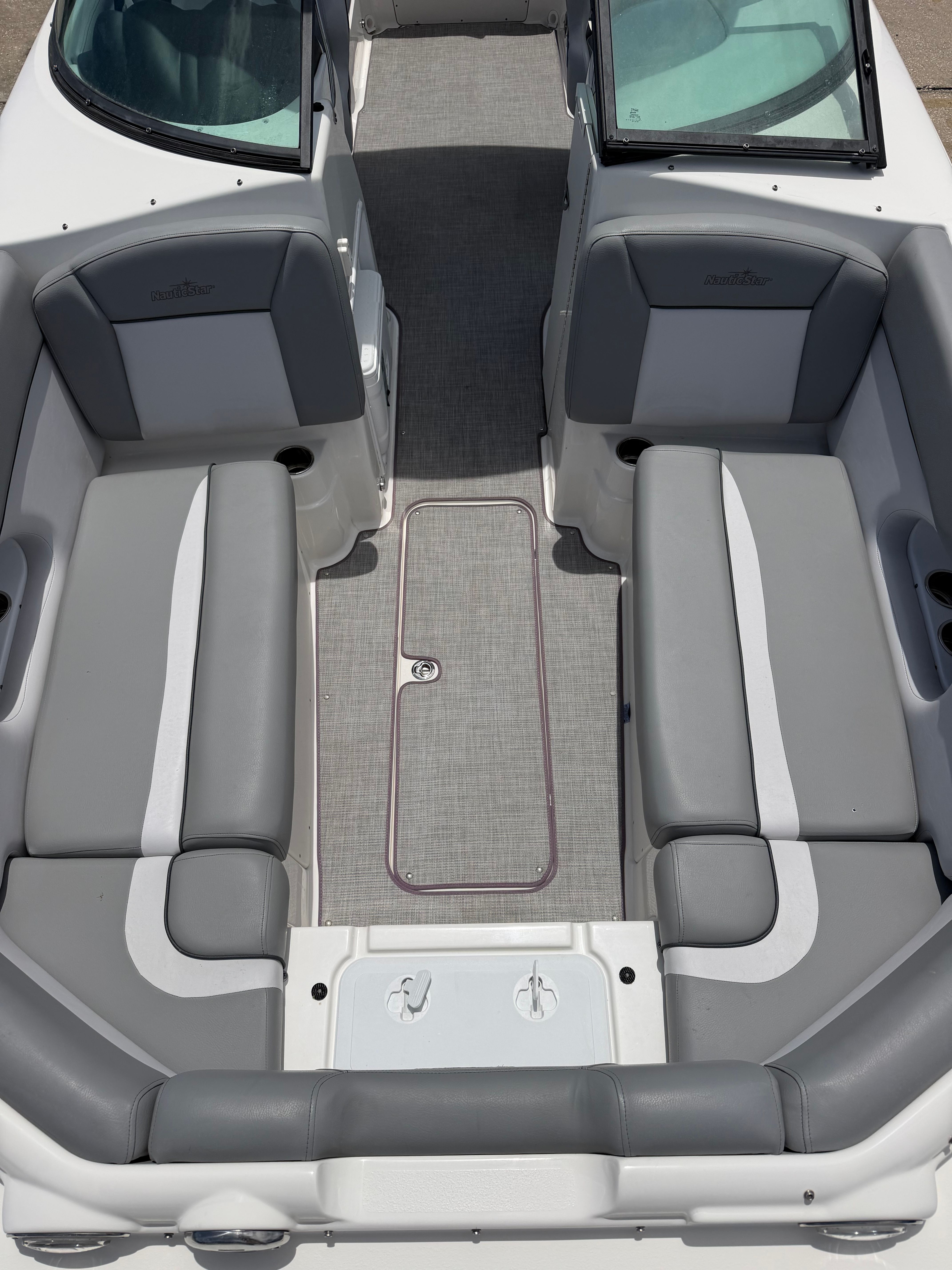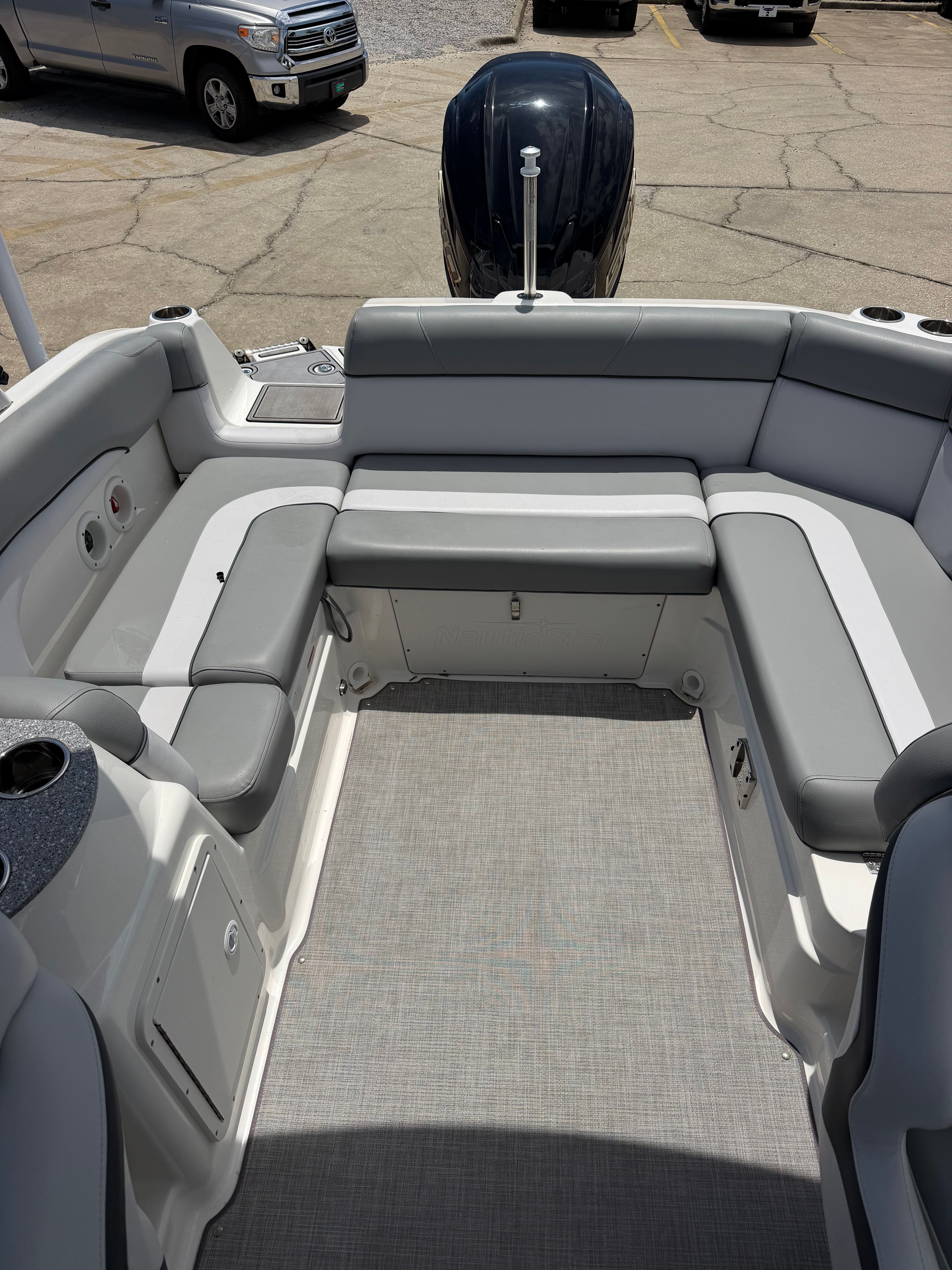 Awesome stepped hull design gives this boat an incredible ride, smooth, fast, and efficient. Great, roomy deck boat for the family to enjoy, whether you're cruising, hanging at the sandbar, or doing some light fishing.