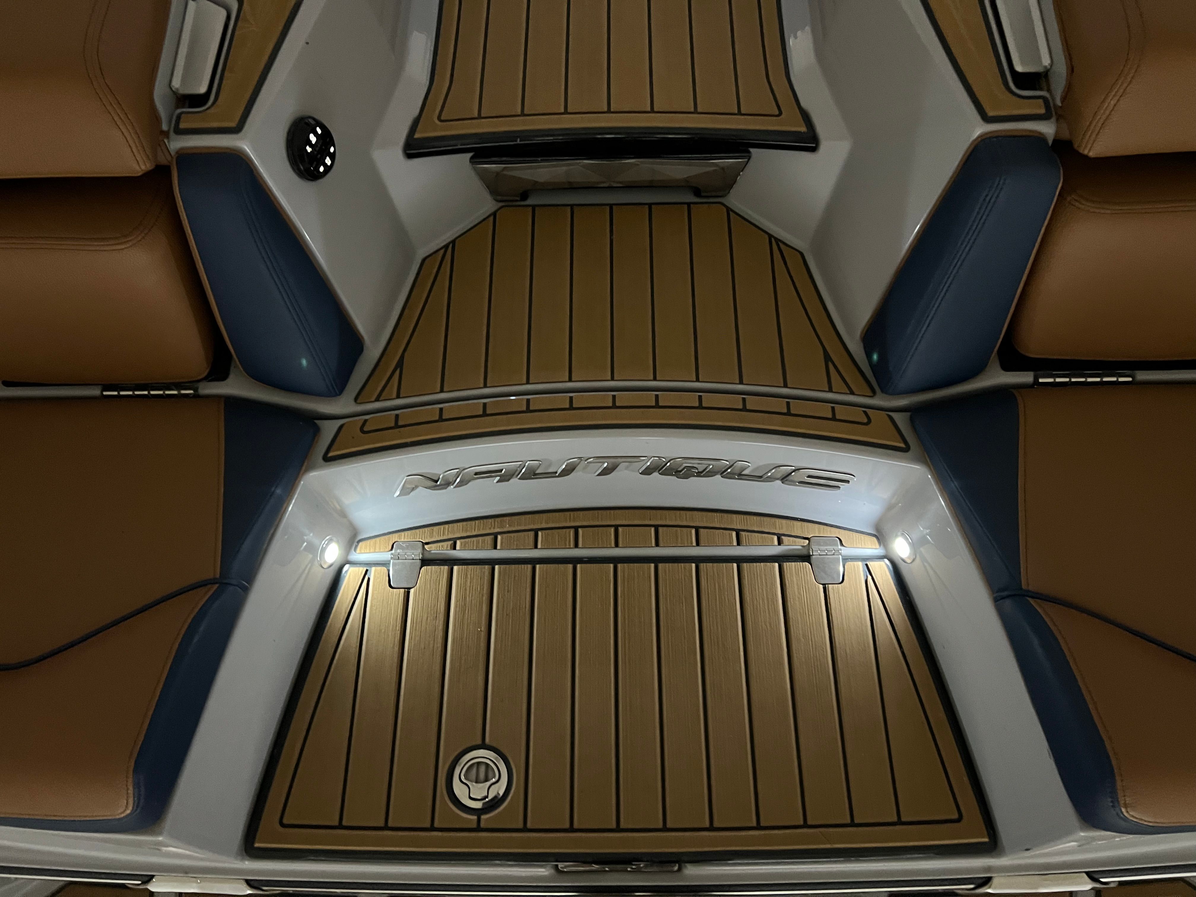 The Nautique P23 is packed with features designed to enhance your time on the water. Its 23.25-foot length provides ample space for friends and family, while the boat’s innovative design ensures maximum comfort and convenience. The hull is expertly crafted for optimal wake creation, allowing riders of all skill levels to enjoy the perfect ride. The advanced engineering of this Nautique boat for sale means you’ll experience superior stability and control, even in choppy conditions.With a focus on both performance and leisure, the Nautique P23 offers a spacious layout that encourages socializing and relaxation. The seating is thoughtfully arranged to provide clear sightlines for both the driver and passengers, ensuring everyone stays connected to the action. The intuitive helm design puts all controls within easy reach, making it simple to adjust speed and settings for different water sports activities.