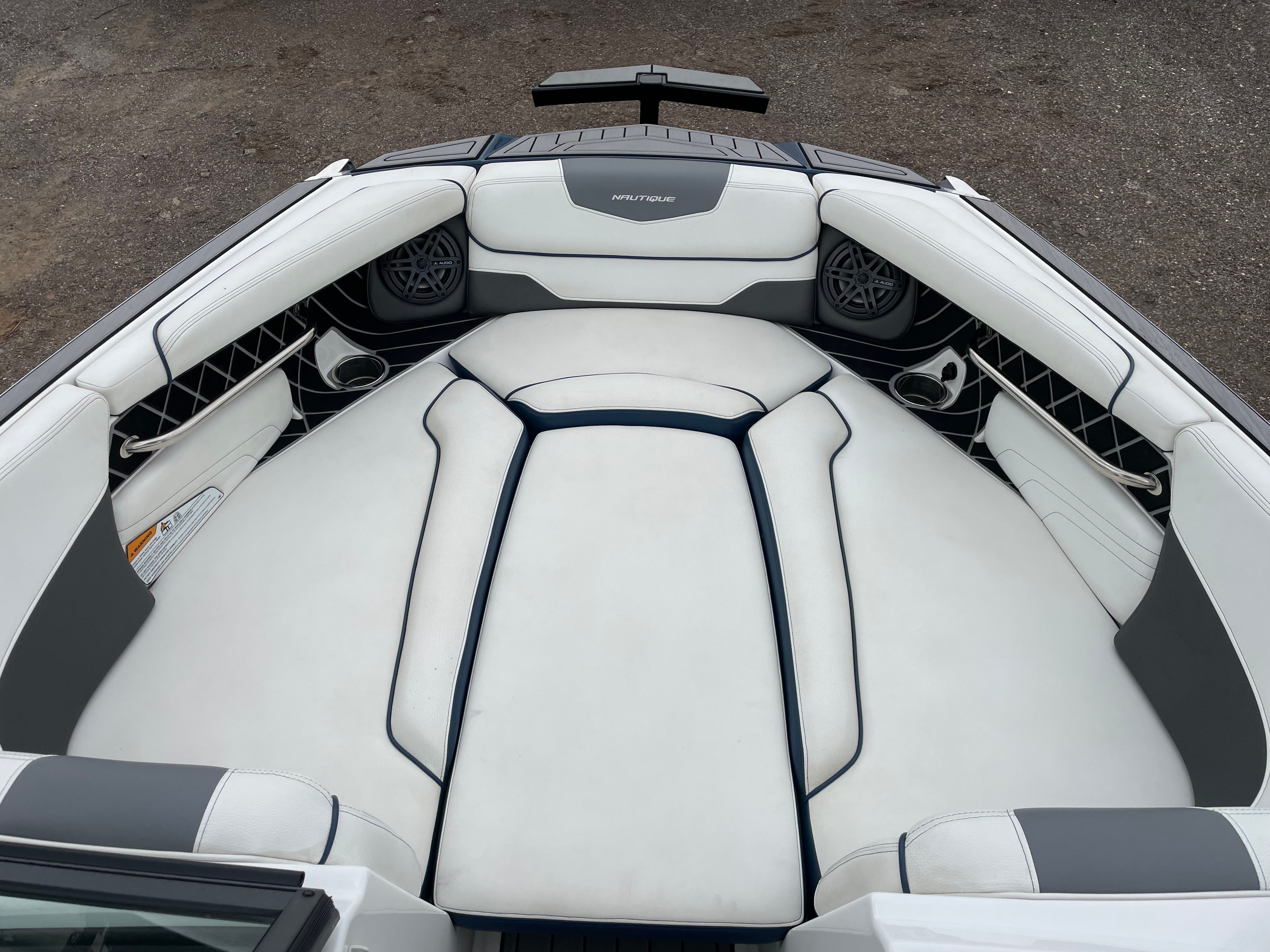 The 2019 Nautique GS24 is a 24-foot marvel that brings together the best of modern design and engineering. With its sleek lines and bold Nautique styling, this boat commands attention both on the water and at the dock. As a used Ski And Wakeboard boat for sale, it offers the perfect opportunity to own a high-quality vessel at a competitive value. The GS24’s spacious layout ensures there’s plenty of room for friends and family, making it ideal for social gatherings, watersports sessions, or relaxing cruises.