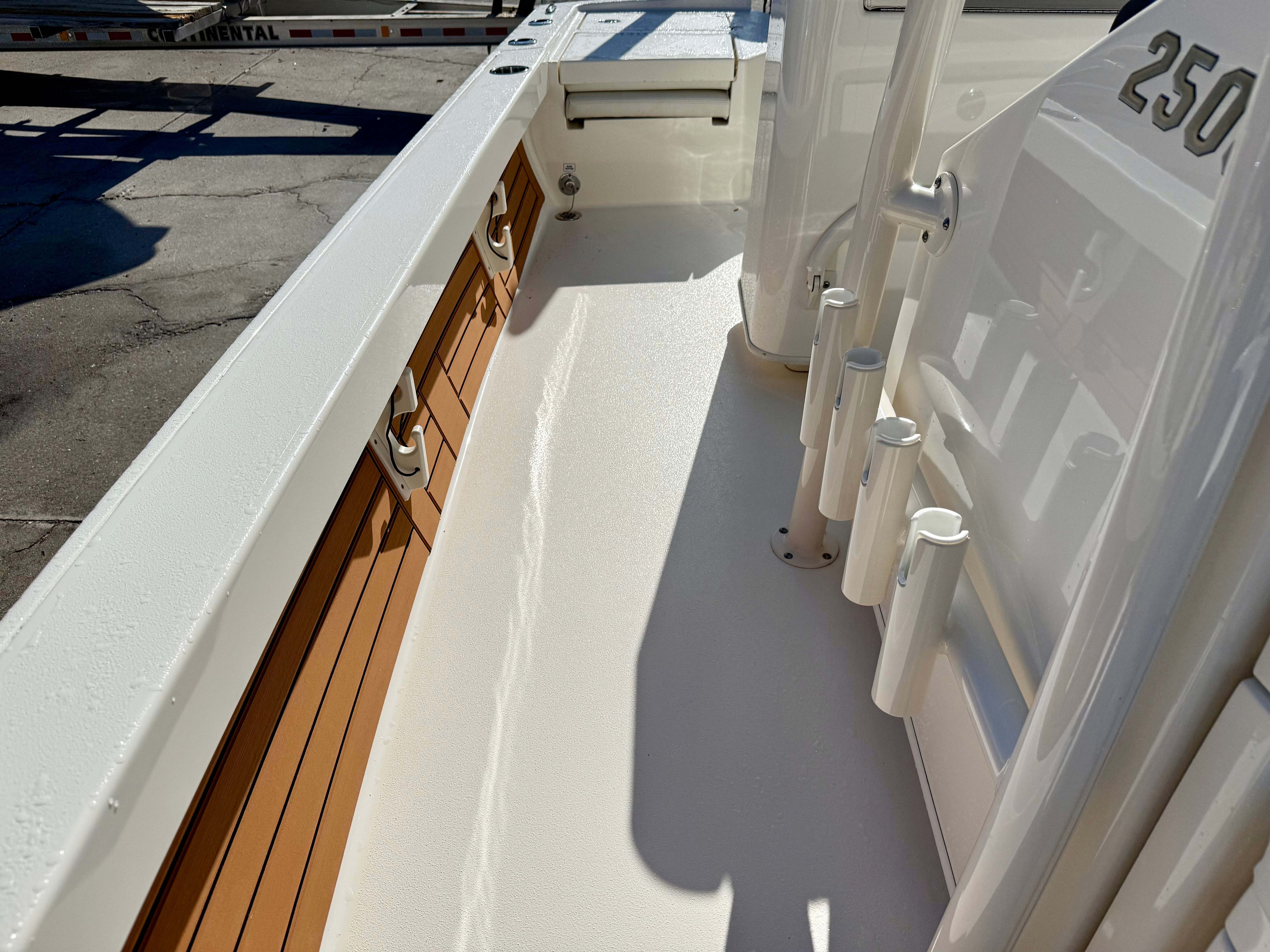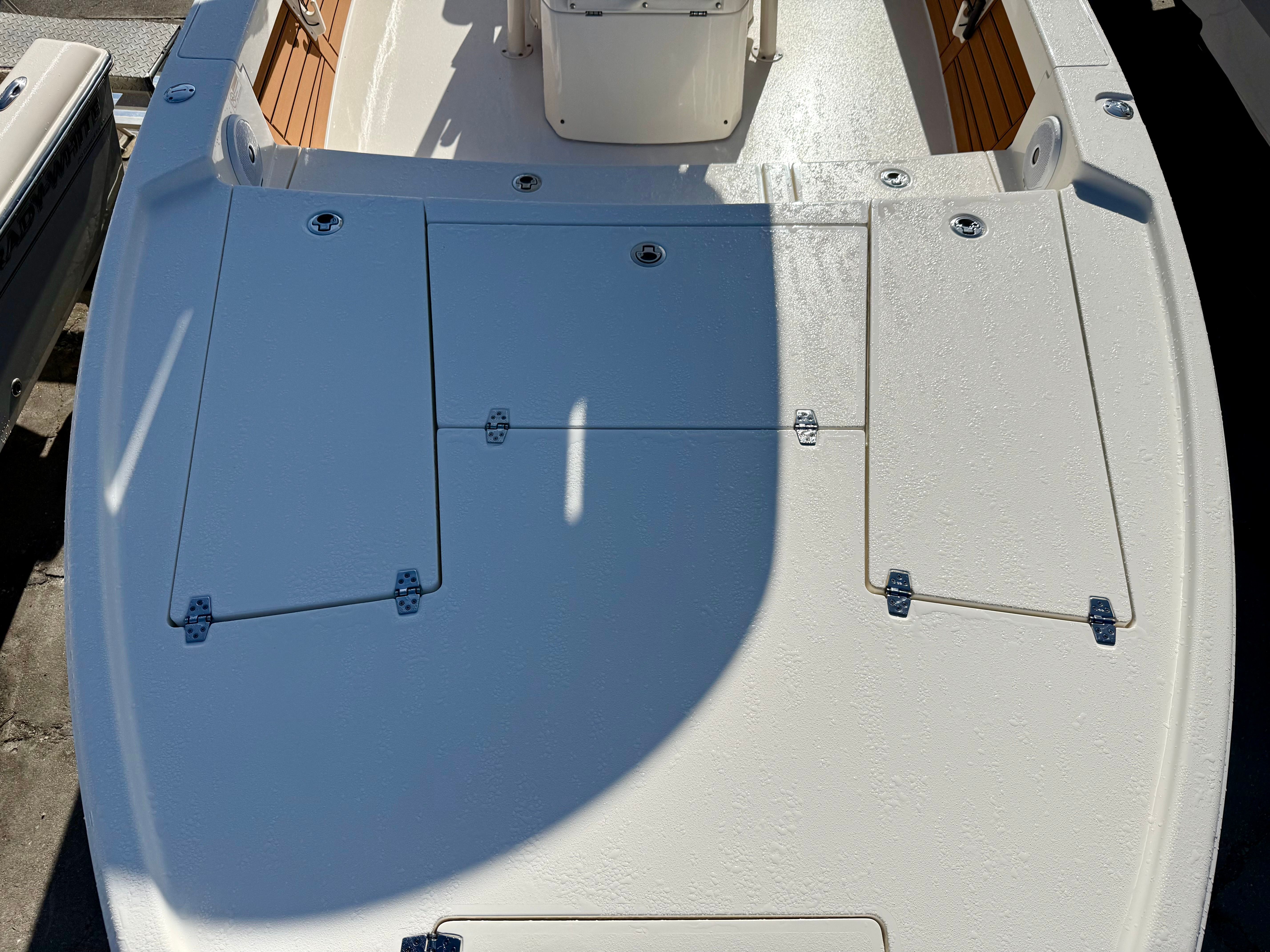 Powering this Pathfinder 2500 Hybrid is a robust single engine with an impressive 300 horsepower with only 128 hours. This setup ensures exhilarating acceleration, smooth cruising, and the ability to reach your favorite fishing spots or sandbars with ease. The 300-horsepower engine delivers the perfect balance of speed and efficiency, making this Center Console boat for sale ideal for both inshore and offshore adventures. Whether you’re chasing trophy fish or enjoying a leisurely day on the water, the Pathfinder 2500 Hybrid’s performance will exceed your expectations.