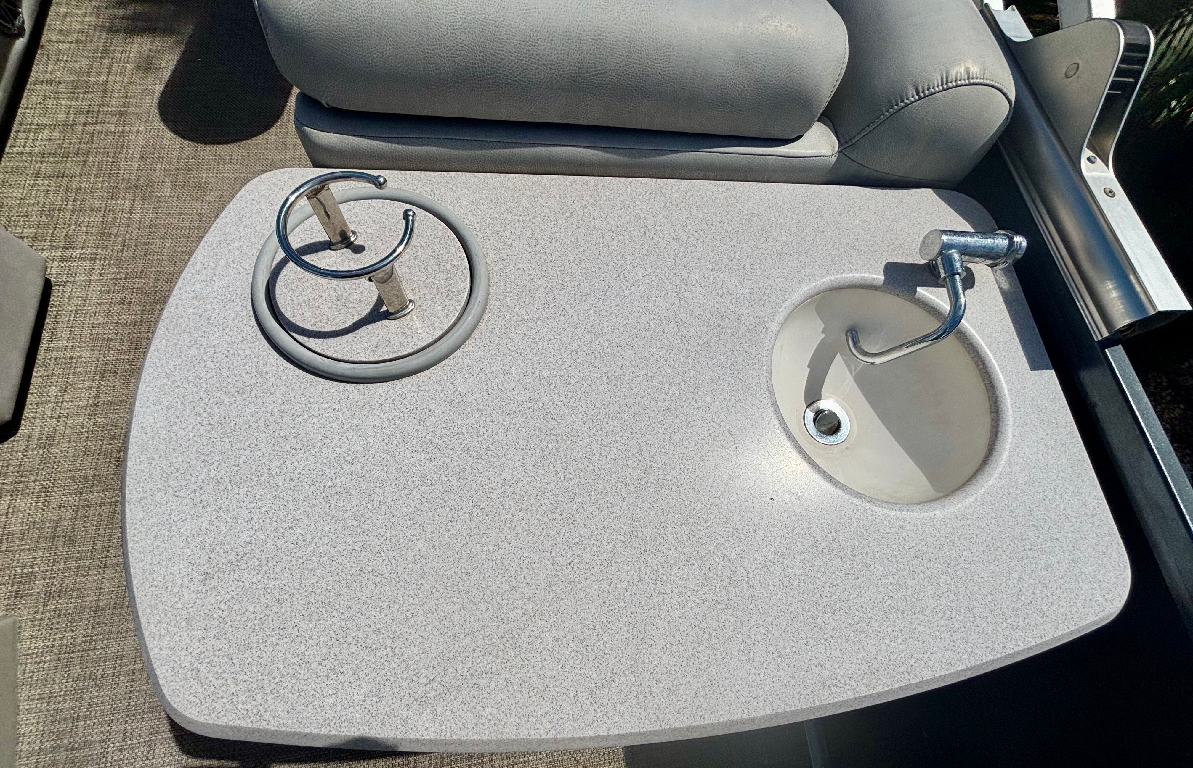 Powering the Premier 270 Intrigue is a robust single engine boasting an impressive 350 horsepower. This powerful setup ensures exhilarating acceleration, smooth cruising, and the ability to handle a variety of water conditions with ease. Whether you are towing water toys, cruising at sunset, or making your way to a favorite fishing spot, the 350 HP engine provides the performance you need for a thrilling and reliable boating experience. With only 100 engine hours, you can be confident in the longevity and dependability of this pontoon’s powertrain.