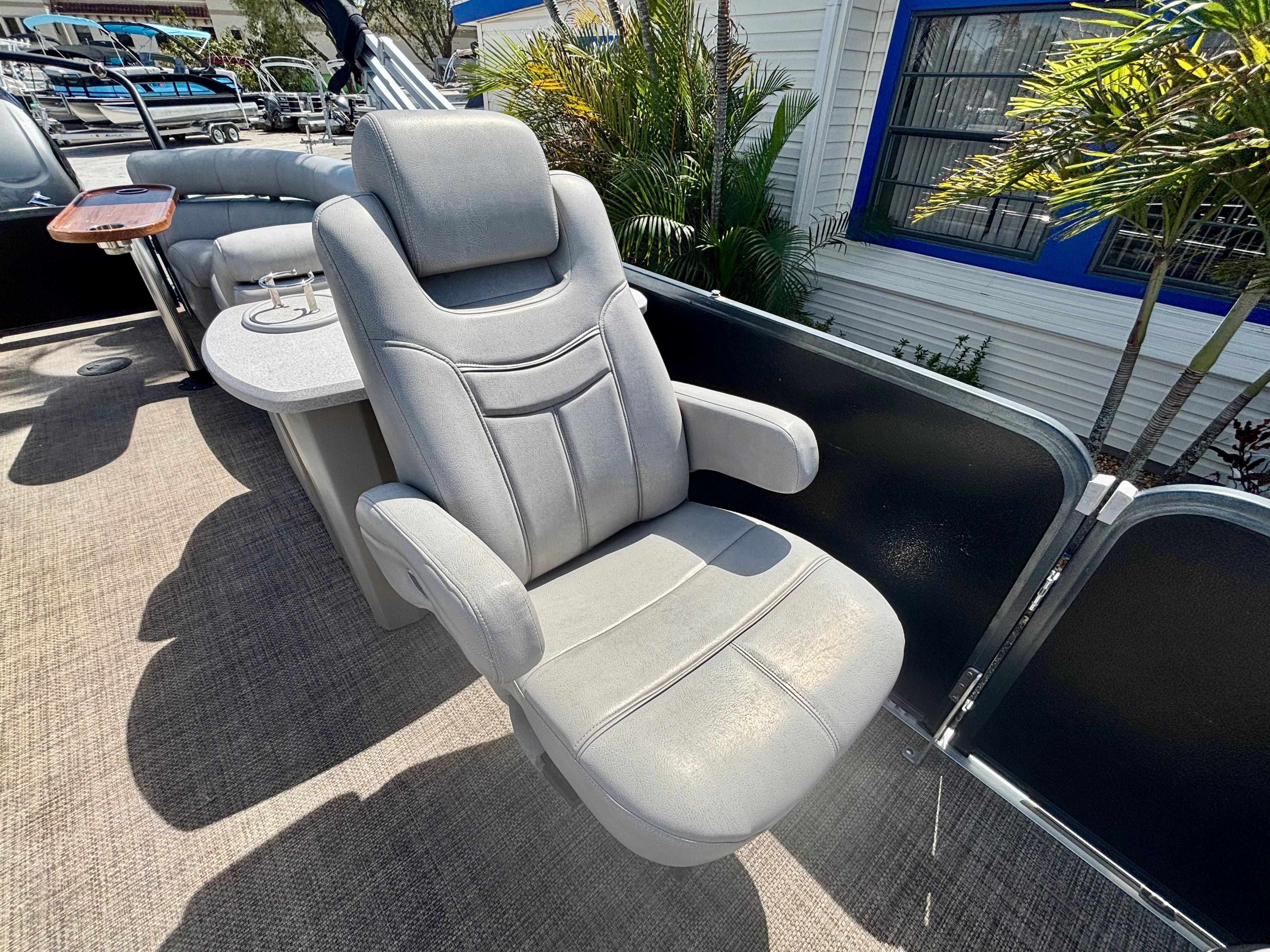 The Premier 270 Intrigue is designed with both comfort and convenience in mind. Its spacious deck layout offers plenty of room for family and friends to relax, socialize, and enjoy the water. The high-quality construction and attention to detail are evident throughout, from the plush seating to the stylish helm. Special features of this pontoon boat include a powerful 350 HP engine, a generous 27.4-foot length, and a single-engine configuration that balances performance and efficiency. The boat’s used condition means you can enjoy premium features at a more accessible price point, making it an excellent value for those seeking a Premier boat for sale.