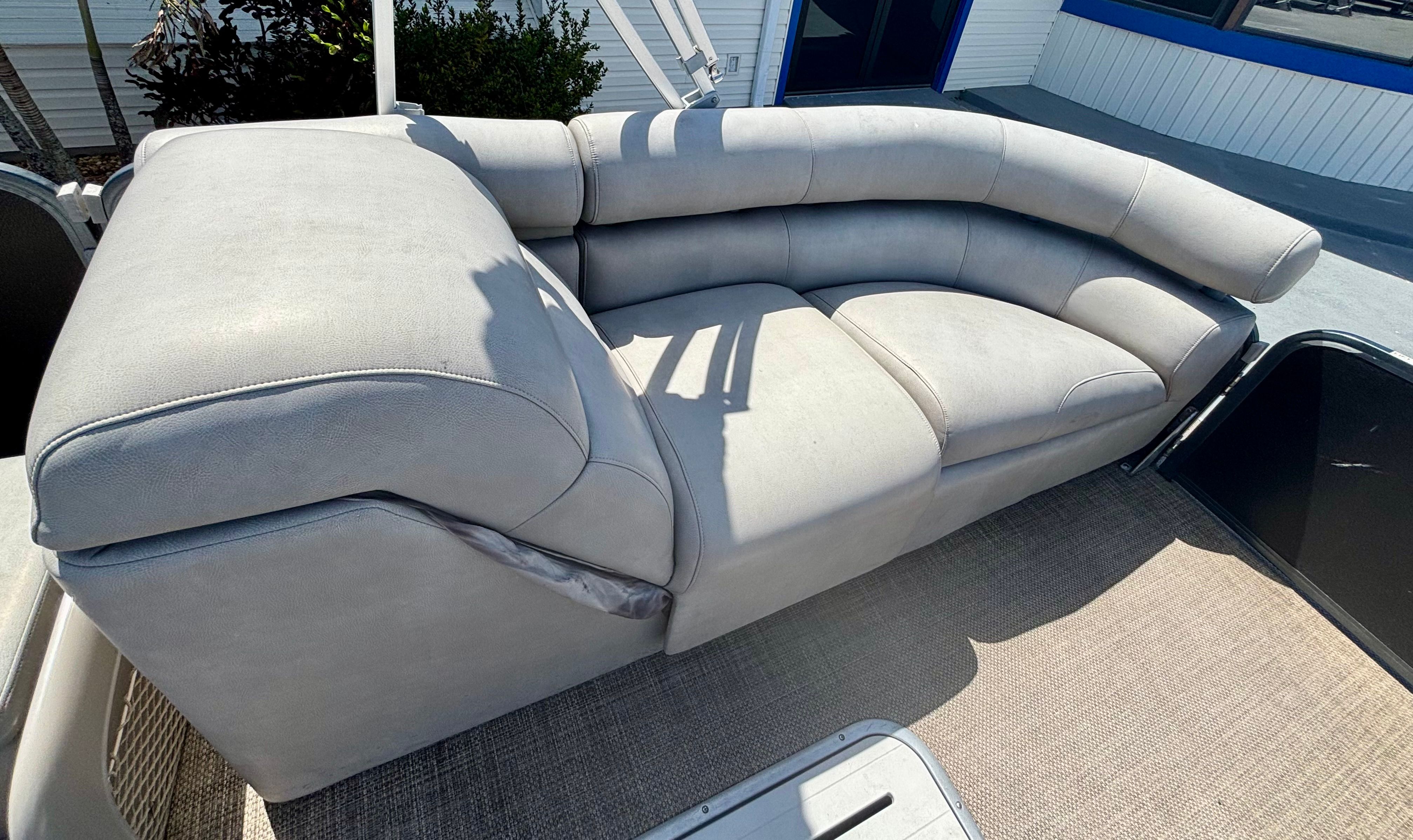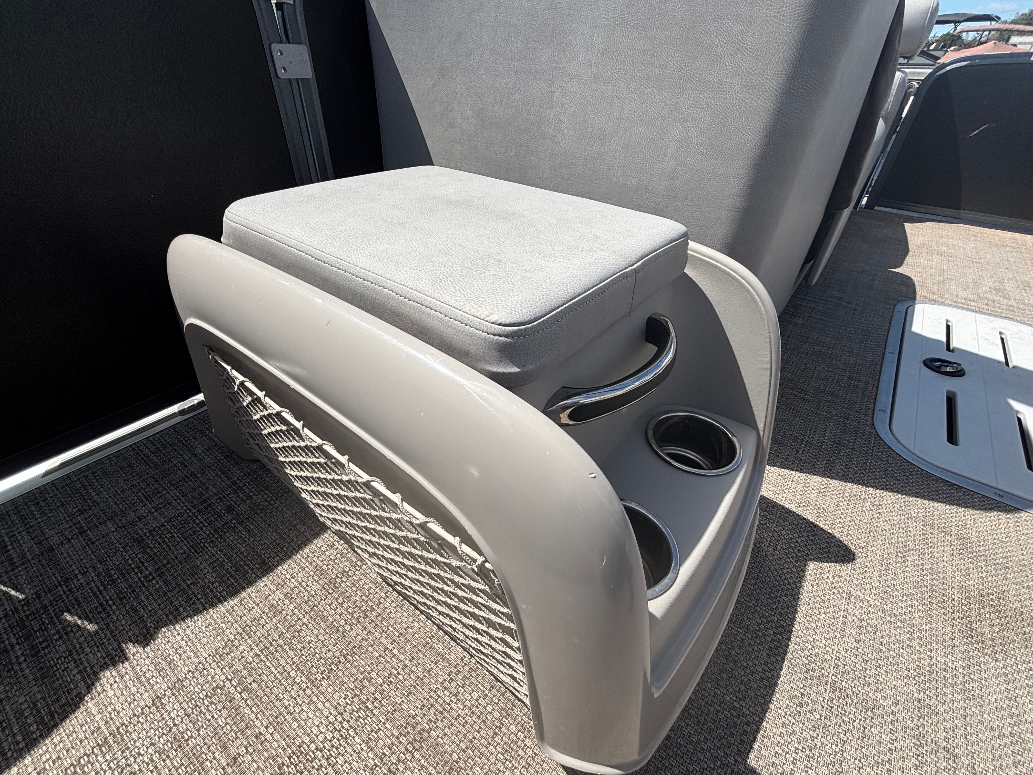 The 2019 Premier 270 Intrigue is a stunning 27.4-foot pontoon boat that delivers both style and substance. With its sleek lines and modern design, this used Premier boat for sale is sure to turn heads at any marina or dock. The generous length provides ample space for passengers to spread out, relax, and enjoy the ride, while the sturdy construction ensures a smooth and stable experience on the water. With only 100 engine hours, this pontoon boat has been lightly used and is ready for many more seasons of enjoyment.