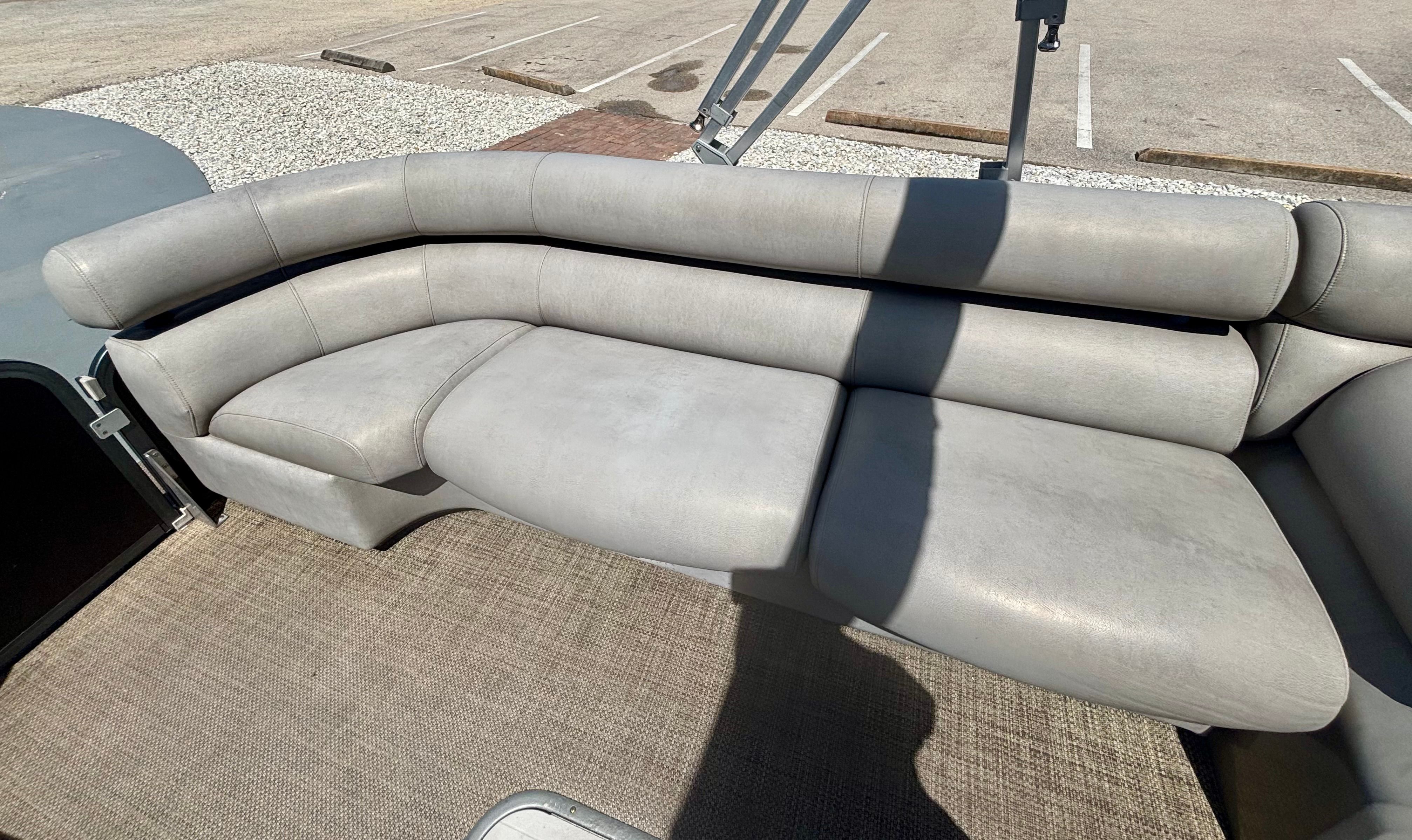 The Premier 270 Intrigue is as practical as it is enjoyable. The spacious deck provides plenty of storage for gear, water toys, and personal items, keeping the area organized and clutter-free. The single-engine design simplifies maintenance and operation, making it easy for both new and experienced boaters to enjoy. Docking and maneuvering are straightforward, thanks to the responsive handling and well-balanced layout. The efficient engine helps you make the most of your time on the water, whether you are planning short day trips or extended outings. This used pontoon boat for sale offers the perfect blend of convenience and performance for a wide range of activities.