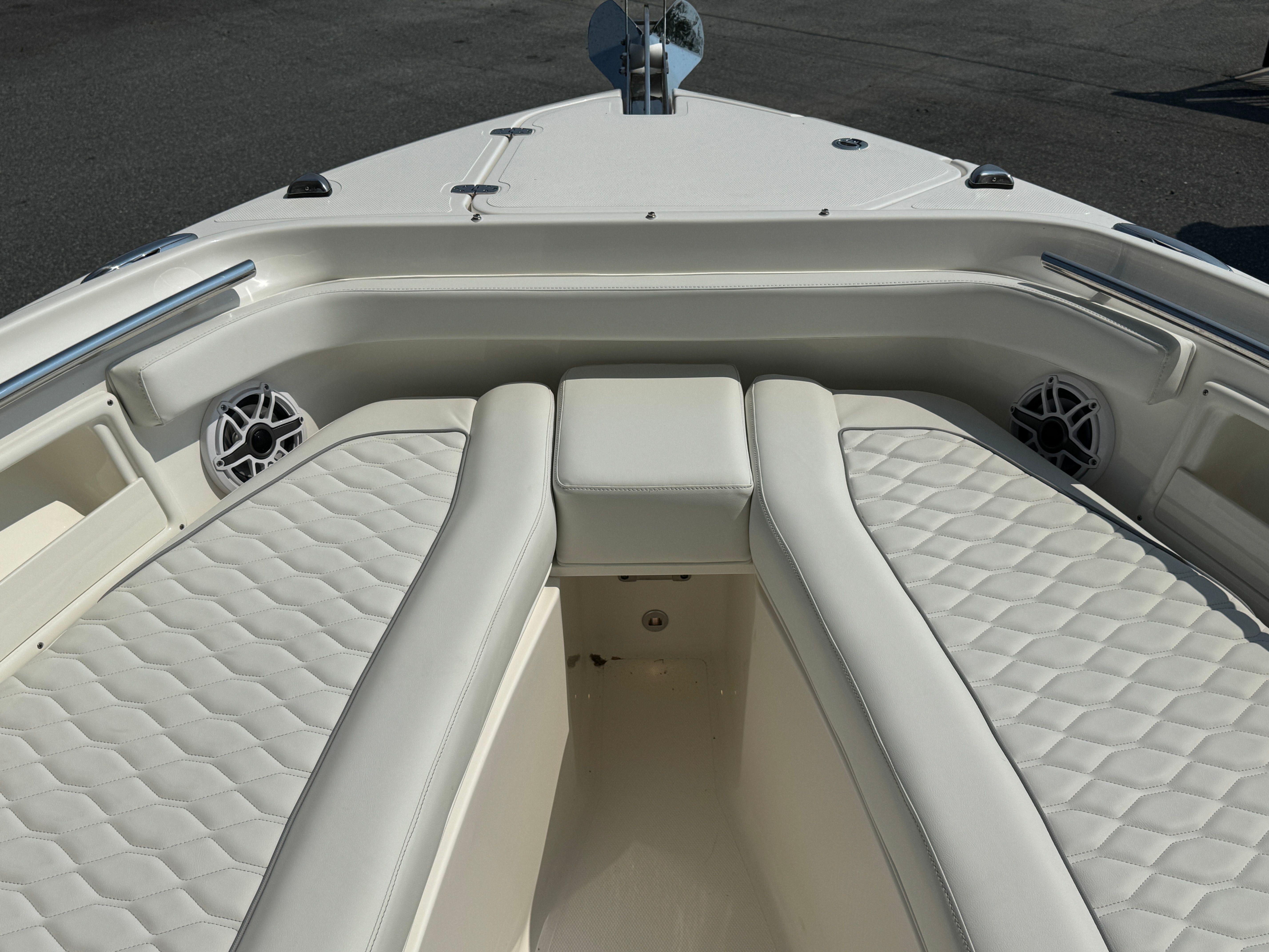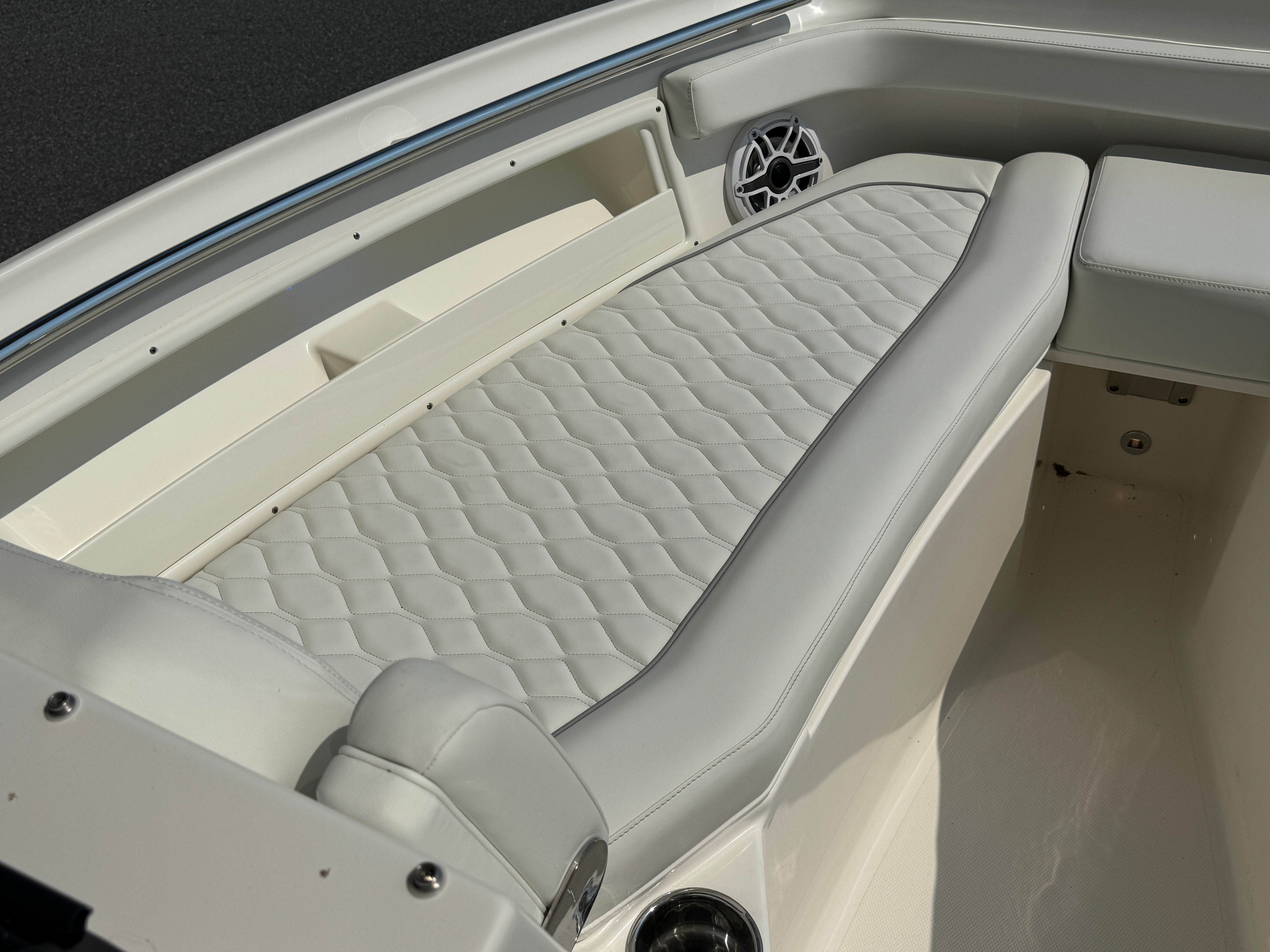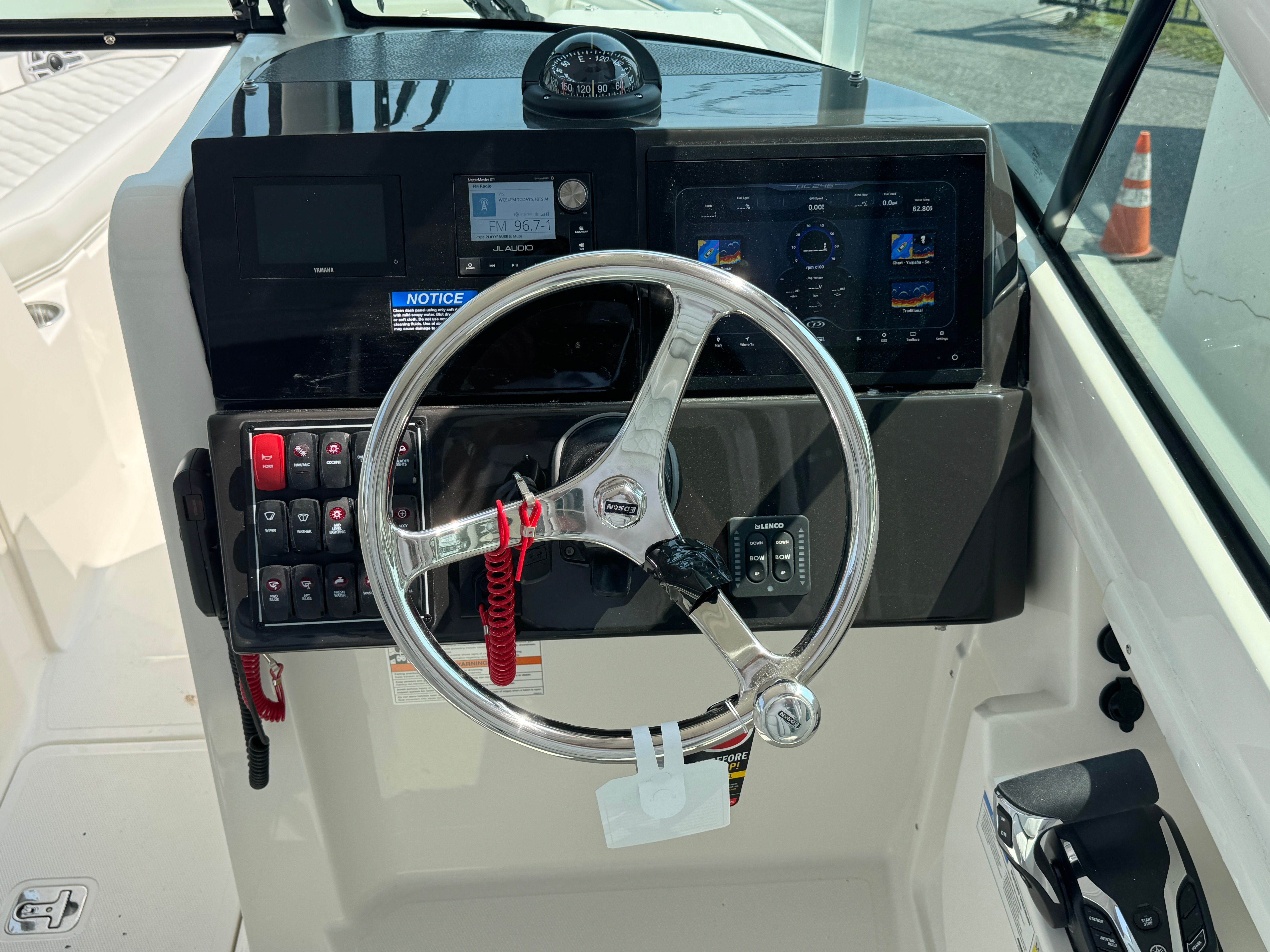 The Pursuit DC 246 is designed with practicality in mind, making ownership easy and enjoyable. The Dual Console layout offers flexible seating and storage options, allowing you to customize the space for different activities. The anchor windlass system simplifies docking and anchoring, saving time and effort during your adventures. The electric fresh water head provides added convenience for families and guests, ensuring comfort during extended trips.LED cockpit accent lights enhance visibility and safety during evening outings, while the premium stereo system keeps everyone entertained. The forward poly table is perfect for meals, games, or simply relaxing with a drink in hand. With its efficient engine and advanced control systems, the DC 246 is easy to maneuver in tight spaces, making docking and launching a breeze. Pursuit’s attention to detail ensures that every aspect of the boat is designed for maximum enjoyment and minimal hassle.