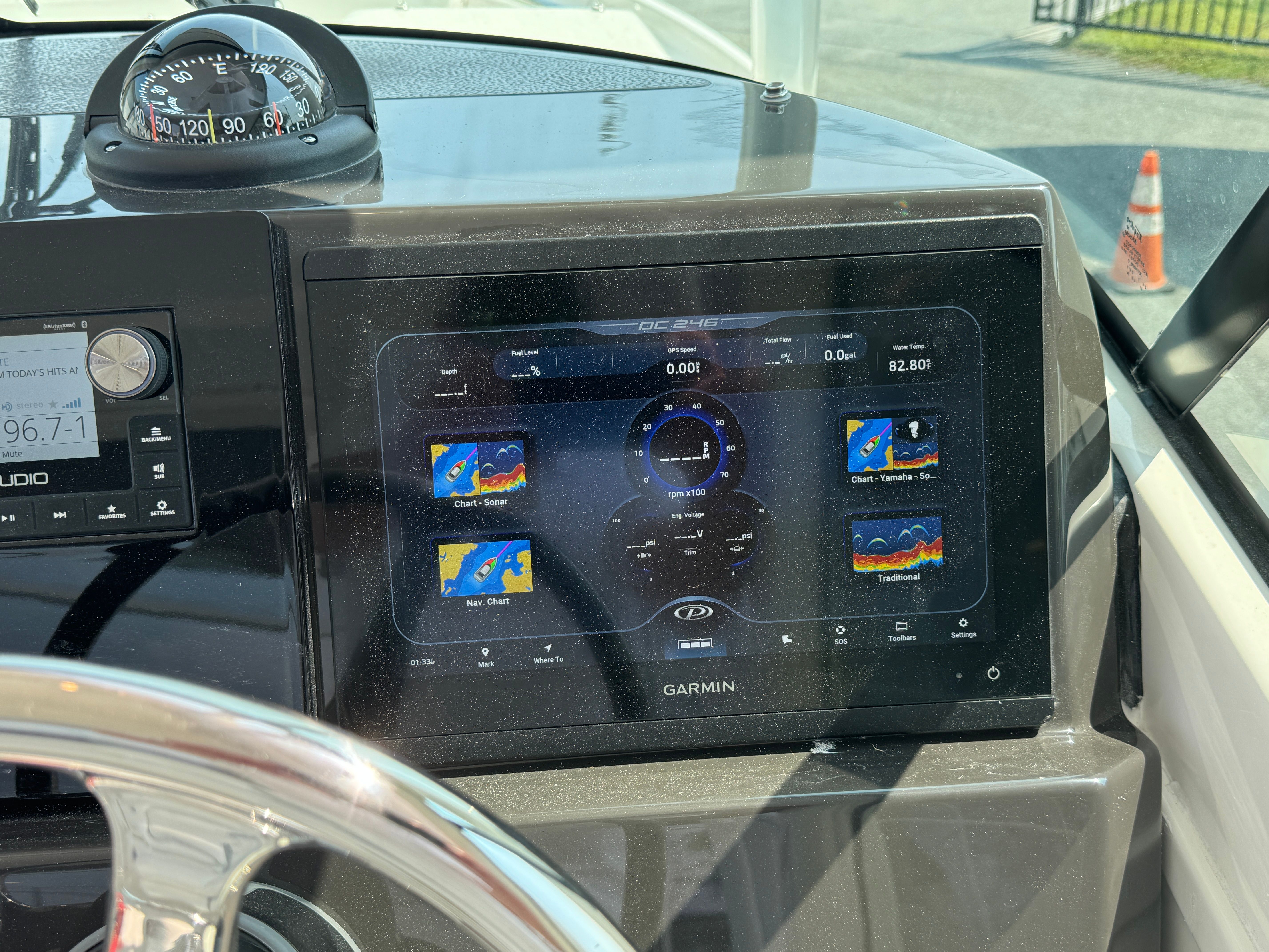 The Pursuit DC 246 is packed with premium features designed to enhance your boating experience. The upgraded upholstery in white and gray not only elevates the boat’s aesthetic but also ensures maximum comfort for you and your guests. The anchor windlass system with remote makes anchoring effortless, allowing you to secure your spot with the push of a button. For convenience and comfort, the electric fresh water head comes equipped with a 6-gallon holding tank, providing a private and functional restroom on board.Ambient lighting is provided by four mid-level cockpit accent lights in LED blue, creating a relaxing atmosphere for evening cruises or dockside gatherings. The stereo system receives a premium upgrade with JL Audio components, including a 6-channel DSP amp, subwoofer, four sport speakers with blue backlighting, and an external antenna. The Sirius receiver and included three-month subscription ensure you have access to your favorite music and entertainment while on the water. The forward poly table adds versatility to the bow area, perfect for dining, socializing, or simply enjoying the view.