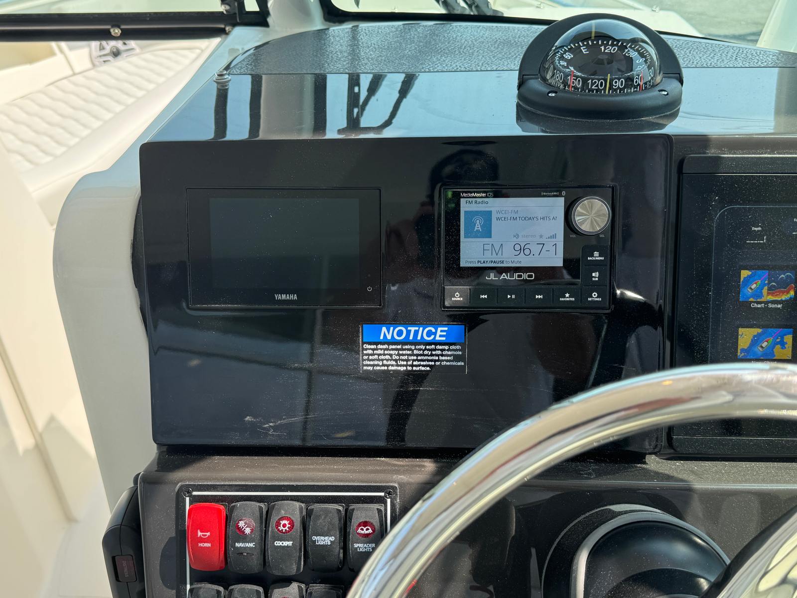 - Garmin Electronics Package (GPSMAP 8612XSV, B75M 0-7 Degree 600 watt CHIRP Transducer, NMEA 2000 Starter kit, Pursuit Custom Dash Panel, VHF Radio) (requires stereo option)