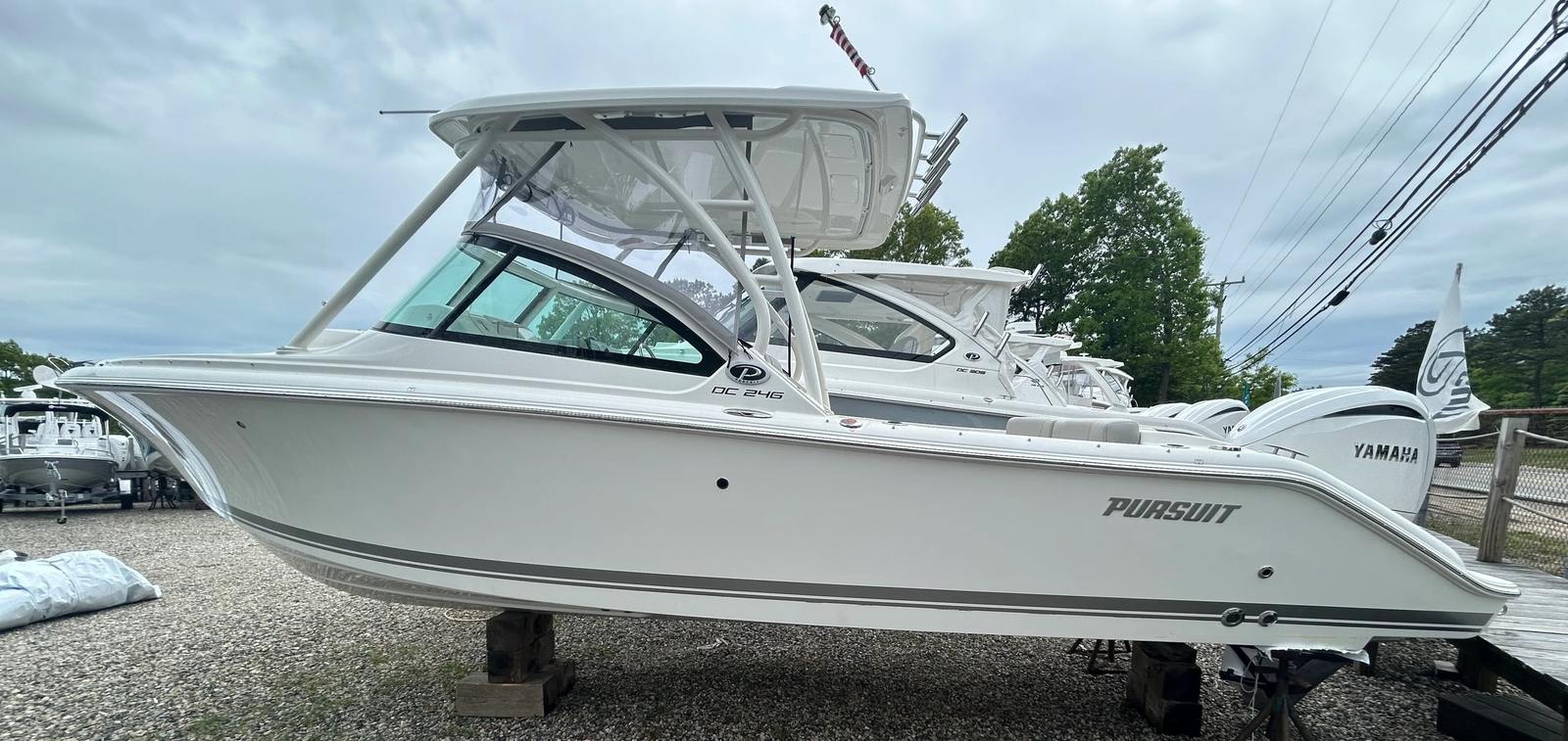 In summary, the 2025 Pursuit DC 246 is a standout Dual Console boat for sale that combines performance, versatility, and luxury in one exceptional package. With its powerful 300-horsepower engine, premium JL Audio System, removable ski tow, hardtop-mounted rod holders, ambient blue LED lighting, protective curtains, and stunning underwater lights, this Pursuit boat for sale is ready to deliver endless fun and adventure on the water. Whether you are a family looking for a safe and comfortable vessel, an angler seeking a capable fishing platform, or a boating enthusiast who values style and performance, the Pursuit DC 246 is designed to meet your needs and exceed your expectations. Don’t miss the opportunity to make this incredible Dual Console boat your own—contact the dealer today to learn more and start your next adventure on the water.
