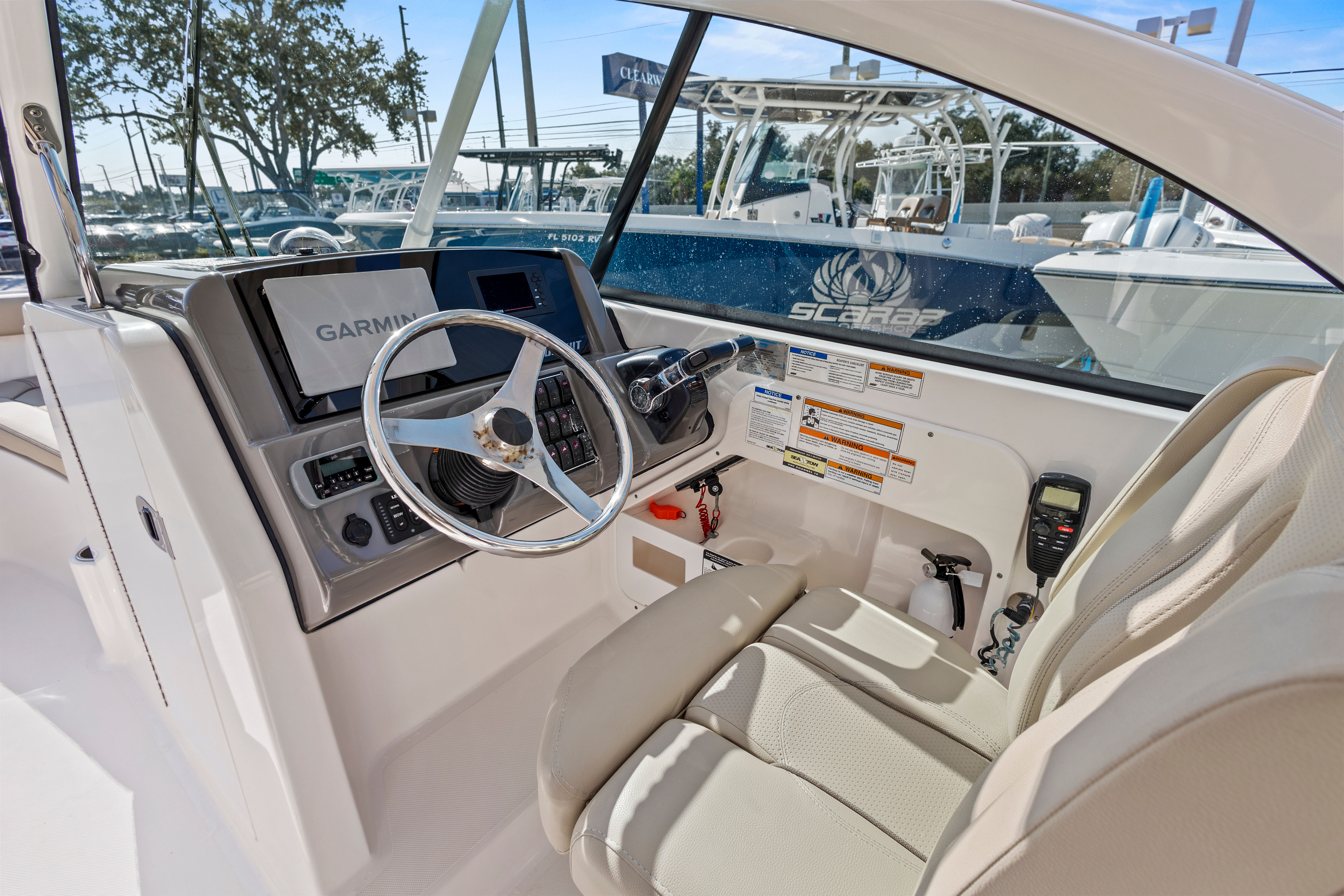 One of the defining features of the 265 DC is its well-appointed cabin and enclosed head. On the port side, you’ll find a spacious head compartment with a marine toilet, sink, and vanity—ventilated, easy to access, and a huge plus on long days aboard. Opposite, there’s a portside console cabin/storage space that can be used for gear, dry storage, or even a quick escape from the sun. Combined, these dual consoles provide ample storage and the kind of convenience rarely found in boats of this size.