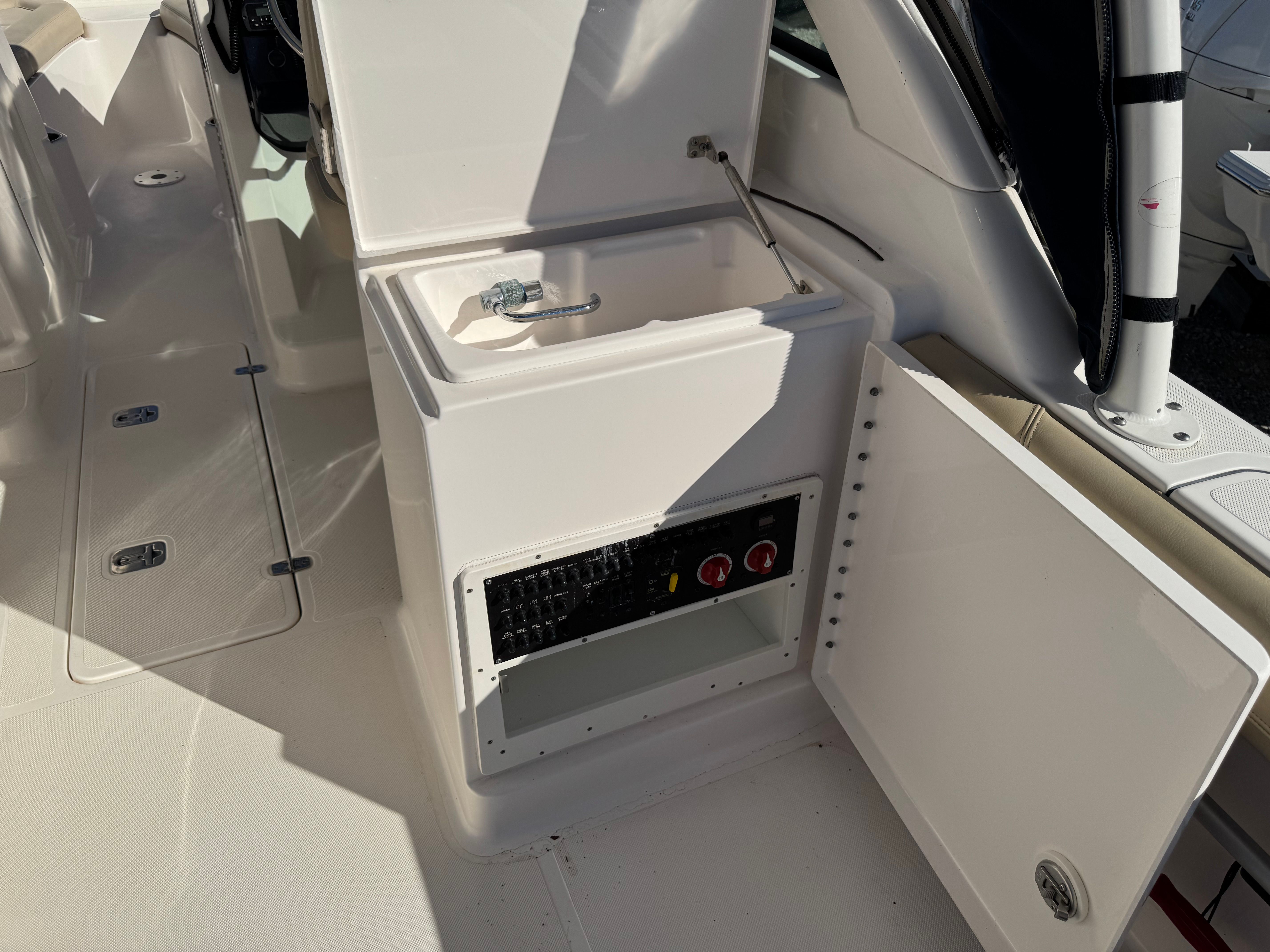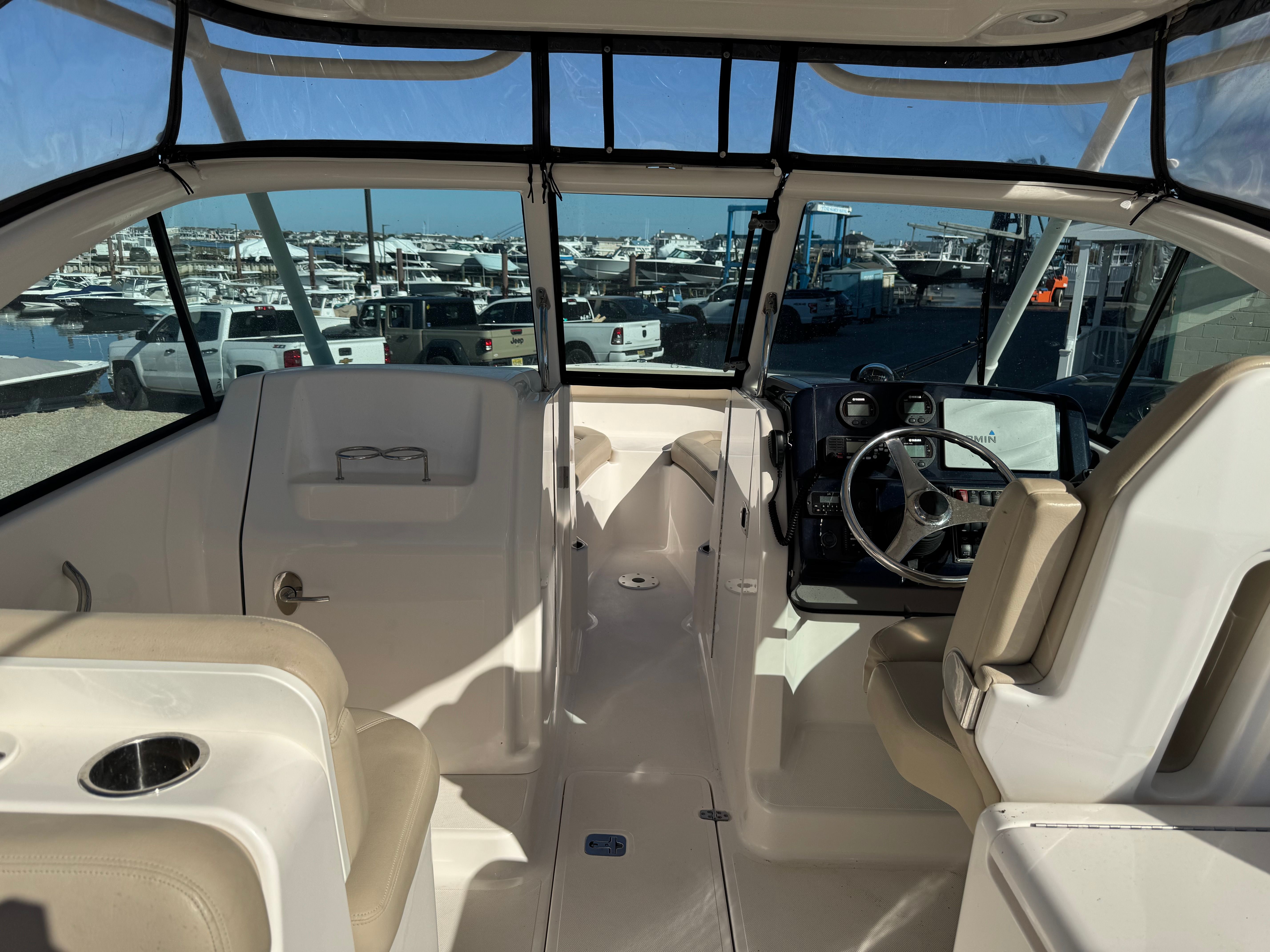The Pursuit DC 265 is packed with features that enhance both functionality and enjoyment. Its dual console layout offers flexibility for a range of activities, from fishing to entertaining guests. The spacious cockpit and bow seating areas provide comfortable spaces for relaxation and socializing, while the ergonomic helm ensures easy control and visibility. Storage compartments are thoughtfully integrated throughout the boat, allowing you to stow gear, supplies, and personal items securely and conveniently. The high-quality materials and finishes reflect Pursuit’s dedication to durability and style, ensuring that this boat remains a standout on the water for years to come.
