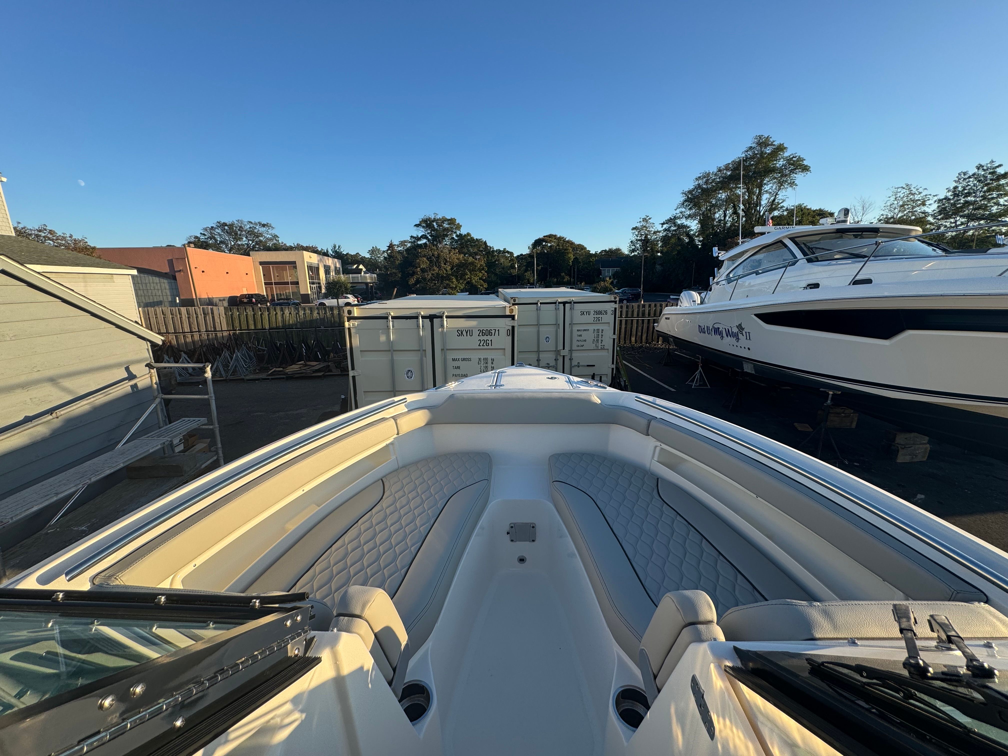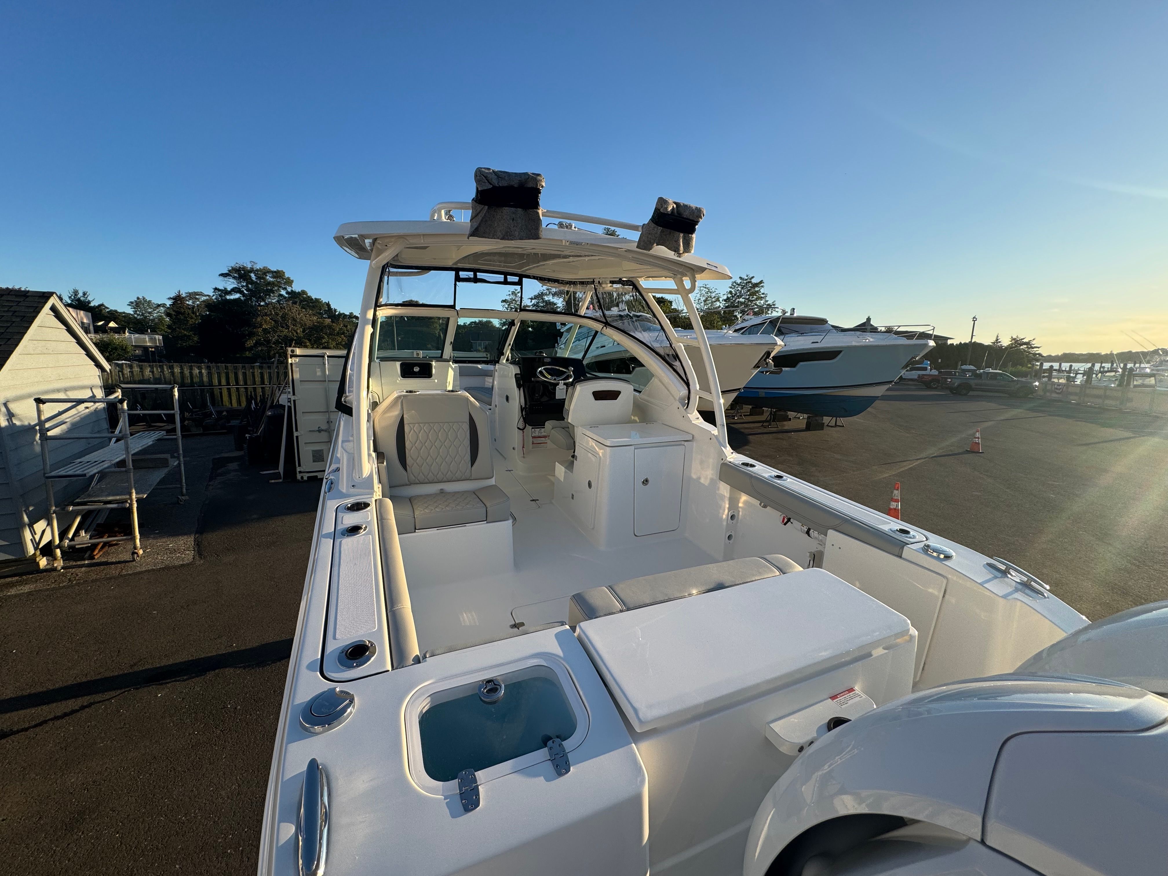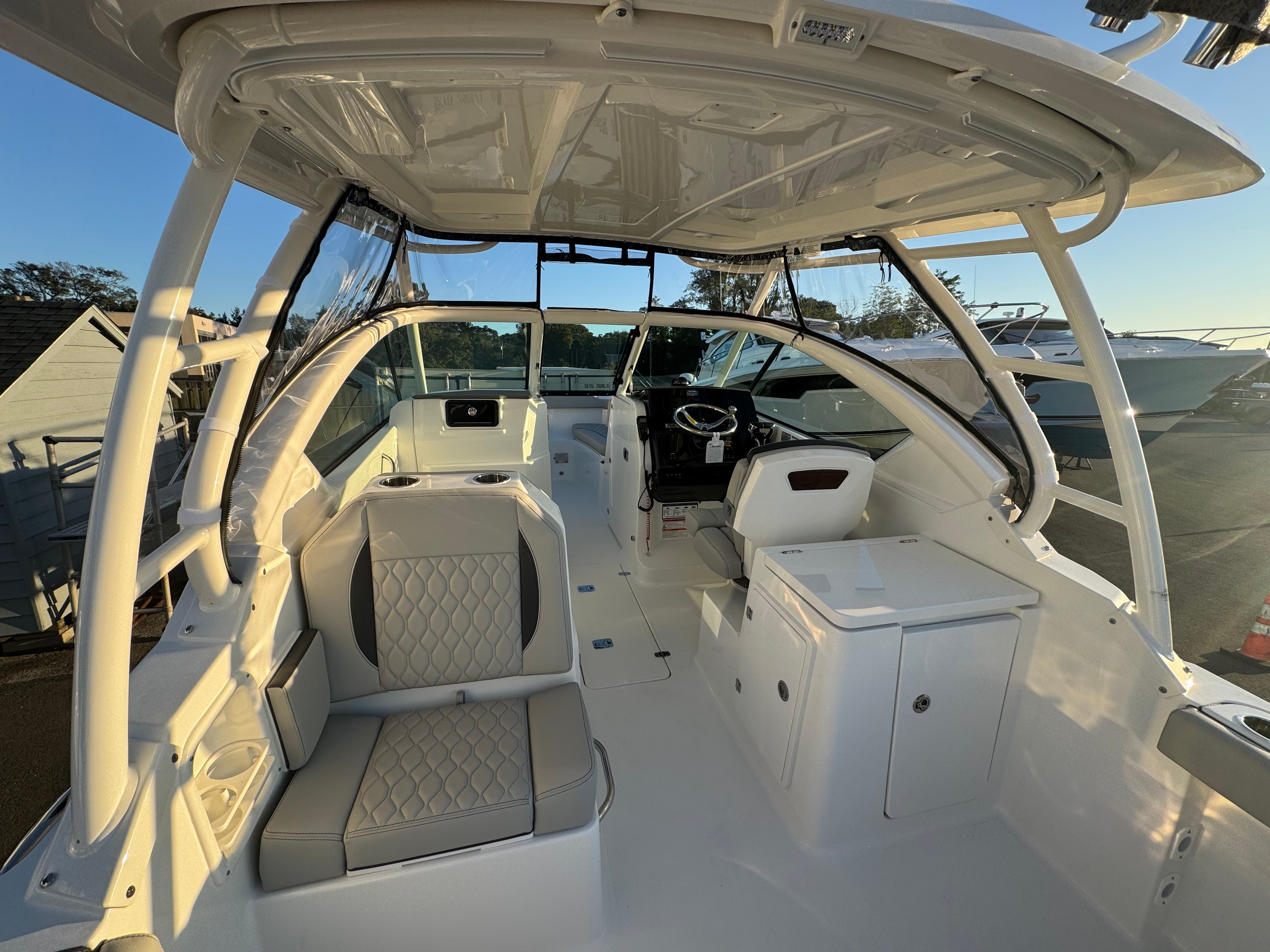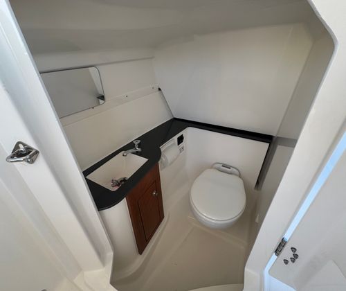 The Pursuit DC 266 is packed with special features that elevate your boating experience. The anchor windlass system with remote provides effortless anchoring, while the bow sunpad filler with cushion transforms the bow area into a luxurious lounging space. Entertain guests with the fiberglass bow table, which can be mounted in both the bow and cockpit for flexible dining and socializing options. For water sports enthusiasts, the removable transom mount ski tow adds versatility, making it easy to switch between cruising and action-packed activities.Navigation and safety are enhanced by the Garmin electronics package, featuring the GPSMAP 8612XSV, B75M 20 Degree 600 Watt CHIRP transducer, NMEA 2000 starter kit, Pursuit custom dash panel, and VHF radio. These advanced electronics provide precise navigation, fish-finding capabilities, and seamless communication, ensuring you’re always in control. Anglers will appreciate the hardtop-mounted rod holders (four in total), offering convenient storage and easy access to fishing gear. When it’s time to relax, the aft cockpit Mediterranean-style sunshade can be stowed away or deployed to provide cool, comfortable shade.