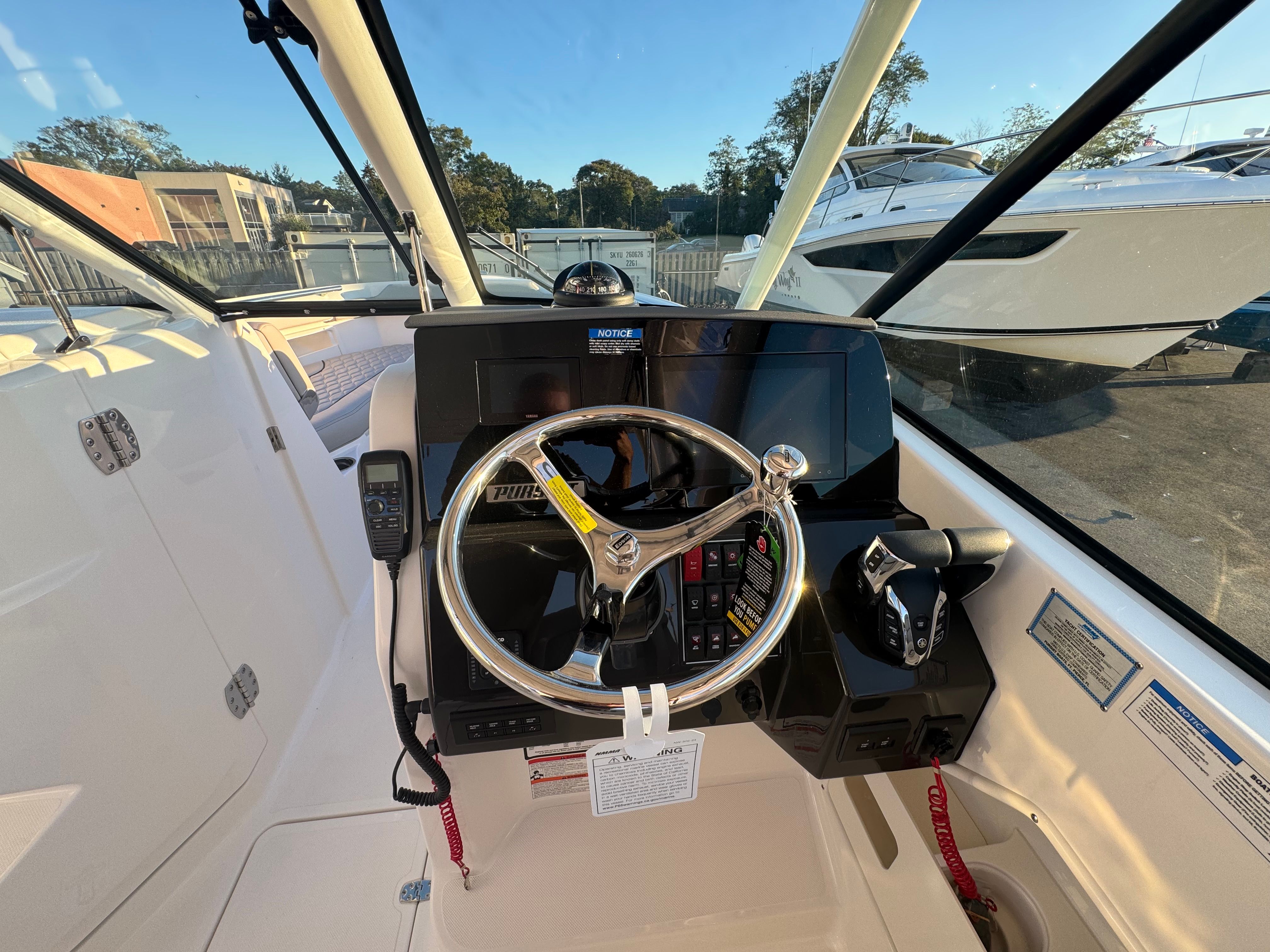 - Garmin Electronics Package (GPSMAP 8612XSV, B75M 20 Degree 600 Watt CHIRP Transducer, NMEA 2000 Starter kit, Pursuit Custom Dash Panel, VHF Radio)