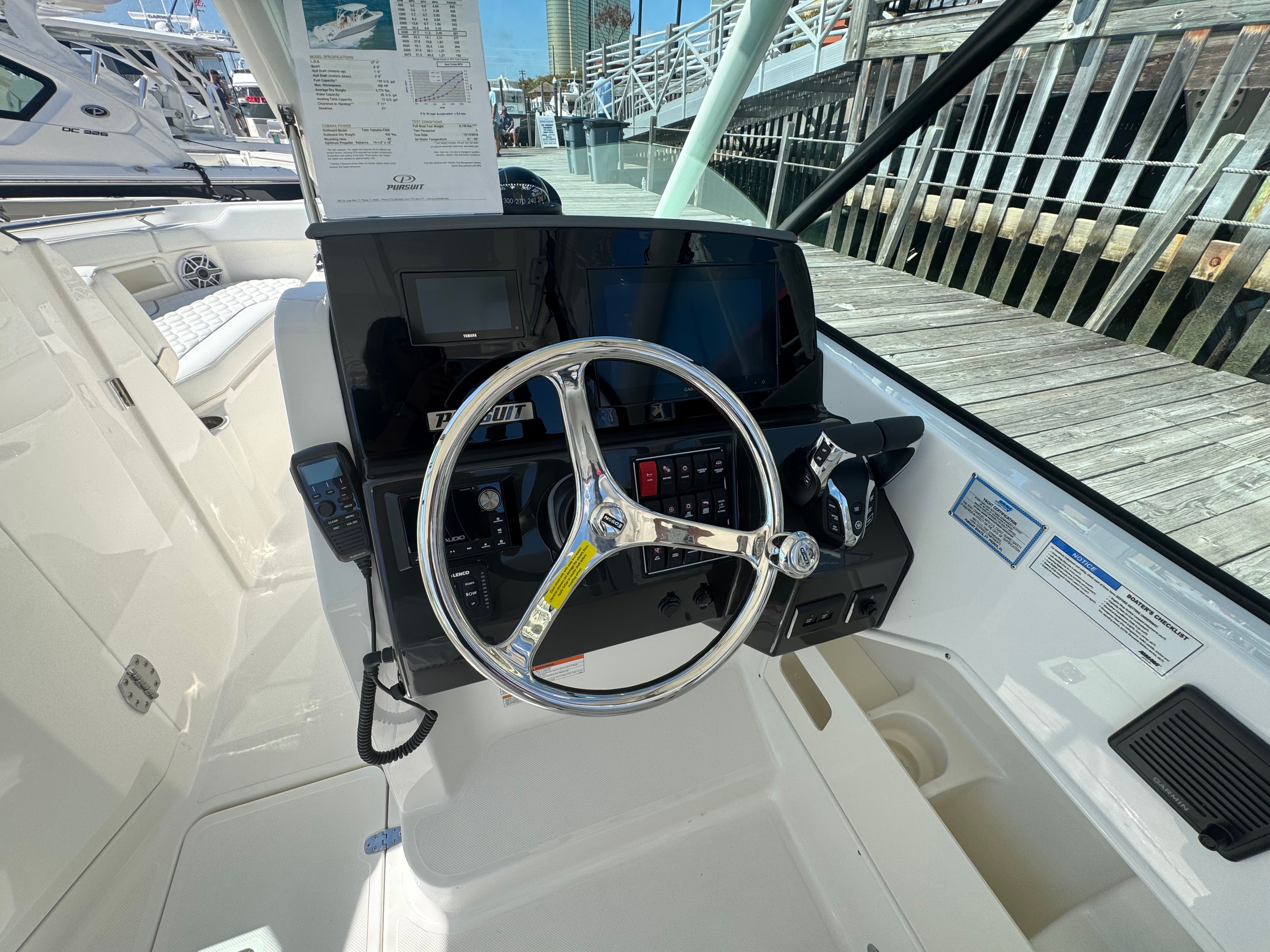 The 2026 Pursuit DC 266 measures an impressive 27.33 feet in length, offering ample space for family, friends, and gear. Its sleek Arctic Blue hull, accented by an Arctic White bootstripe and Quartz Gray details, ensures that this boat turns heads wherever it goes. The helm features a sophisticated Carbon finish, adding a touch of modern elegance to the captain’s domain. As a new model, the DC 266 promises the latest advancements in design and technology, making it a standout option for anyone searching for a Pursuit boat for sale.