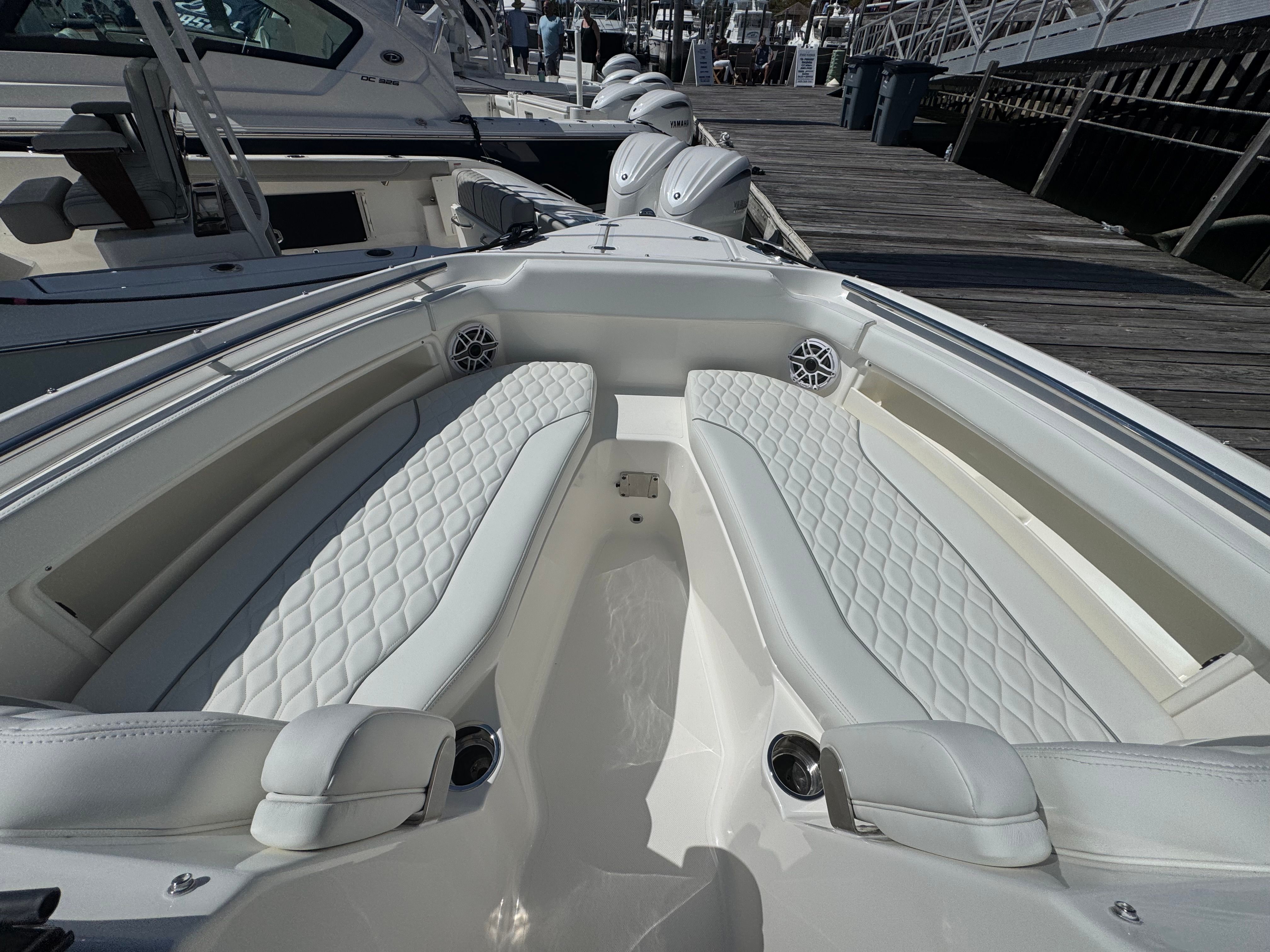 The Pursuit DC 266 is designed with practicality in mind, making ownership as enjoyable as the time spent on the water. The anchor windlass system with remote simplifies the anchoring process, saving time and effort. The removable ski tow and hardtop-mounted rod holders offer flexible options for water sports and fishing, while the multifunction display interface keeps navigation and system monitoring straightforward.The dual console configuration provides plenty of storage for gear, safety equipment, and personal items, helping keep the deck organized and clutter-free. The advanced steering and control systems make docking and maneuvering stress-free, even for less experienced captains. Fuel efficiency is enhanced by the twin Yamaha® engines, allowing for longer trips and more time enjoying the water.