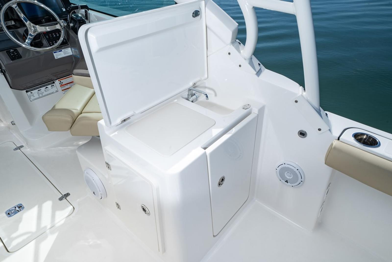 The Pursuit DC 266 truly shines in a variety of scenarios. It’s the perfect platform for family outings, offering plenty of space for kids to play, adults to relax, and everyone to enjoy the water together. Fishing trips are elevated by the dedicated rod holders and spacious cockpit, while the comfortable seating and sunpads make it easy to unwind after a day of casting lines. For those seeking a touch of luxury, the Mediterranean-style sunshades, premium audio system, and elegant table settings create a resort-like atmosphere on the water, ideal for romantic getaways or entertaining friends.Whether you’re exploring hidden coves, hosting sunset cruises, or embarking on weekend adventures, the DC 266 adapts to your every need, making it a versatile and rewarding choice for any boating enthusiast.