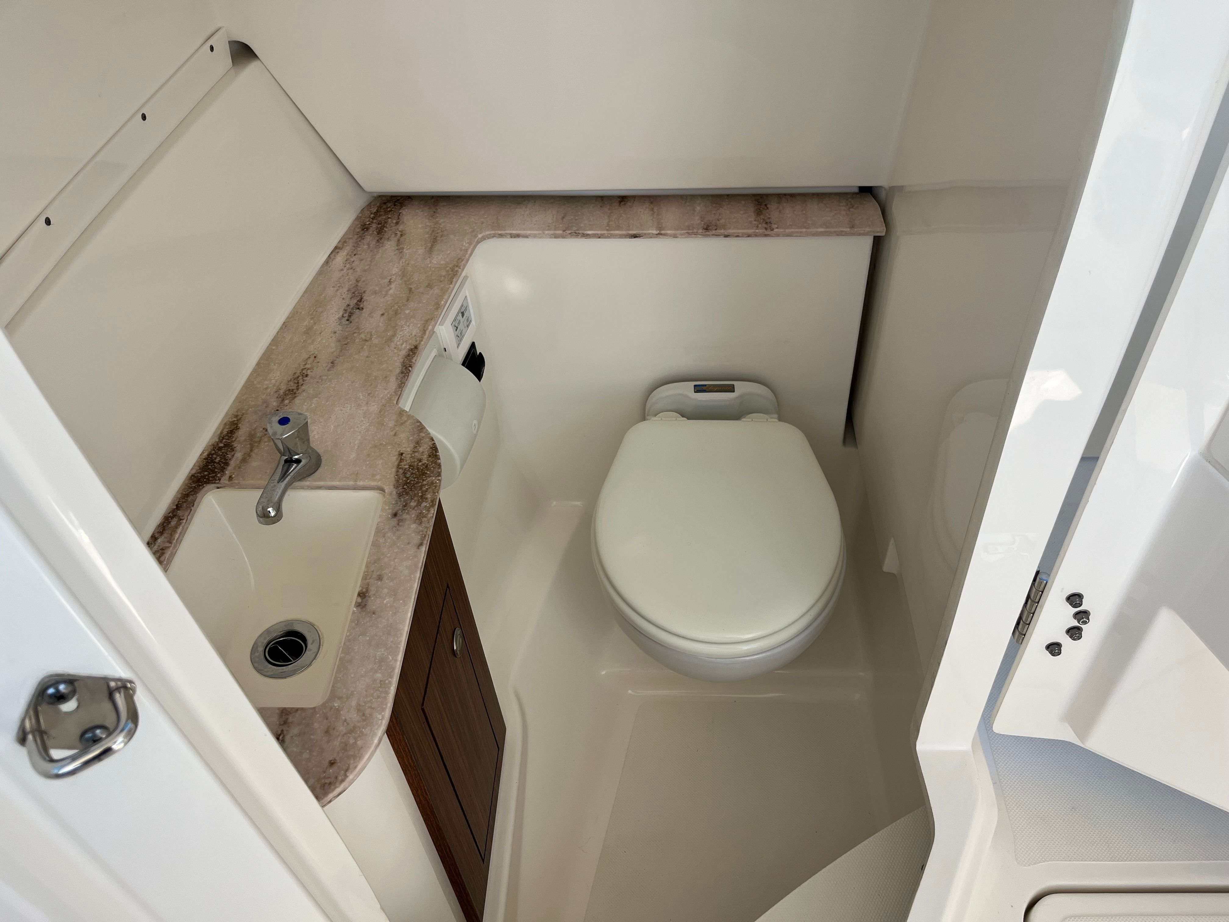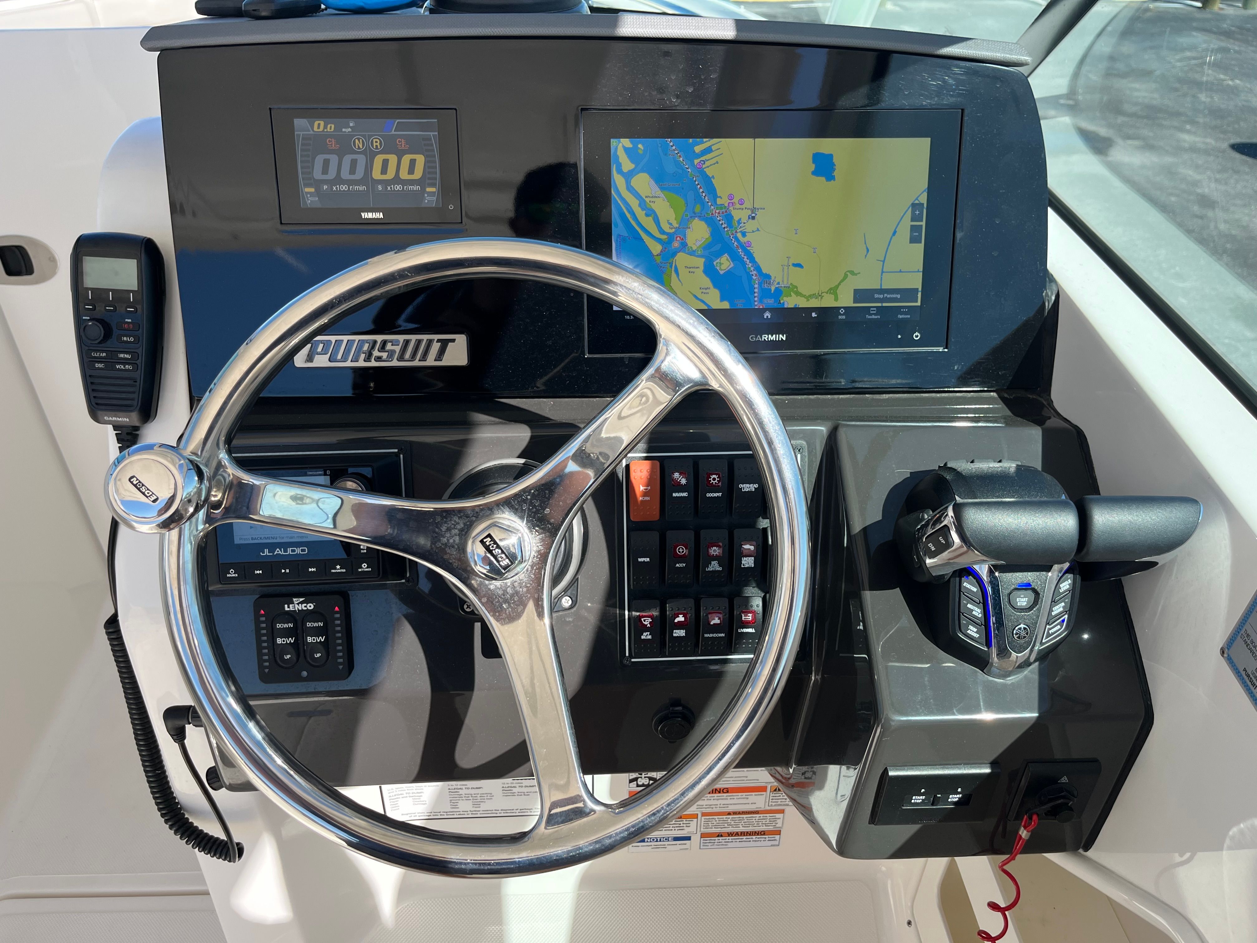 From the stainless hardware to the plush upholstery and premium electronics, every inch reflects Pursuit’s commitment to quality. Storage is abundant and intelligently placed, making day trips or long weekends easy and organized.