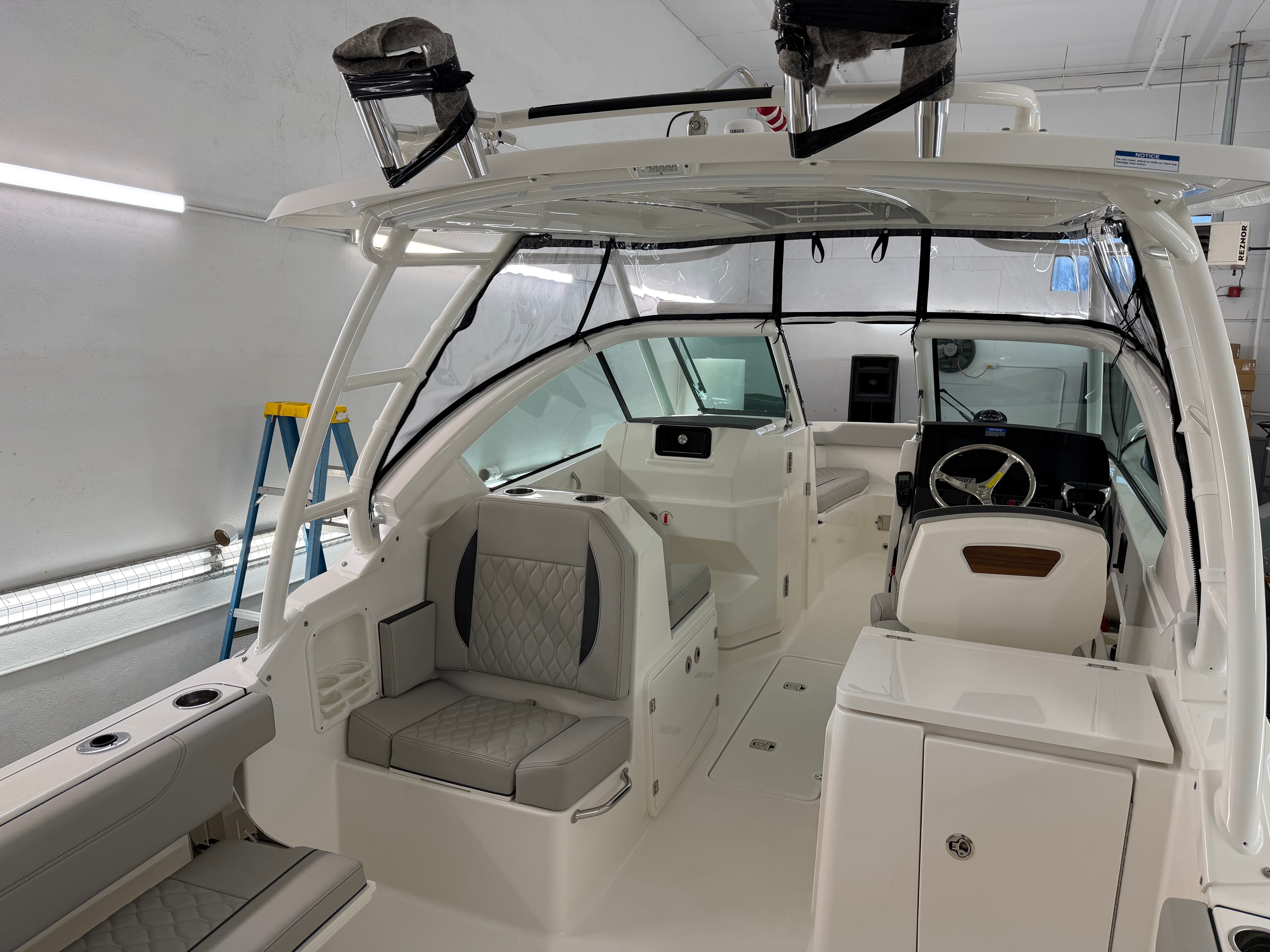 - Twin Yamaha® Digital F200 (Pearlescent White) with Digital Electronic Steering (DES)) and Helm Master® EX Digital Electronic Control (DEC) (does not include joystick control), Multifunction Display Interface