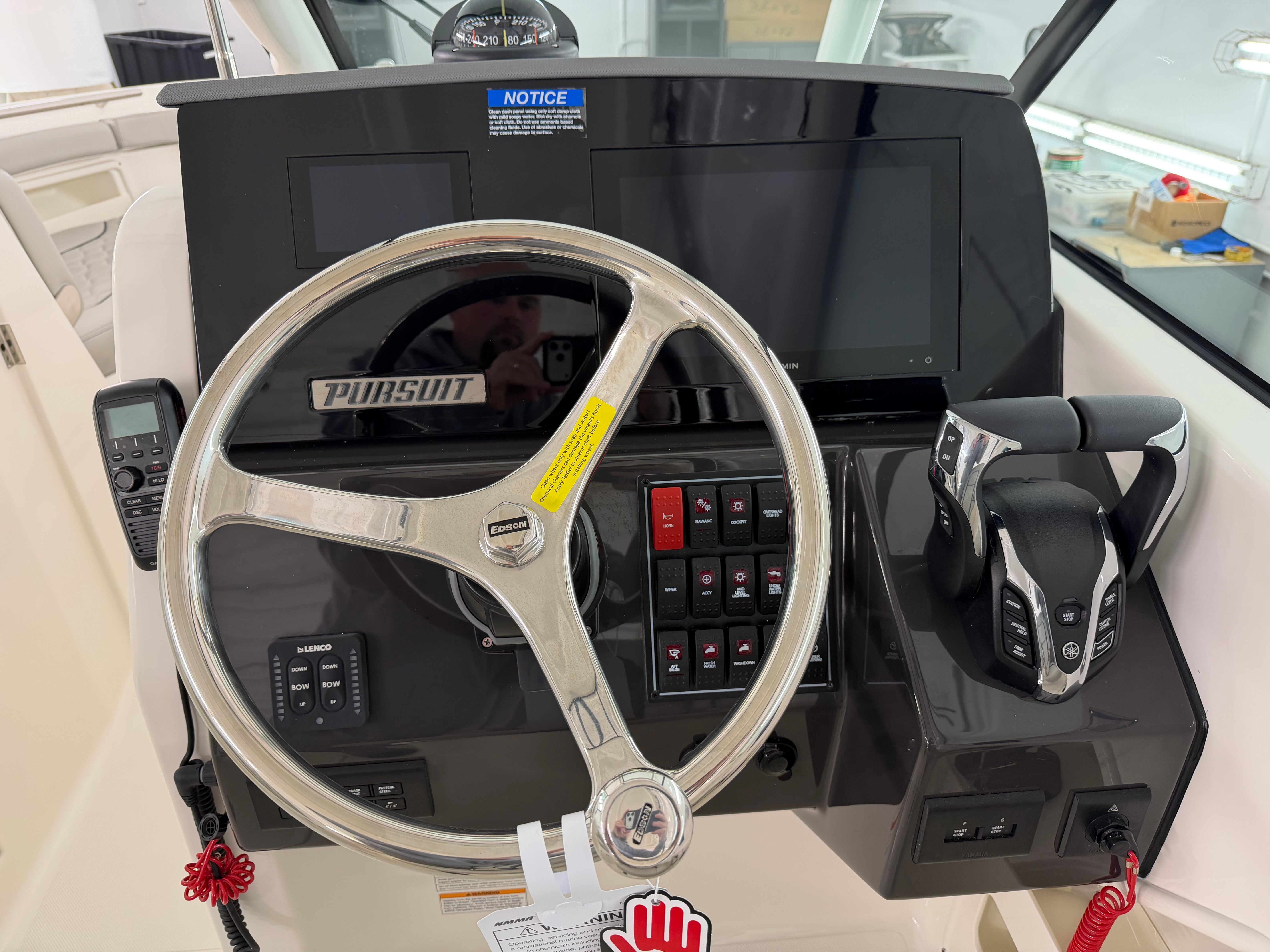 - Garmin Electronics Package (GPSMAP 8612XSV, B75M 20 Degree 600 Watt CHIRP Transducer, NMEA 2000 Starter kit, Pursuit Custom Dash Panel, VHF Radio)