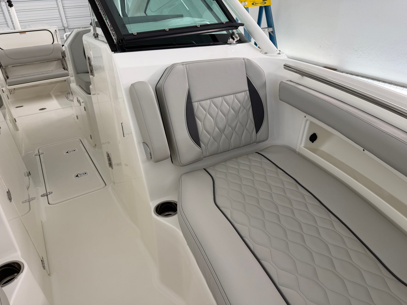 At the heart of the Pursuit DC 266 is a powerful twin Yamaha® Digital F200 engine setup, finished in pearlescent white for a striking visual impact. With a combined 400 horsepower, this dual console boat delivers exhilarating speed, smooth acceleration, and reliable power for a variety of activities. The advanced Digital Electronic Steering (DES) ensures precise handling and effortless maneuverability, while the Helm Master® EX Digital Electronic Control (DEC) system provides intuitive control over every aspect of your boating experience. The inclusion of Yamaha Joystick Control with full maneuverability, featuring Set Point and Autopilot functions, allows for easy docking, tight turns, and stress-free navigation, making this Pursuit boat for sale a dream to operate for both seasoned captains and newcomers alike.