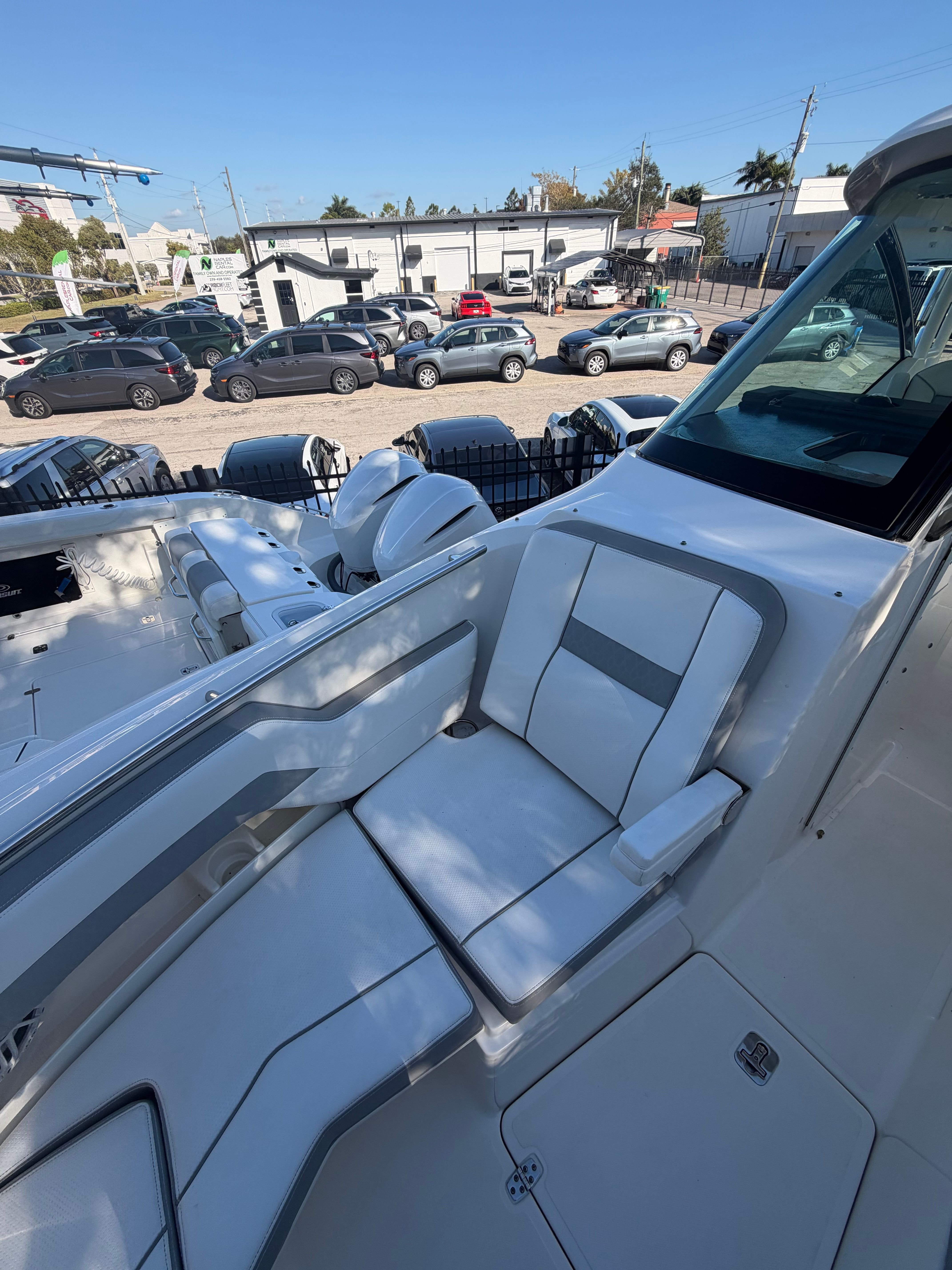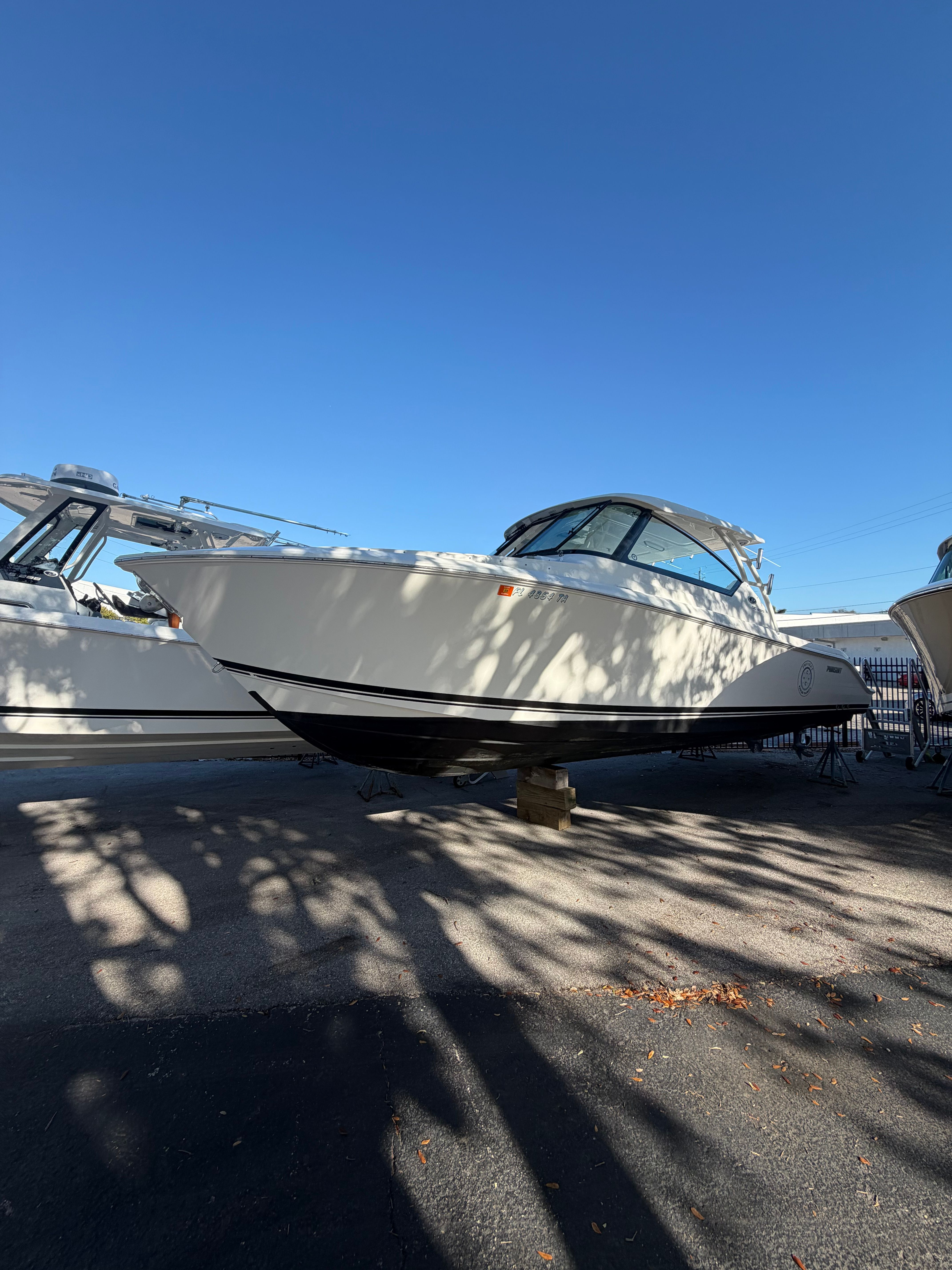 The Pursuit DC 295 is designed with both comfort and convenience in mind. Its spacious dual console layout offers plenty of seating and storage, making it ideal for entertaining or relaxing on the water. The ergonomic helm provides excellent visibility and easy access to controls, ensuring a stress-free boating experience. With its generous length of 31.75 feet, this boat offers a stable ride and plenty of room for passengers to move about comfortably.Special features of the DC 295 enhance its appeal, from its versatile seating arrangements to its well-appointed cockpit. The dual console design allows for easy movement between the bow and stern, while the ample deck space is perfect for sunbathing, socializing, or setting up fishing gear. The high-quality construction and attention to detail are evident throughout, reflecting Pursuit’s reputation for building premium boats.