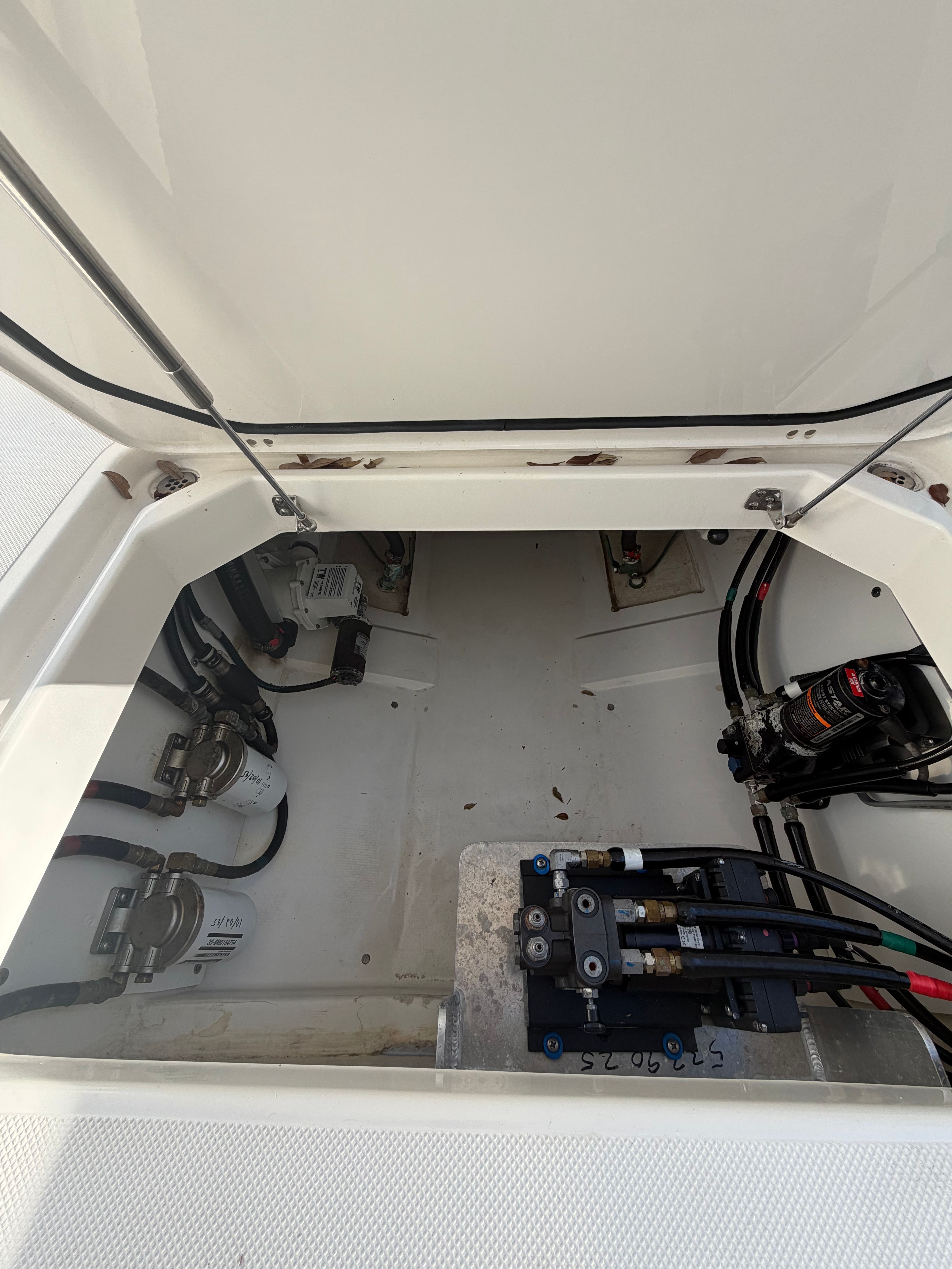 Powering the Pursuit DC 295 are two robust engines, delivering a combined 600 horsepower. This dual-engine setup ensures smooth acceleration, reliable cruising, and the ability to handle a variety of water conditions with confidence. With 296 engine hours, these motors have been well maintained and are ready to provide many more seasons of dependable performance. Whether you are cruising along the coastline, heading out for a day of fishing, or enjoying water sports, the DC 295’s power and agility make every outing exhilarating.
