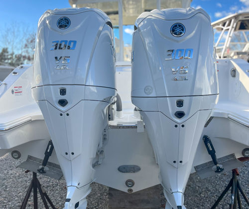 - Twin Yamaha® Digital F300 V6 Offshore (Pearlescent White) w/Integrated Digital Electric Steering (DES) and Helm Master® EX Digital Electronic Control (DEC) (does not include joystick control), Multifunction Display Interface and Manual Engine Flushing System