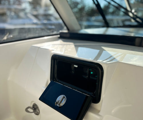 The Pursuit DC 306 is designed with practicality in mind, making ownership as enjoyable as your time on the water. The manual engine flushing system simplifies maintenance, helping you protect your investment and keep your engines running smoothly. The dockside power connection ensures that your onboard systems are always ready to go, whether you are preparing for a day trip or an overnight adventure.Storage solutions are thoughtfully integrated throughout the boat, including dedicated space for the cockpit table and ample room for gear, water toys, and personal items. The dual console design makes docking and boarding easy from either side, while the advanced Yamaha steering and joystick control provide confidence in tight spaces and busy marinas. Fuel efficiency is enhanced by the modern V6 engines, allowing you to spend more time enjoying the water and less time at the fuel dock.