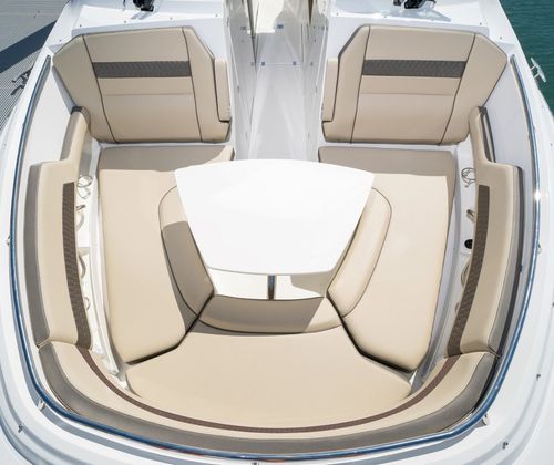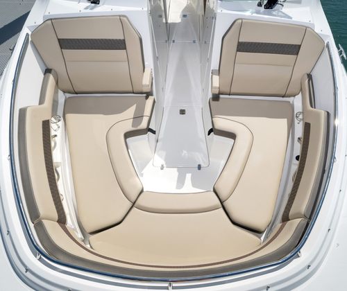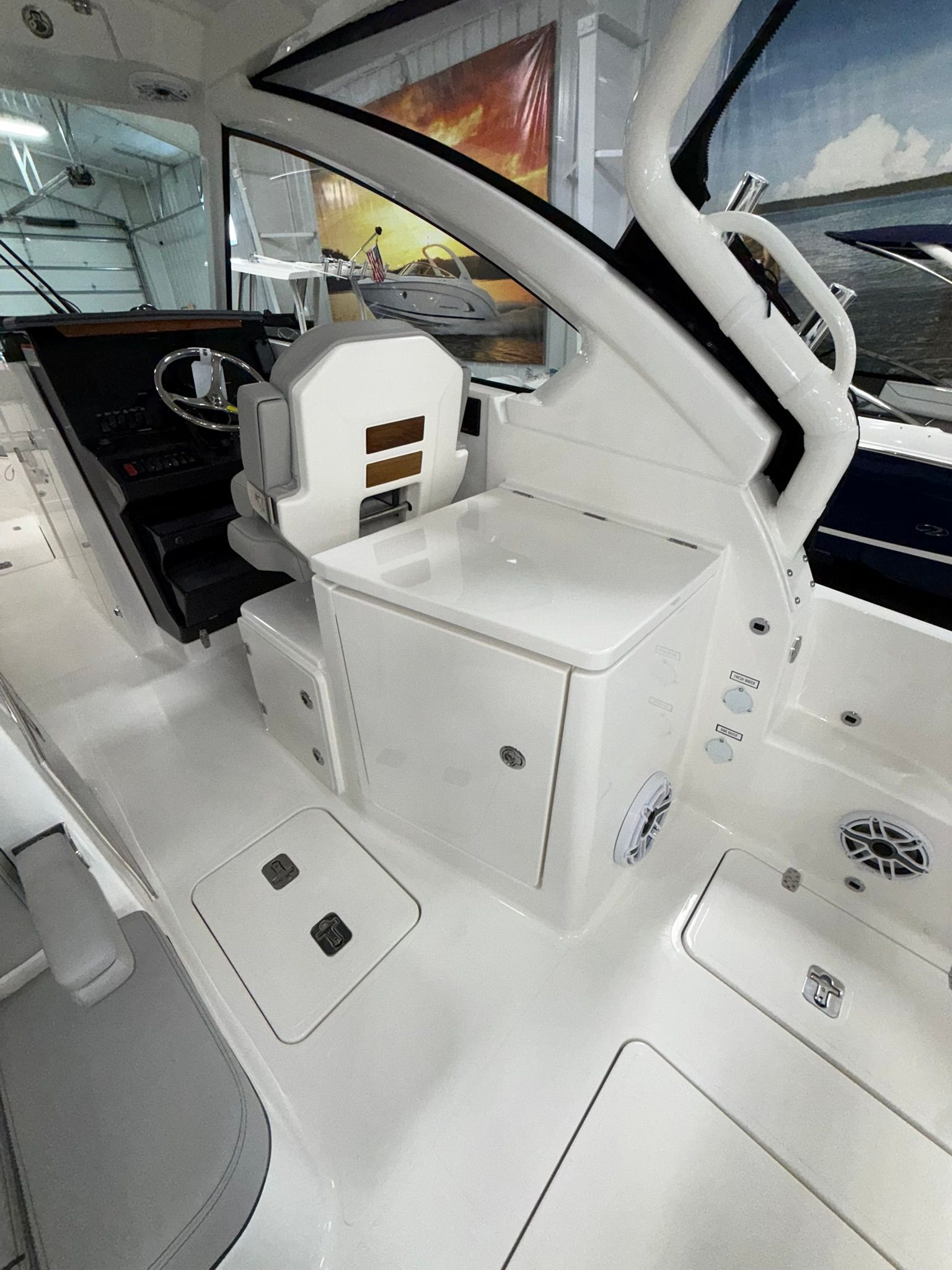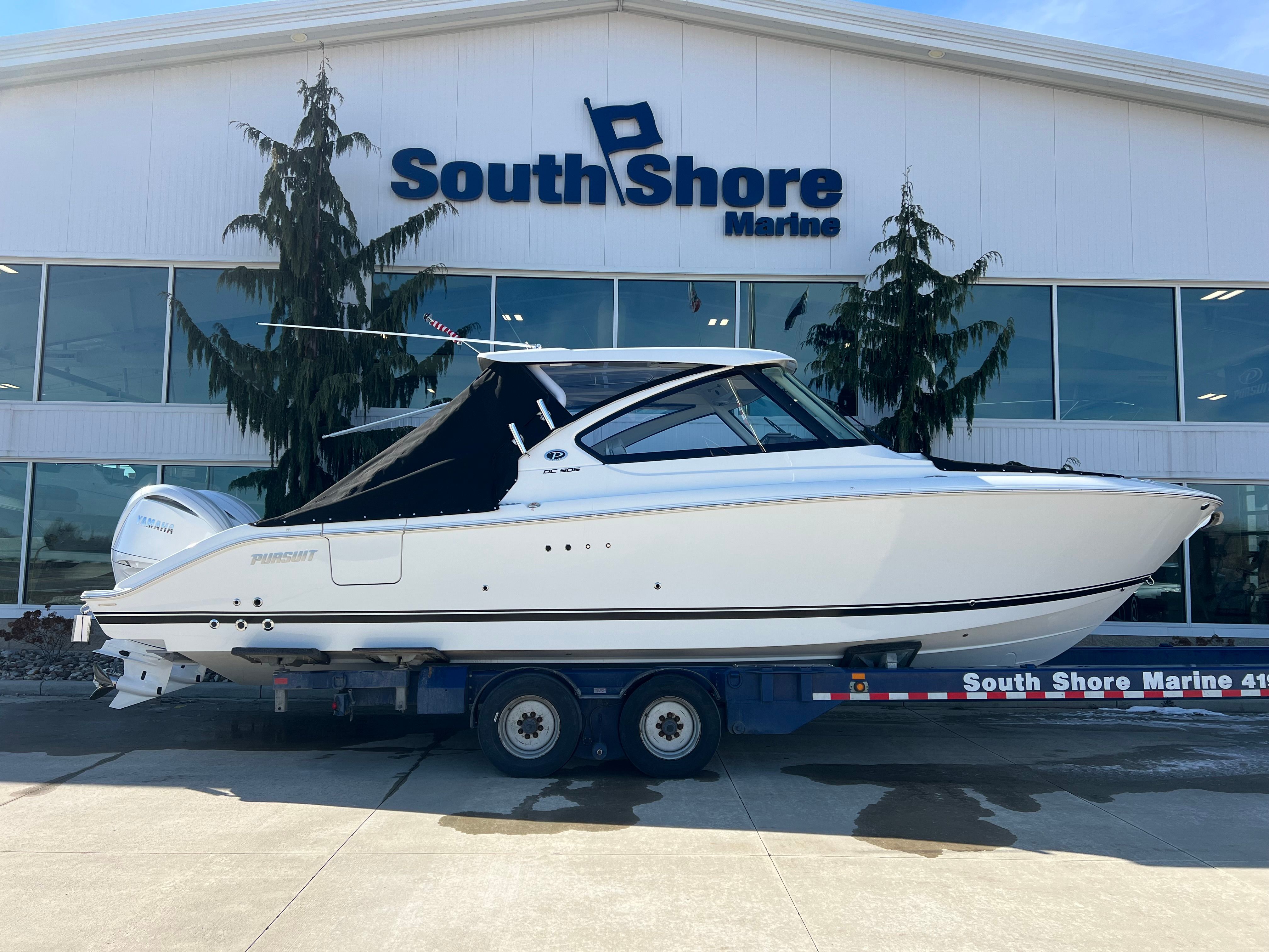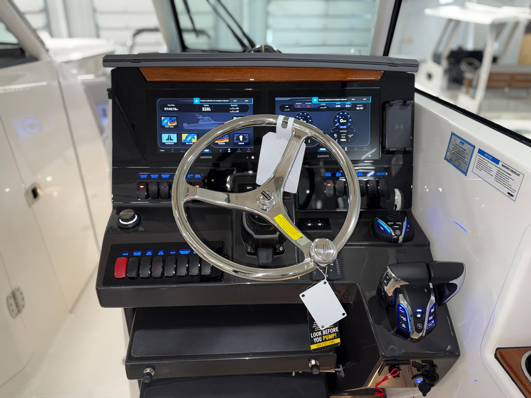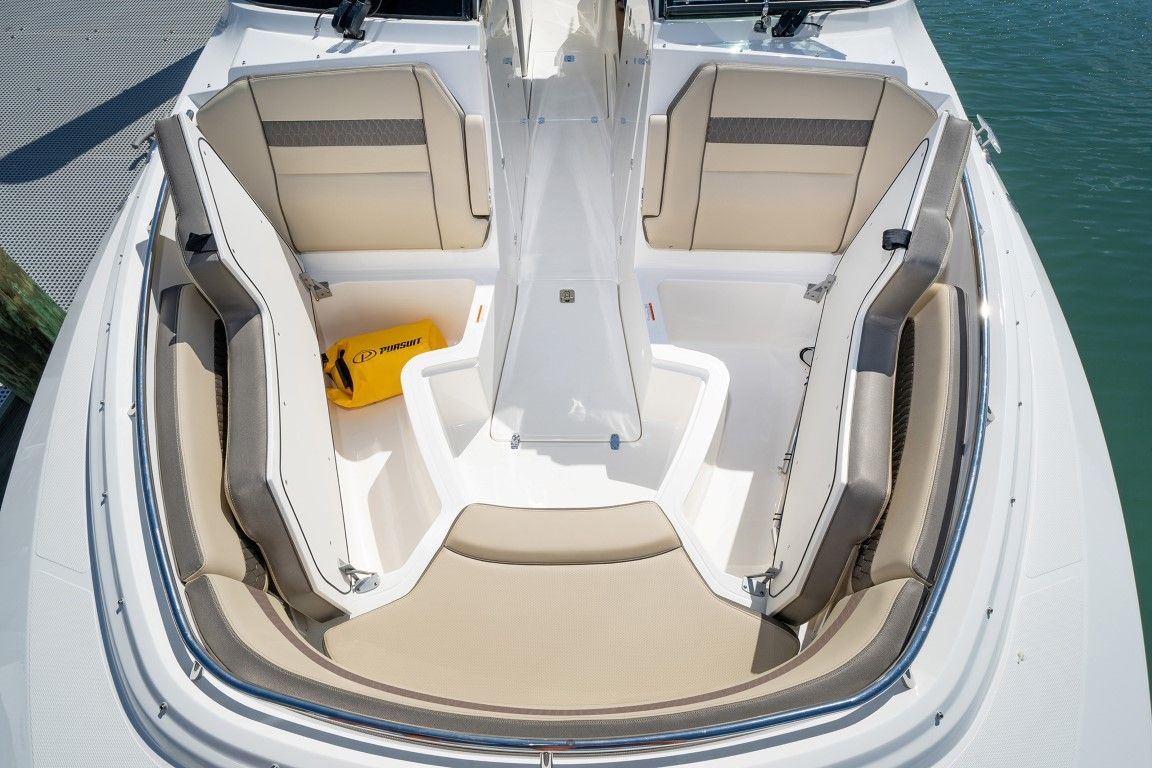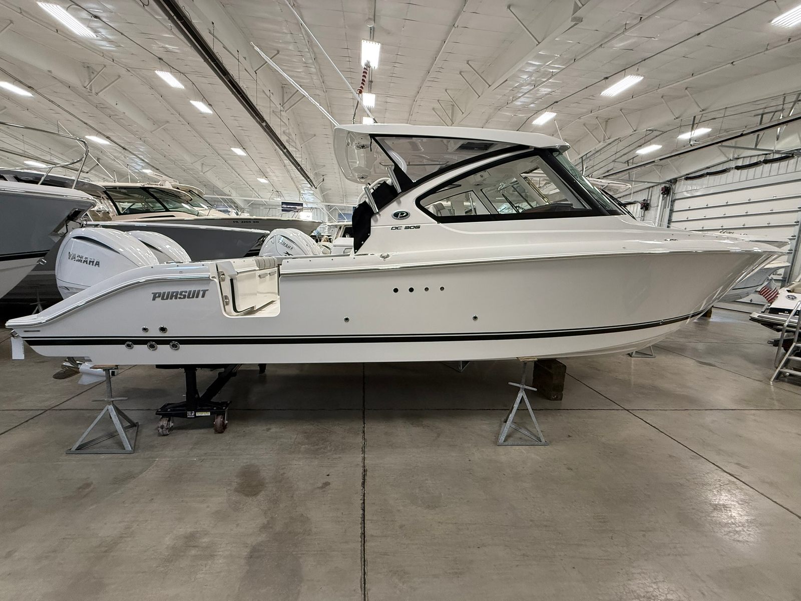 he Pursuit 326 DC is loaded with features that cater to both leisure and adventure. The spacious dual console layout provides separate helm and passenger areas, offering flexibility for different activities. The ergonomically designed helm station ensures easy access to controls and navigation equipment, enhancing the captain’s experience. Plush seating throughout the boat invites relaxation, while the expansive bow and cockpit areas are perfect for sunbathing, dining, or socializing. Storage solutions are thoughtfully integrated, allowing you to stow gear, water toys, and personal items securely. The Pursuit 326 DC also boasts advanced safety features, ensuring peace of mind for you and your guests during every voyage.