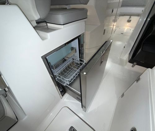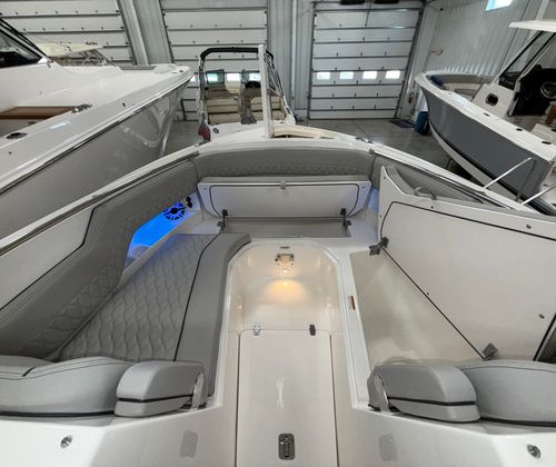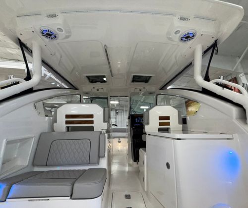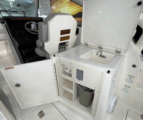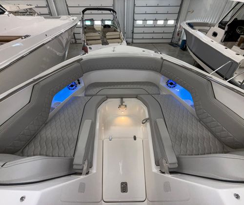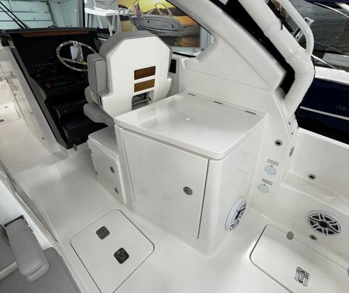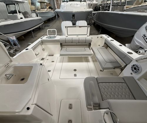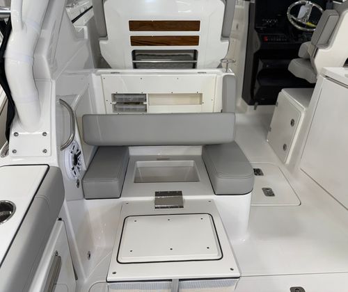 The Pursuit 326 DC is as practical as it is stylish. Thoughtful storage compartments make it easy to keep the deck clutter-free, while the intuitive layout simplifies movement around the boat. Docking is a breeze thanks to the responsive handling and well-placed cleats, making it easy to tie up at your favorite marina or waterfront restaurant. The efficient hull design contributes to fuel savings, allowing you to spend more time on the water and less time refueling. Whether you are planning a quick day trip or an extended adventure, this dual console boat for sale is equipped to meet your needs with ease and convenience.